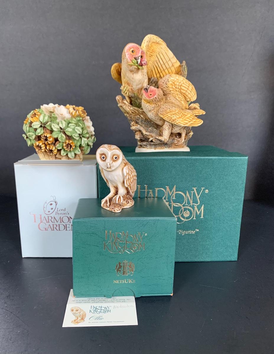 Lot 79: Harmony Kingdom Collectibles / Owls & Flowers