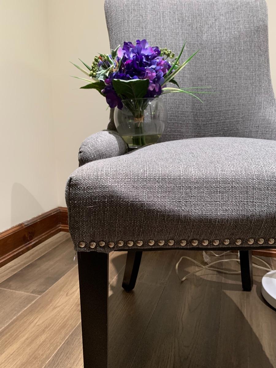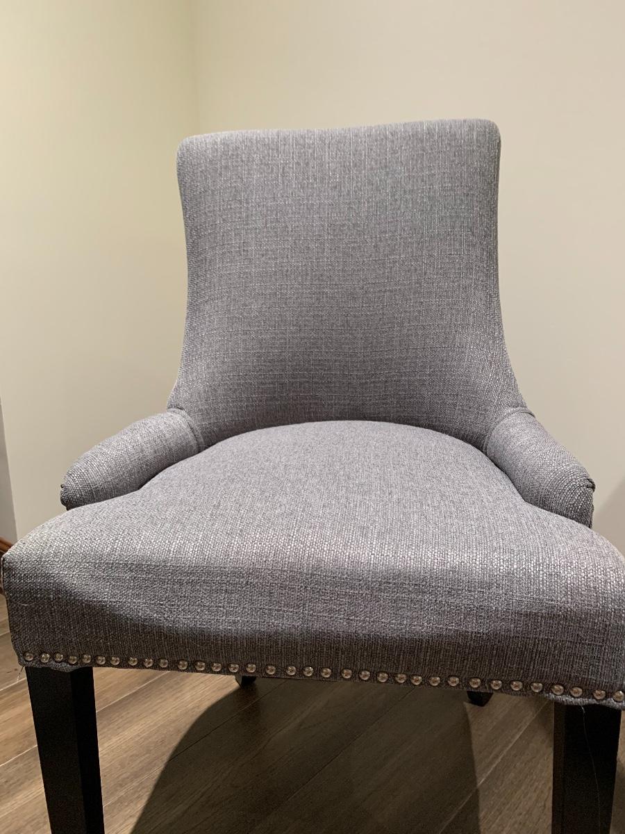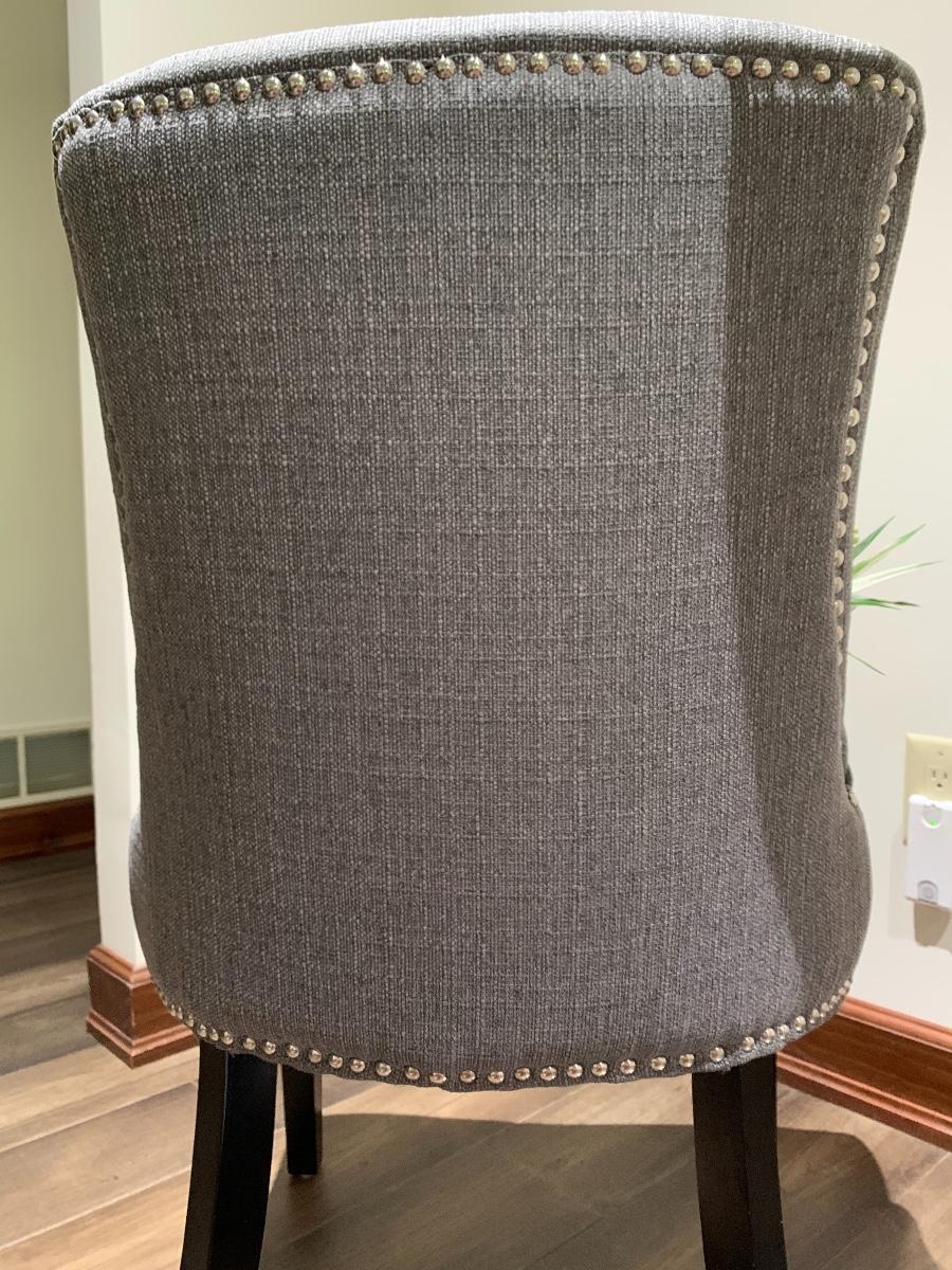 Lot 283:  Gray Studded Upholster Accent Chair with White Floor Lamp