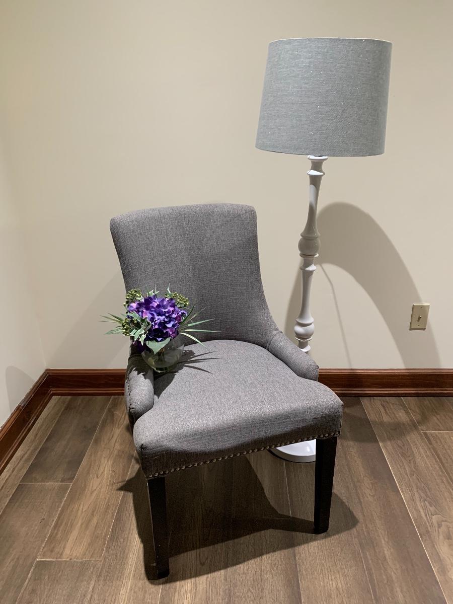 Perfect accents anywhere in the home, Lamp - 55" in height with shade, Chair - 36" back of chair.