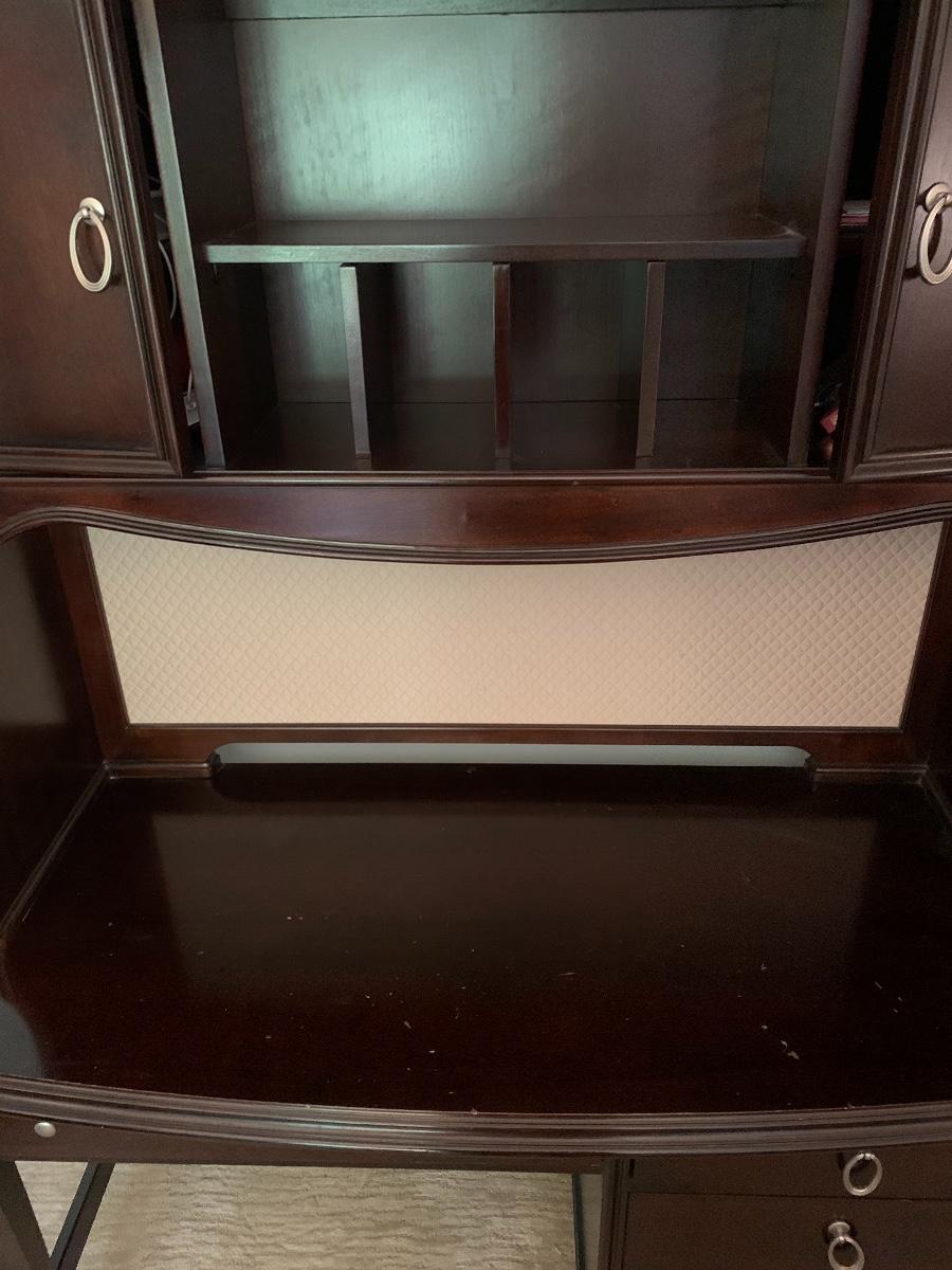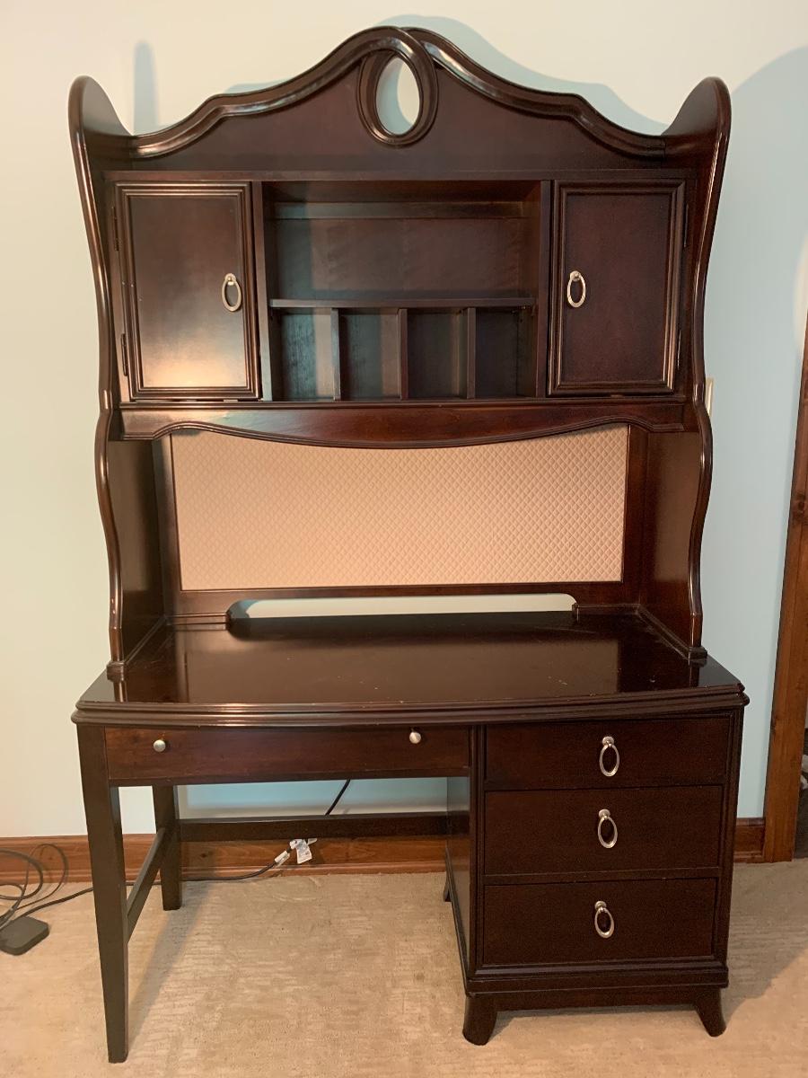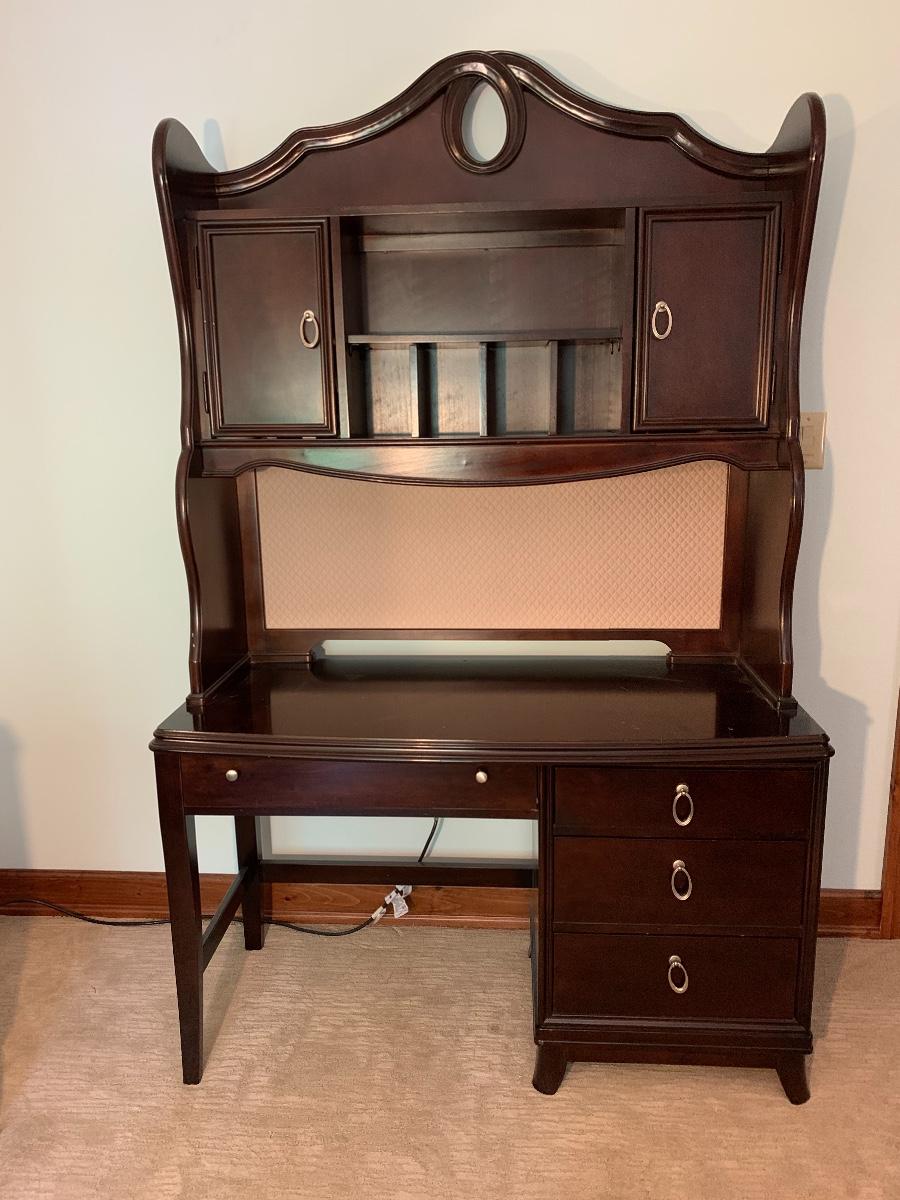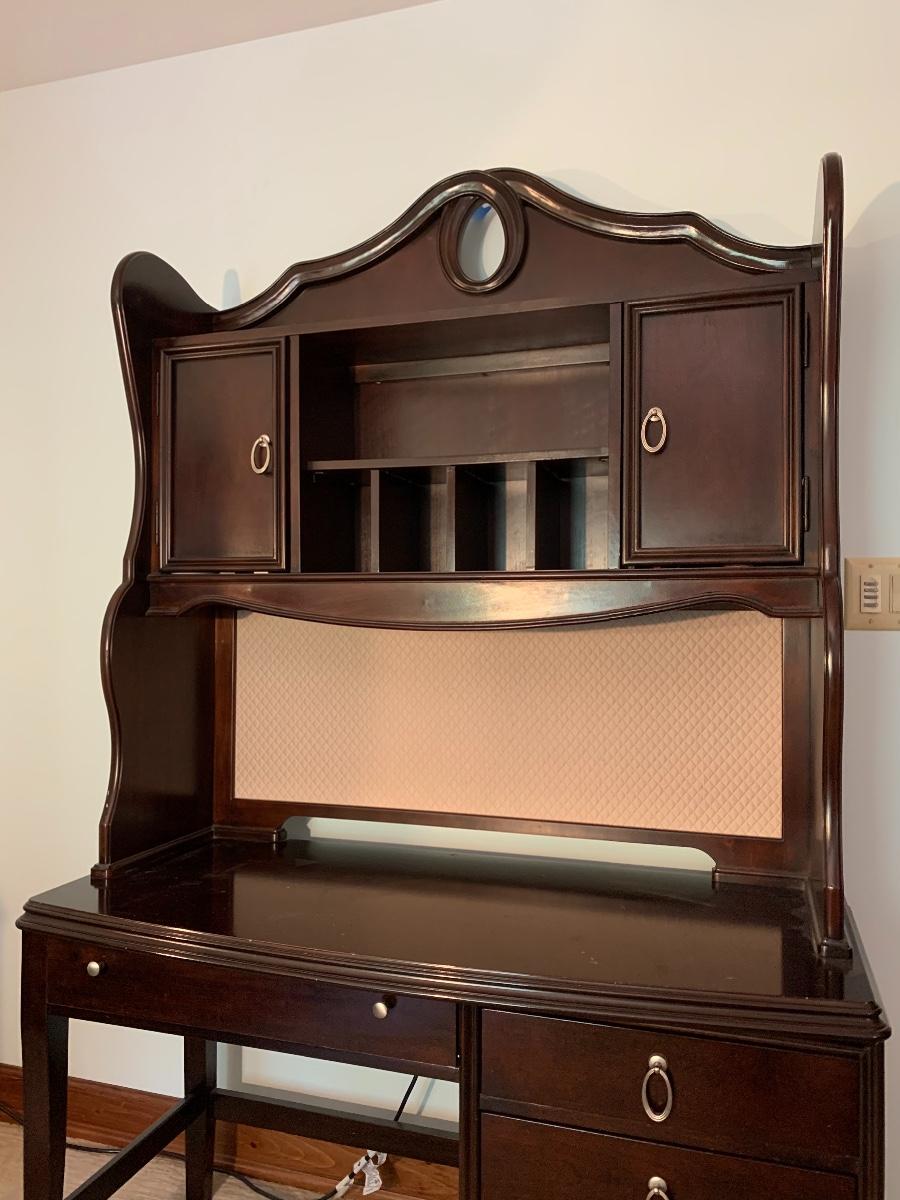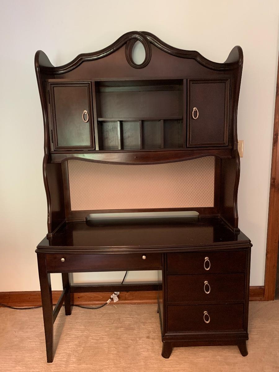 Lot 78: Curved Line Desk with Matching Hutch & Silver Hardware