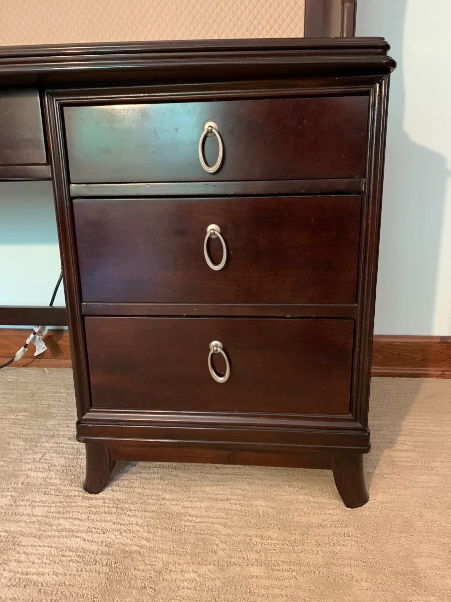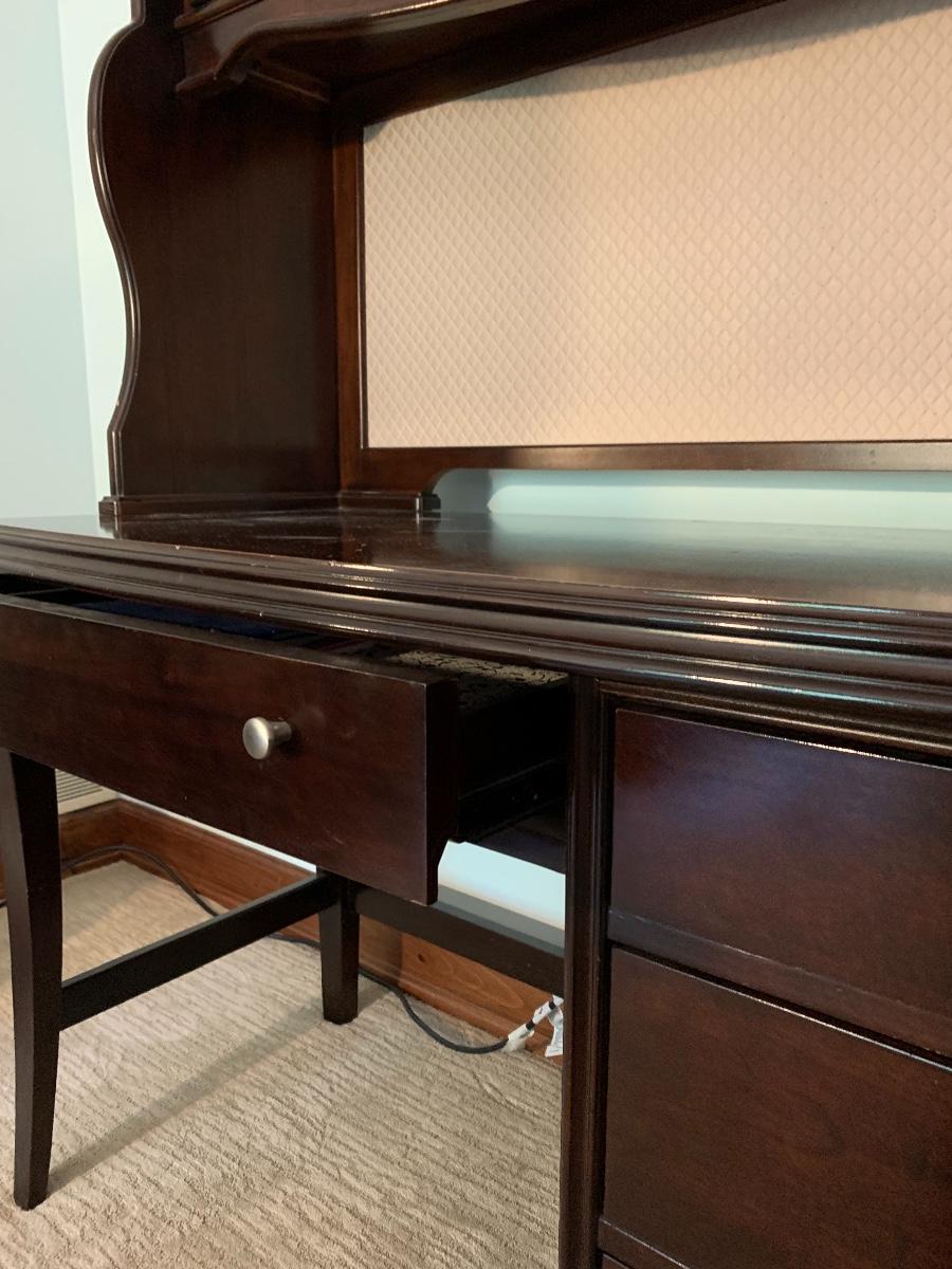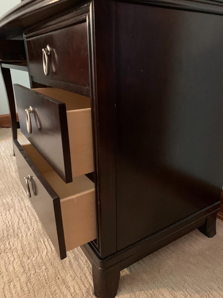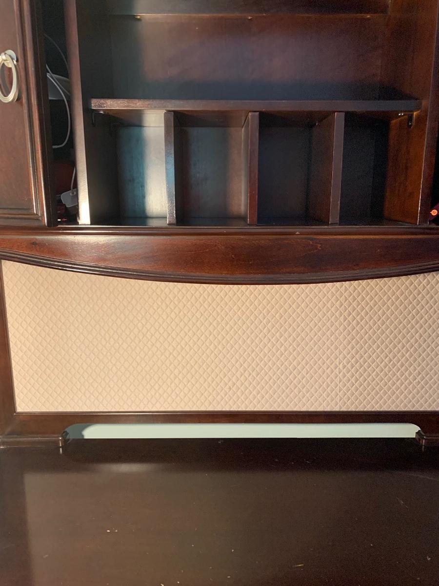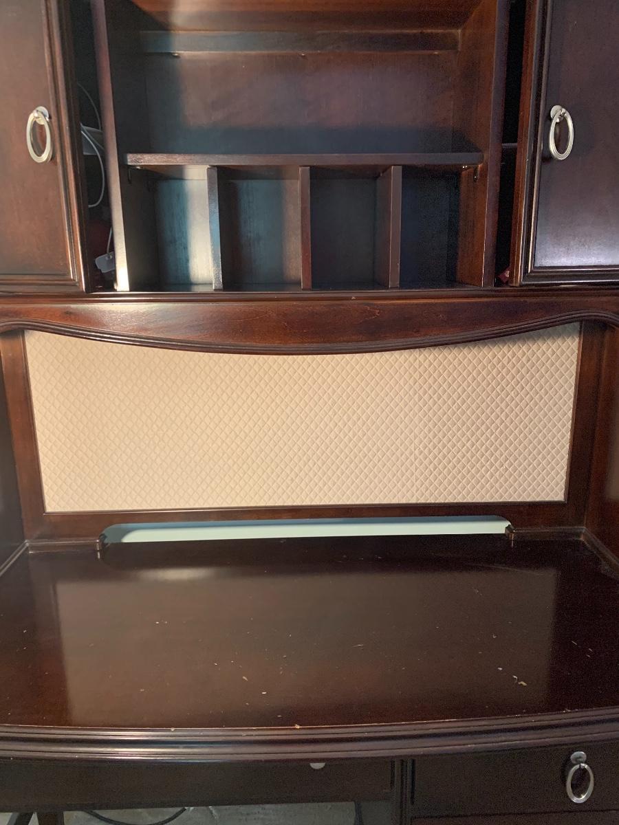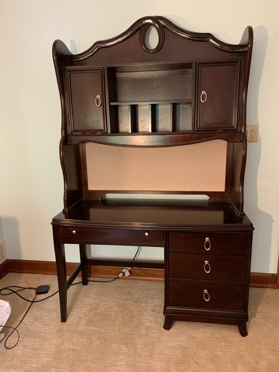 Lot 78: Curved Line Desk with Matching Hutch & Silver Hardware