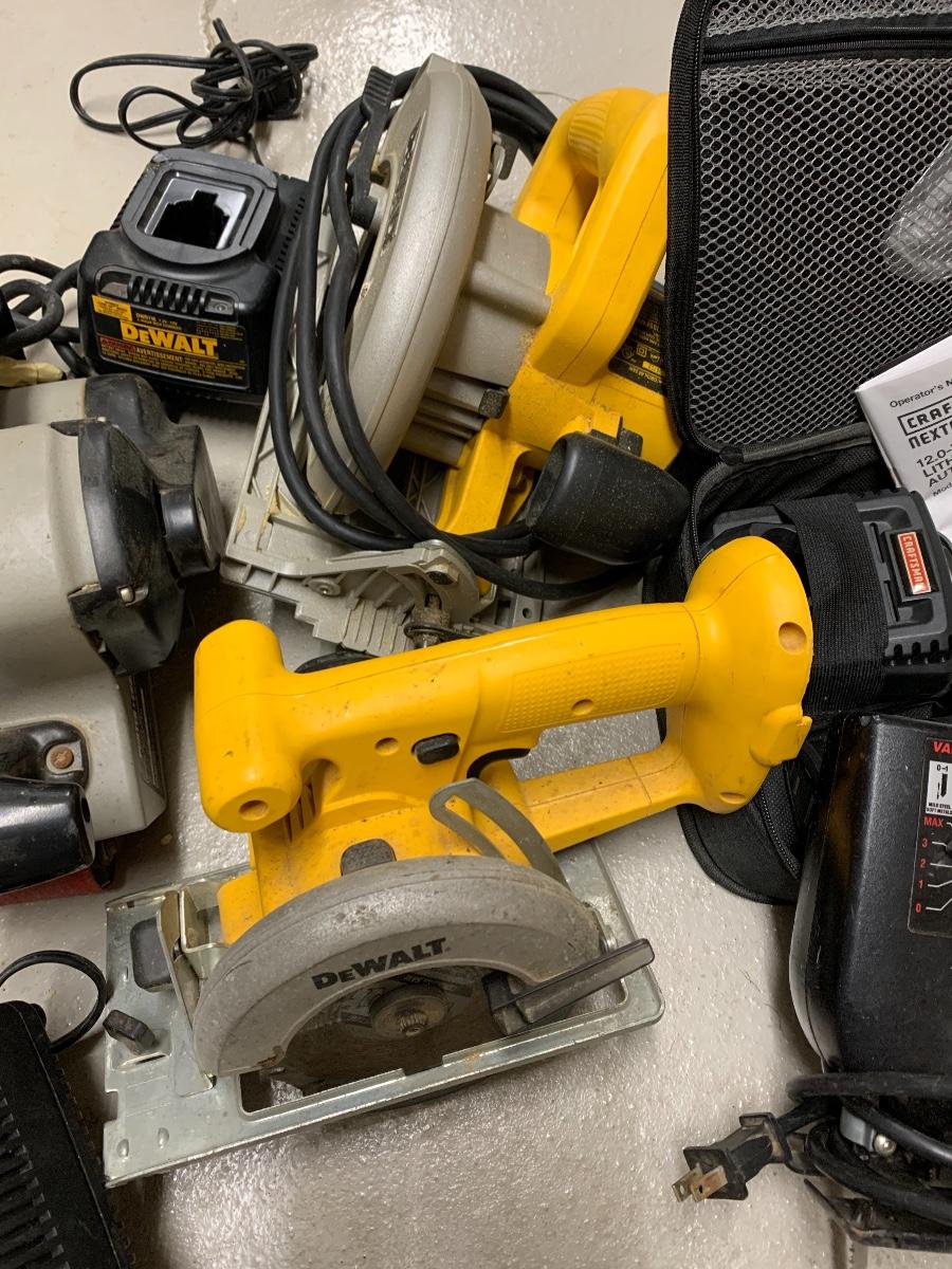 Circular Saw, Sander & more. Client confirmed all working, but may need to be charged or if gas-powered, filled. Please see all pictures as they are the best representation of the items. The pictures show condition, measurements if taken, and what is included in the lot. Due to the large amount that we photograph and the time frame, we are not always able to take measurements. All items unless noted, are pre-owned and have been used. If you purchased furniture, you must bring help. We do not allow one person to carry large furniture out on their own. Bring help, tools and a truck for the safety of our clients homes, and your personal safety. Company policy. Thank you.