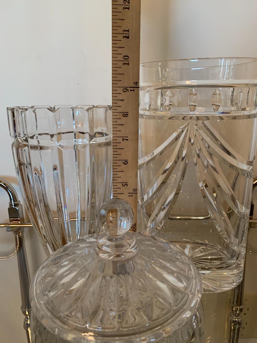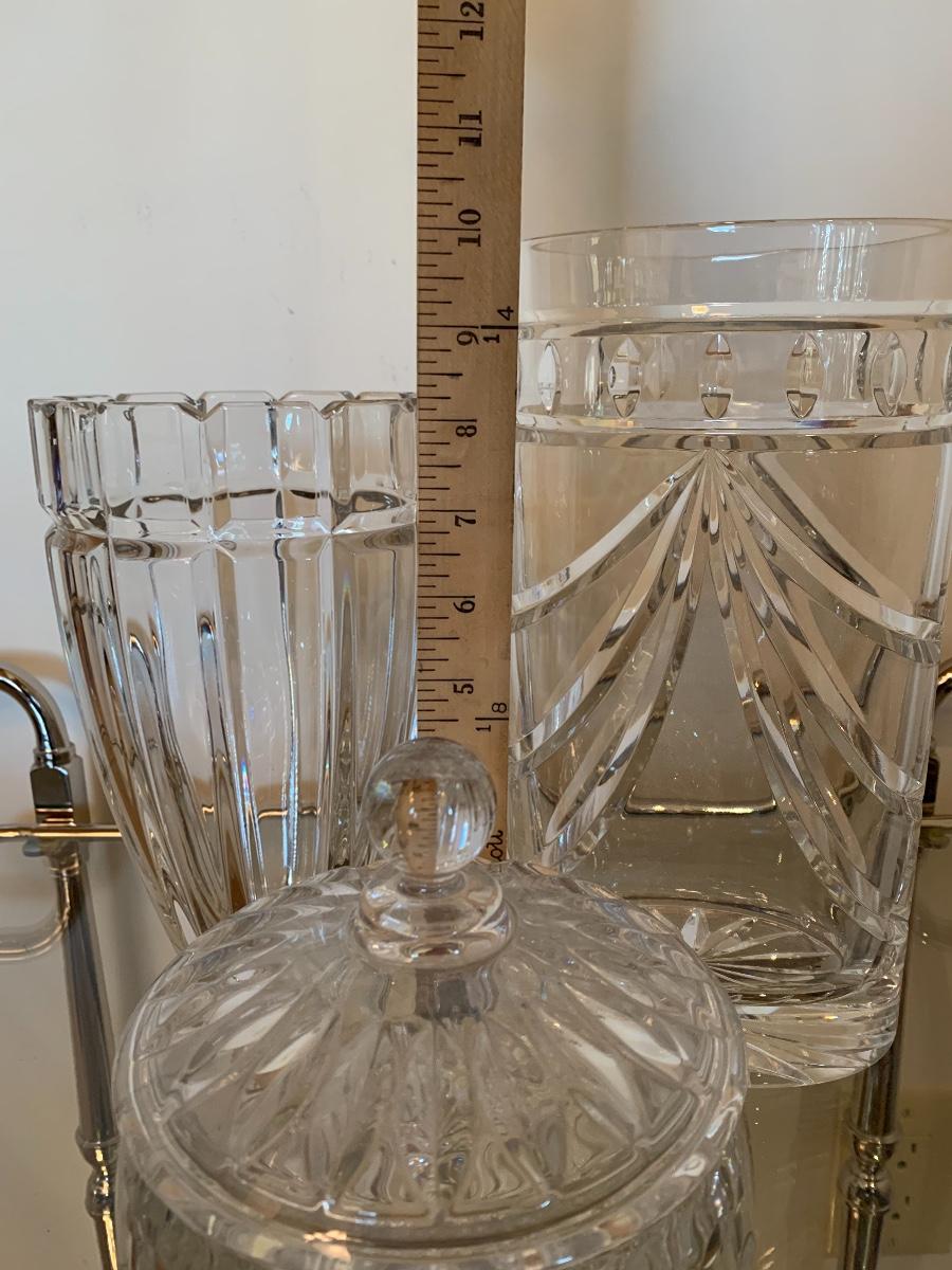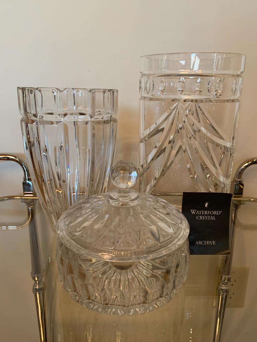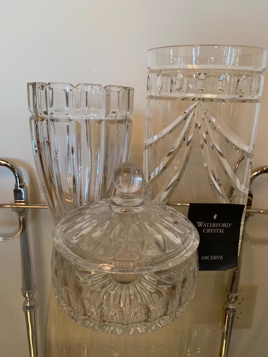 The tall vase is marked Waterford the rest are not. Please see all pictures as they are the best representation of the items. The pictures show condition, measurements if taken, and what is included in the lot. Due to the large amount that we photograph and the time frame, we are not always able to take measurements. All items unless noted, are pre-owned and have been used. If you purchased furniture, you must bring help. We do not allow one person to carry large furniture out on their own. Bring help, tools and a truck for the safety of our clients homes, and your personal safety. Company policy. Thank you.