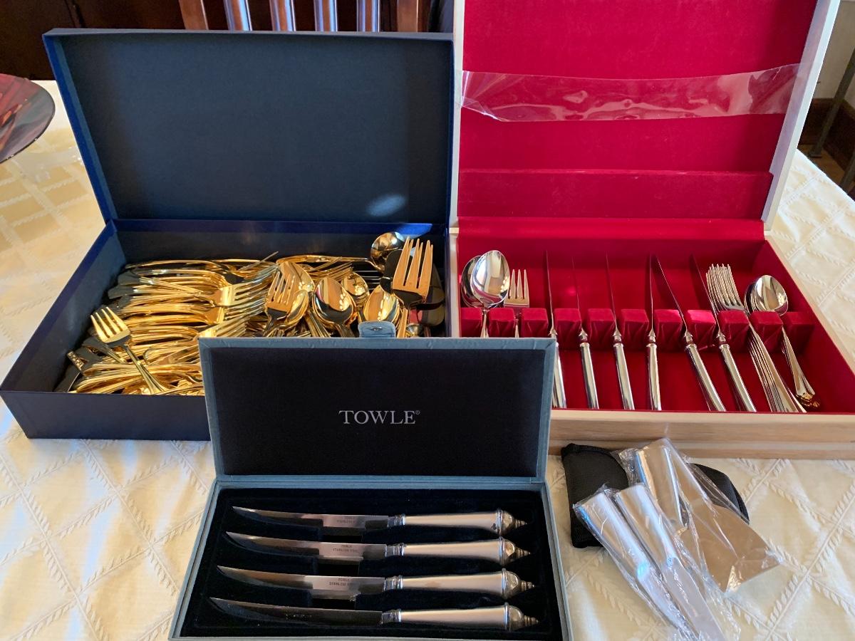 Lot 153: Towle Boxed Knife Set, Charcuterie Knives & Flat Ware Place Settings
