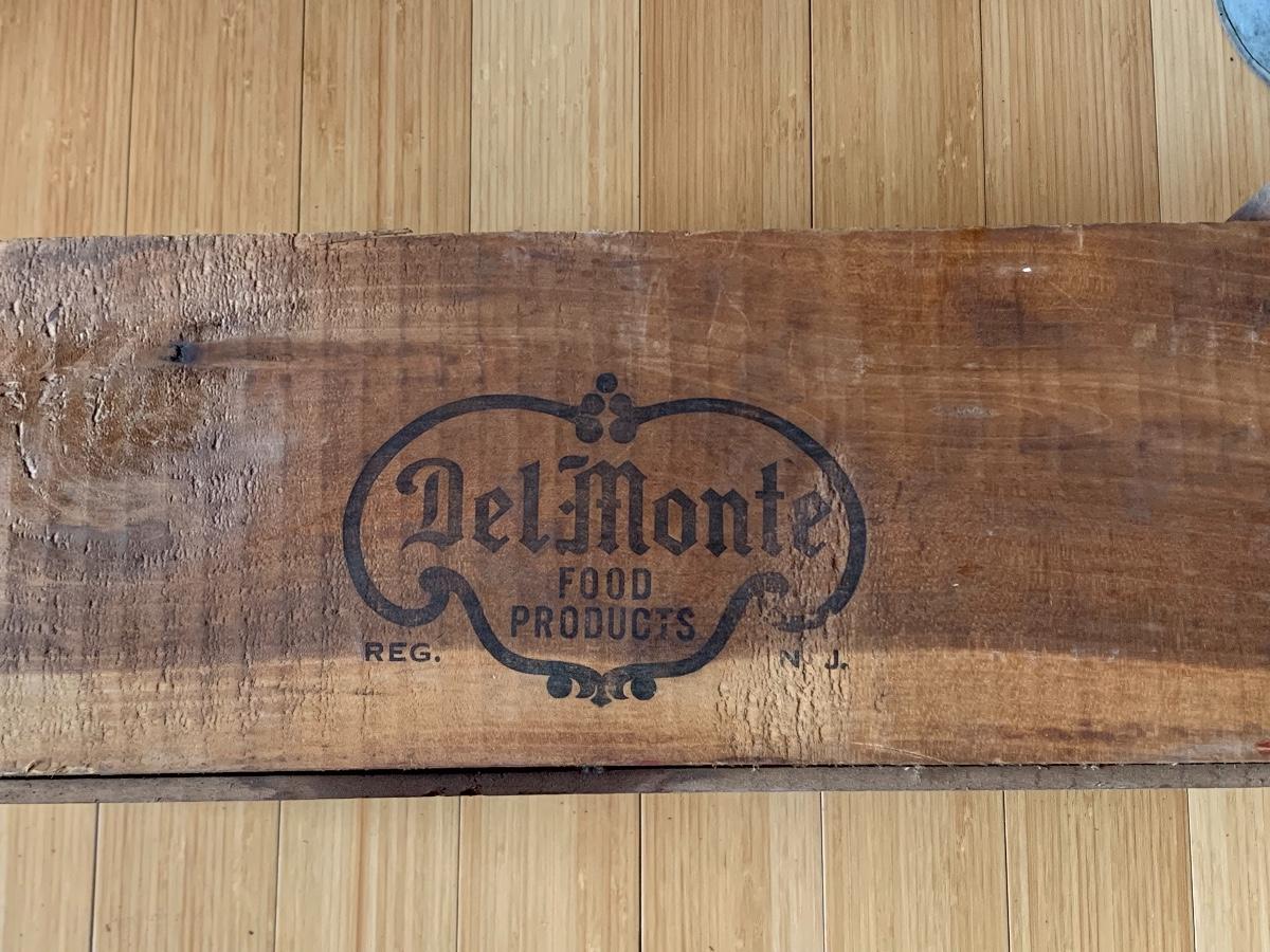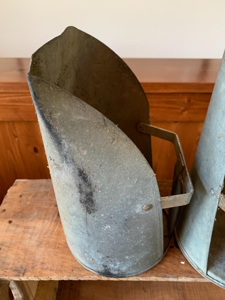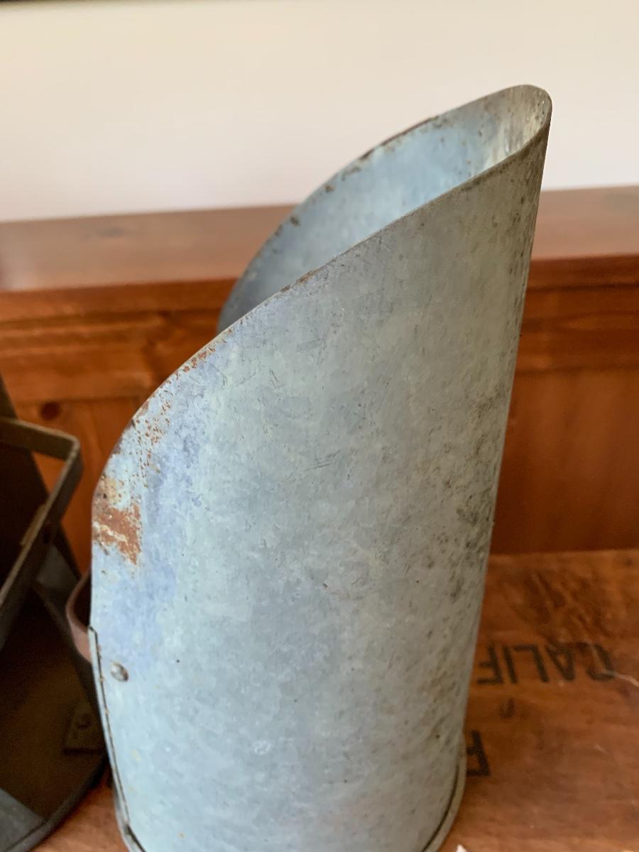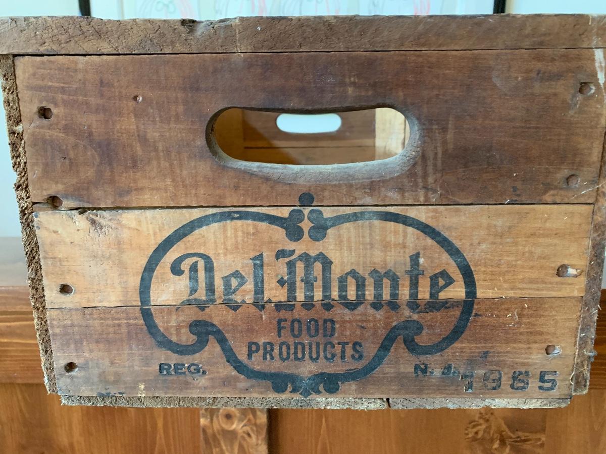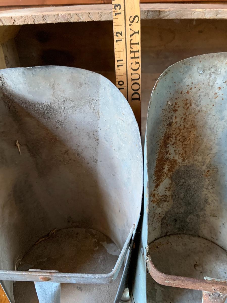 Lot 92: Antique Del Monte Crate & Vintage Galvanized Metal Grain Scoops