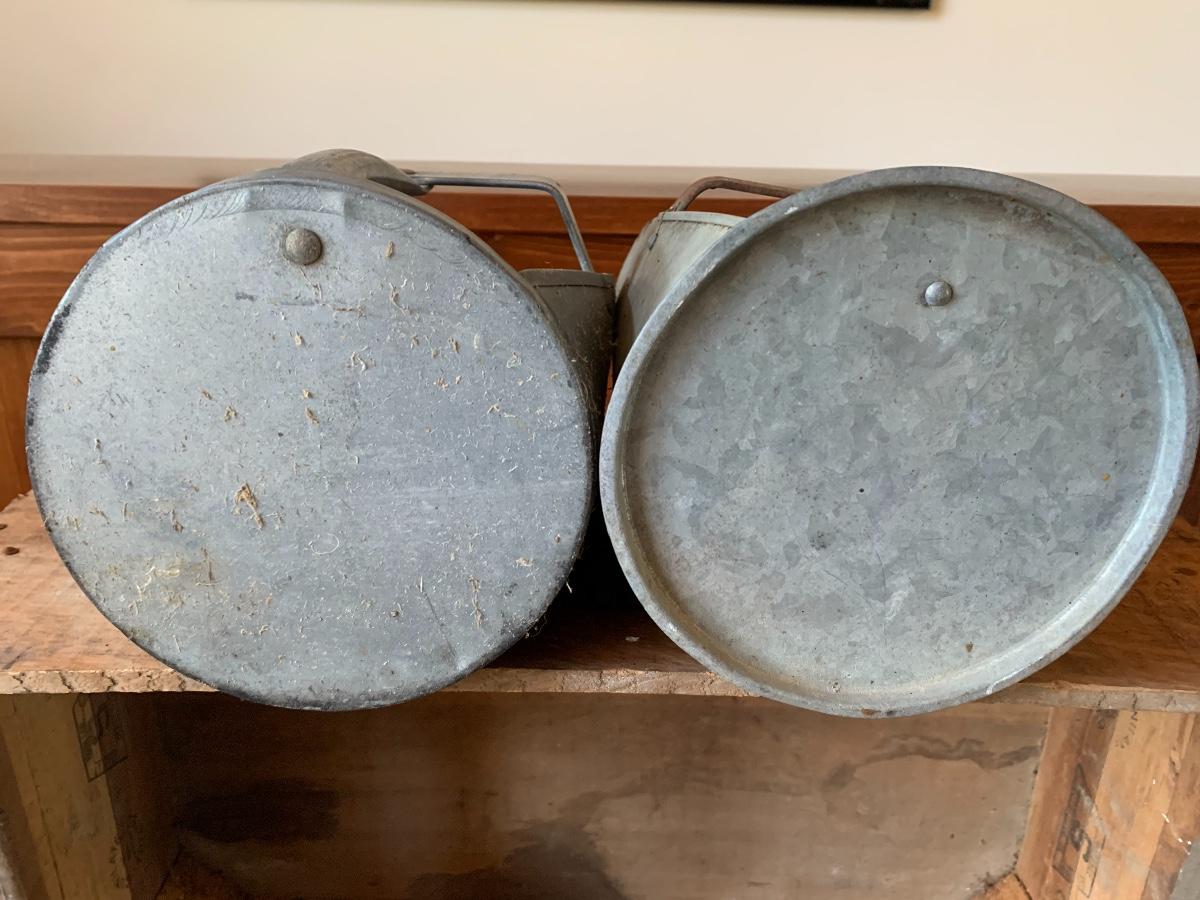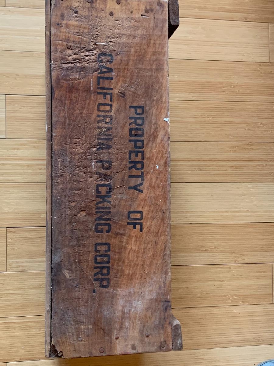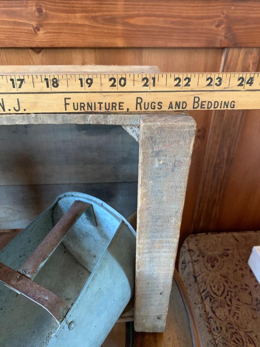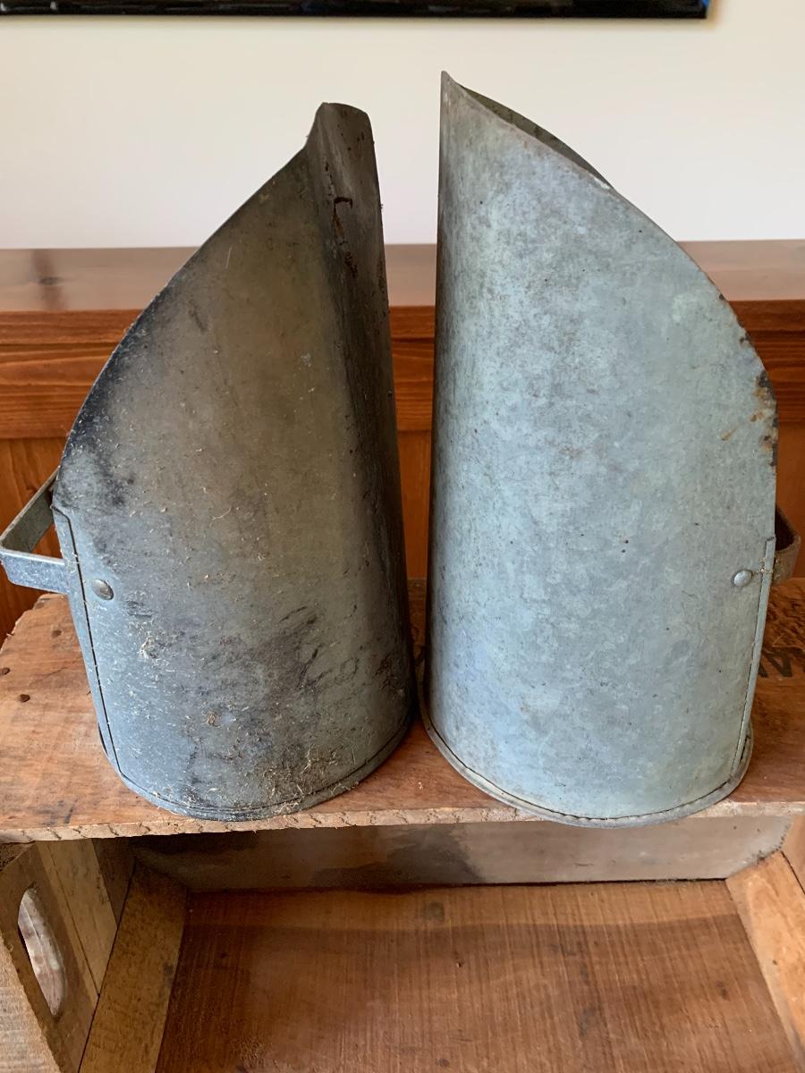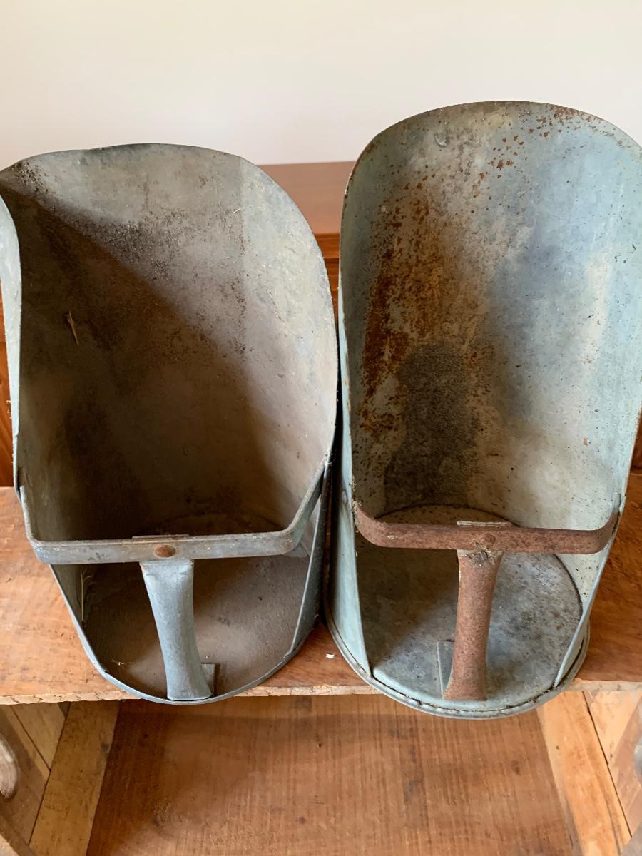 Lot 92: Antique Del Monte Crate & Vintage Galvanized Metal Grain Scoops