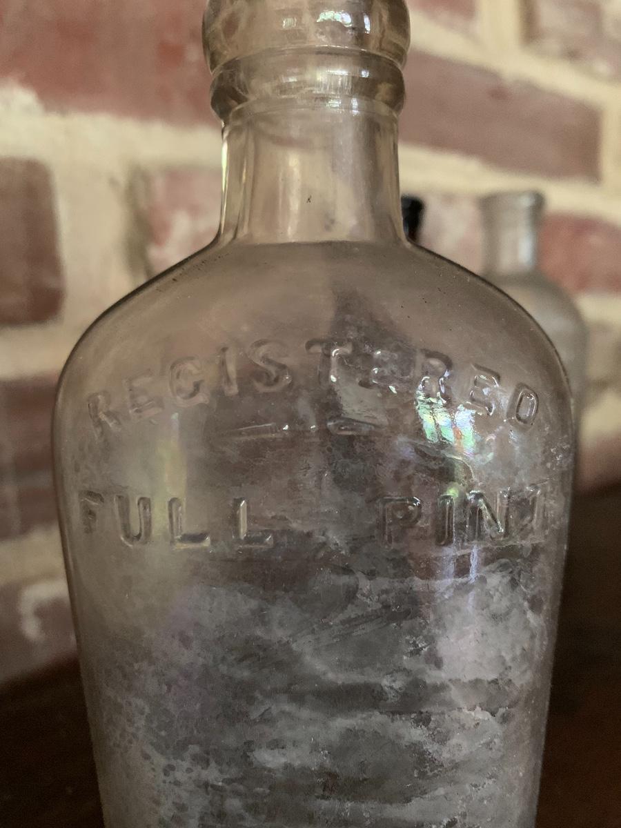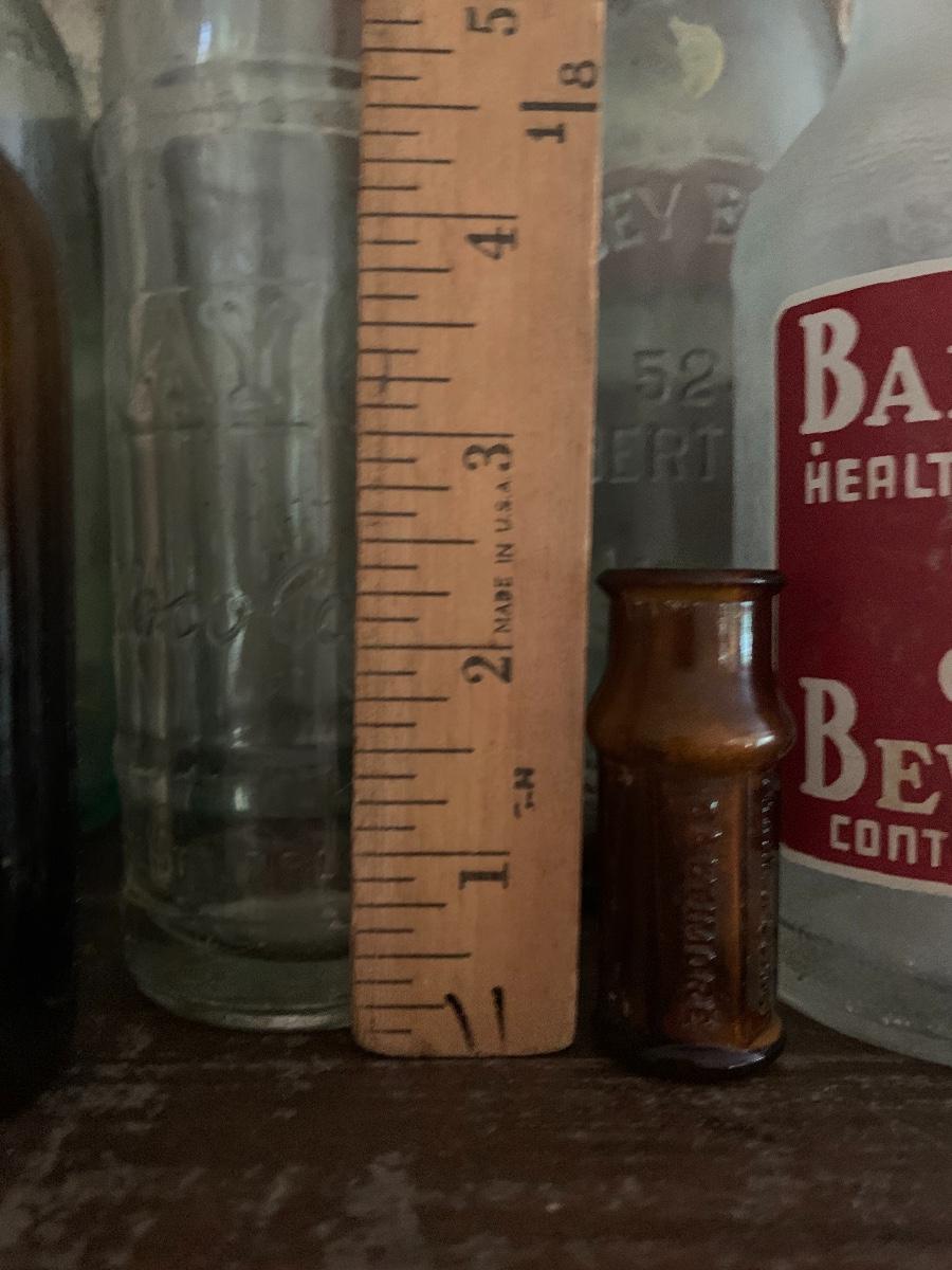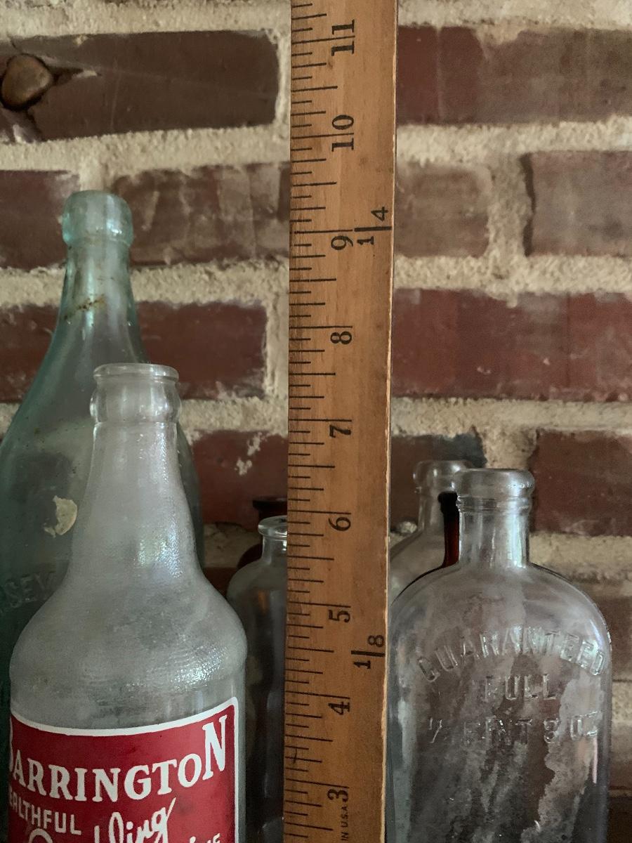 Large lot of vintage bottles with names and/or markings in various sizes.