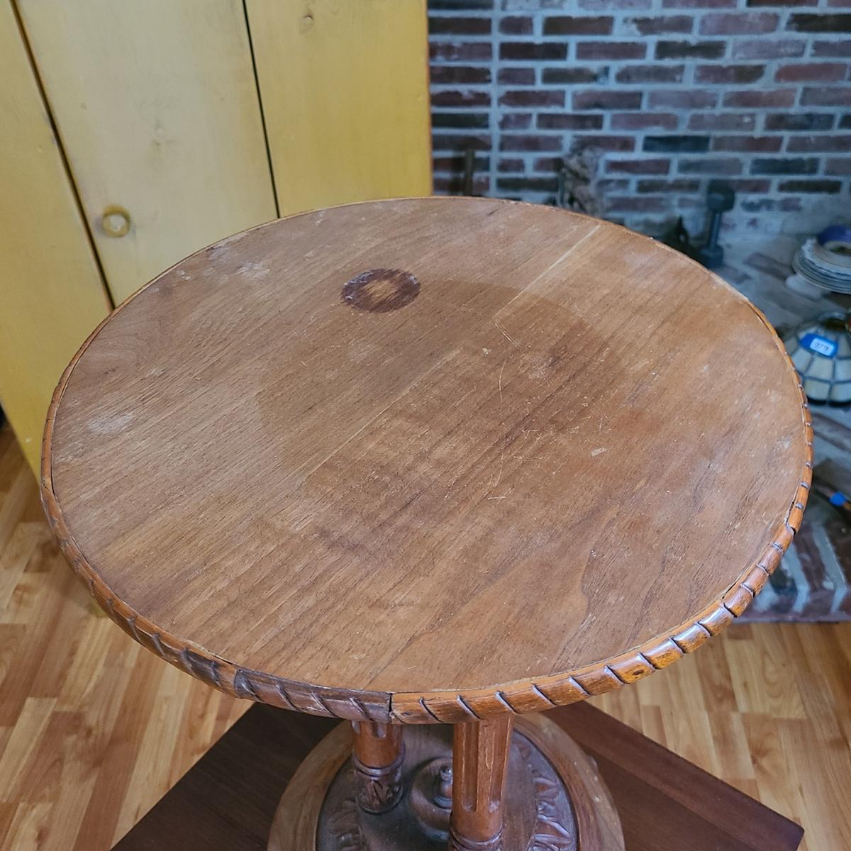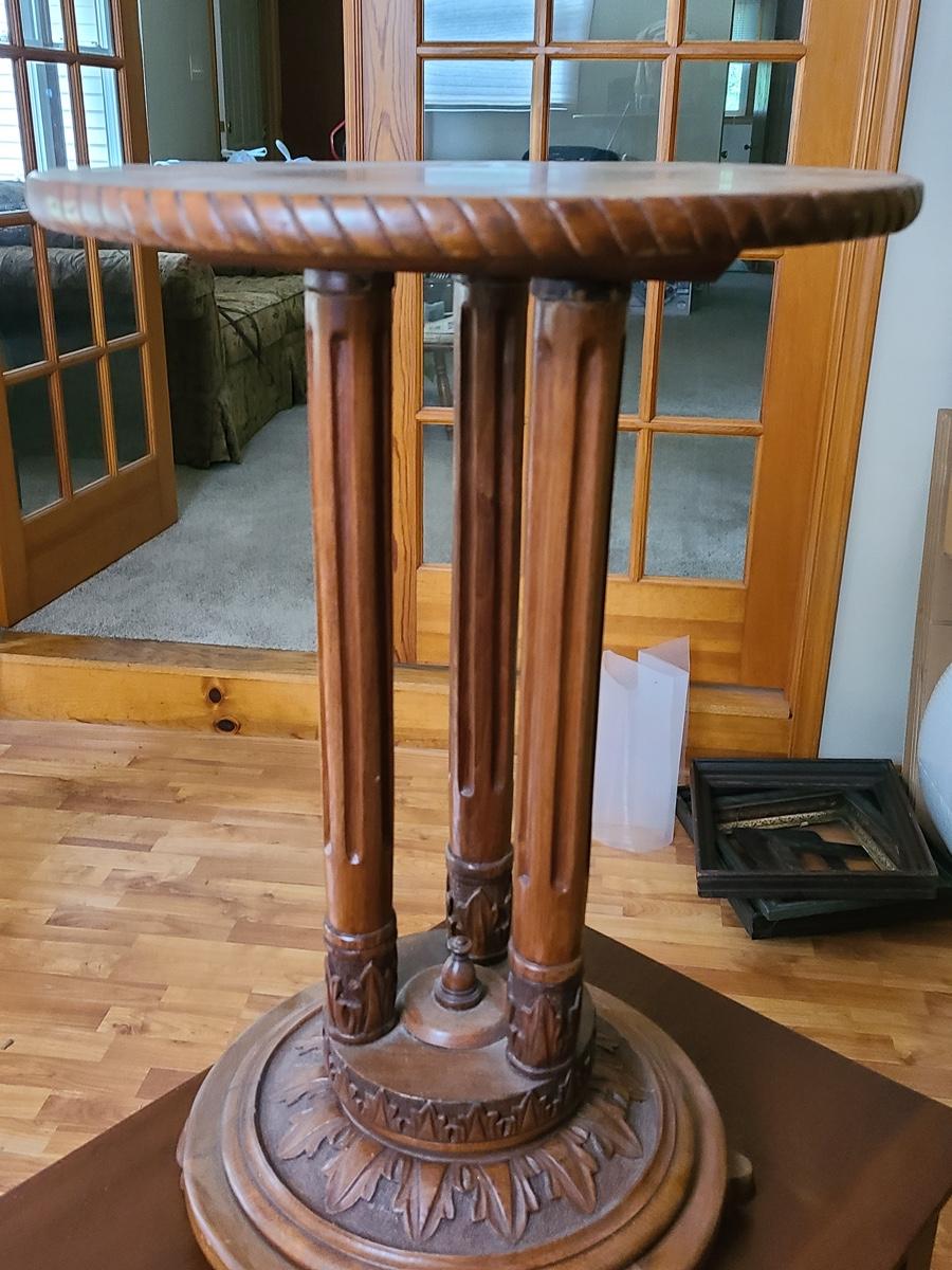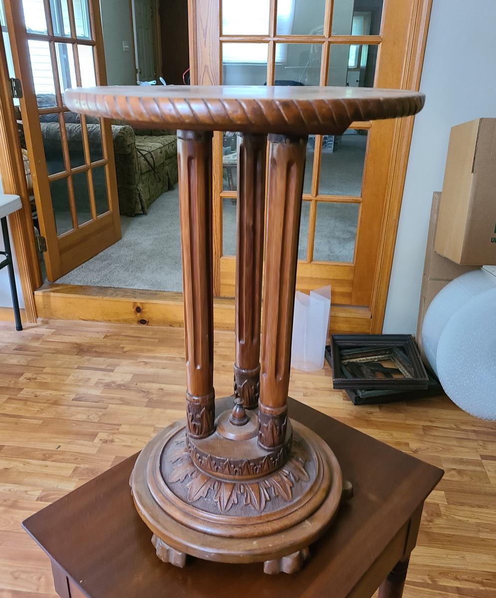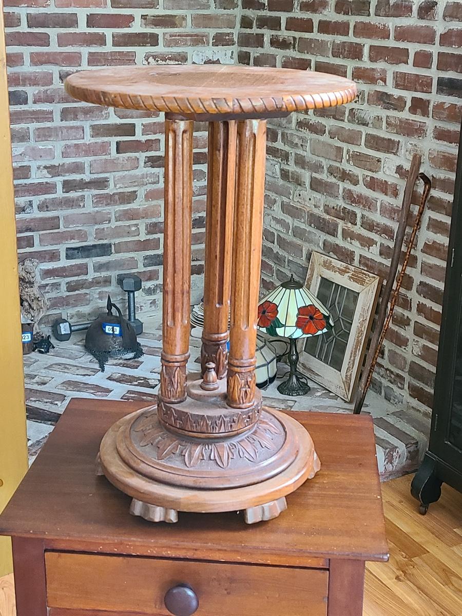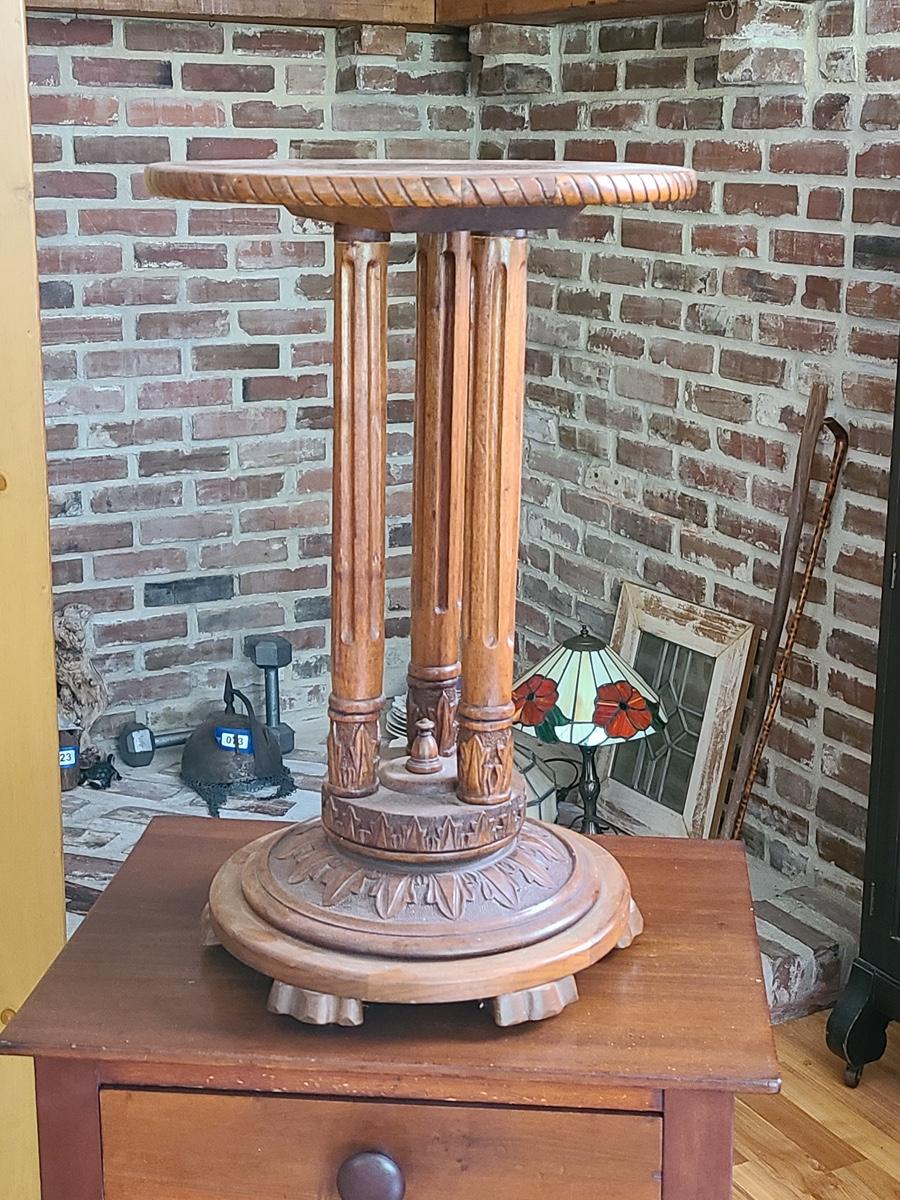 Lot 6: Christine Jensen, Antique Hand Carved Pedestal Stand/Table