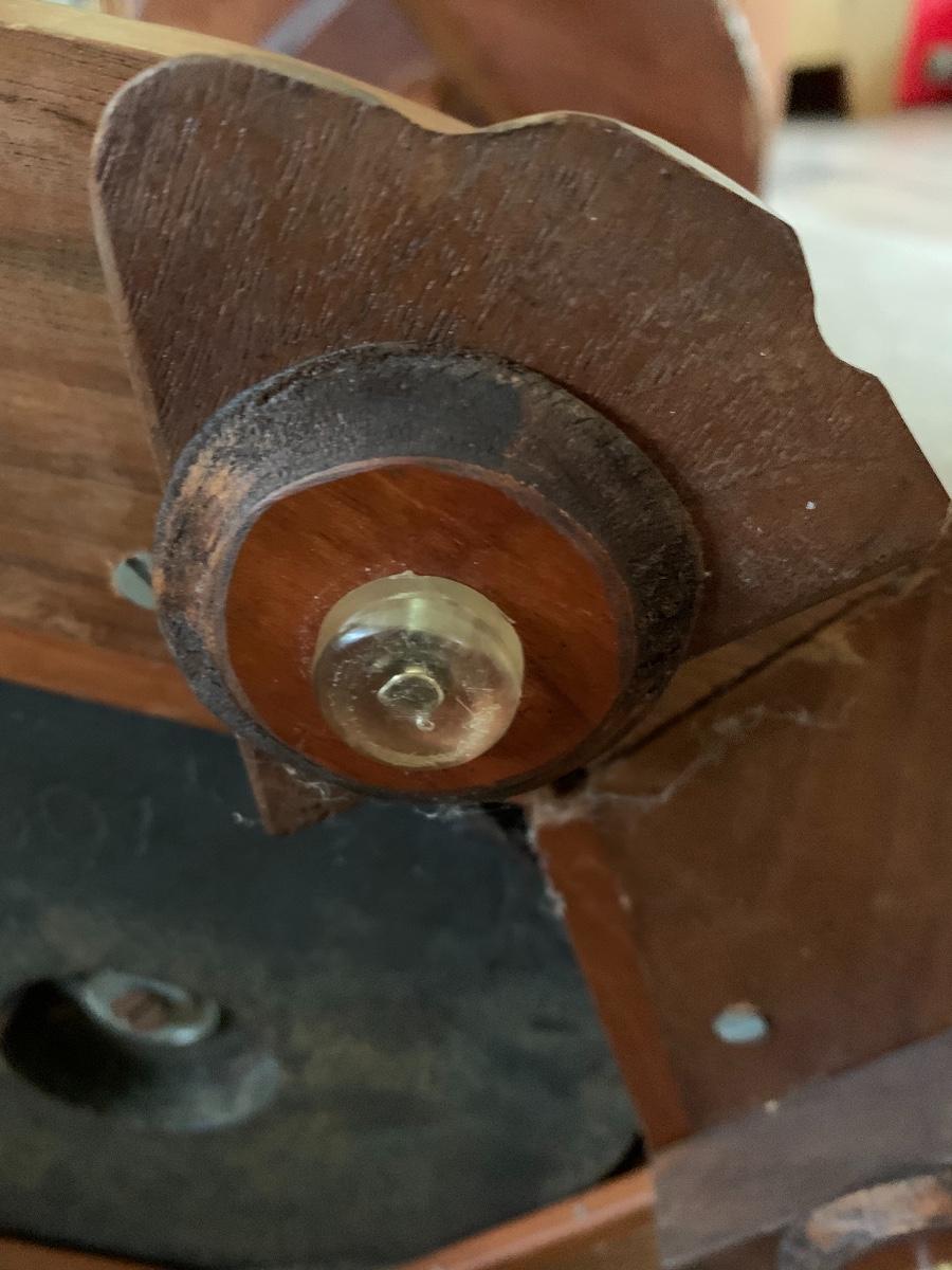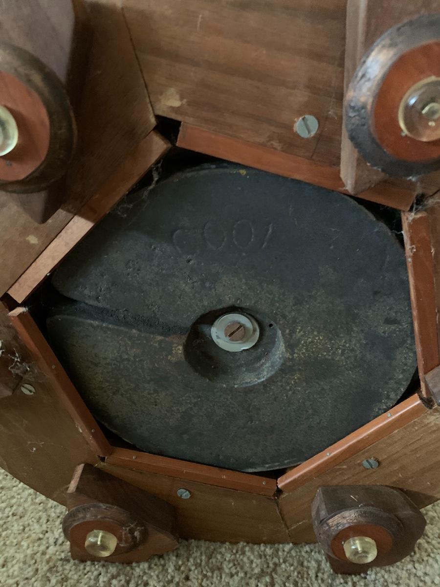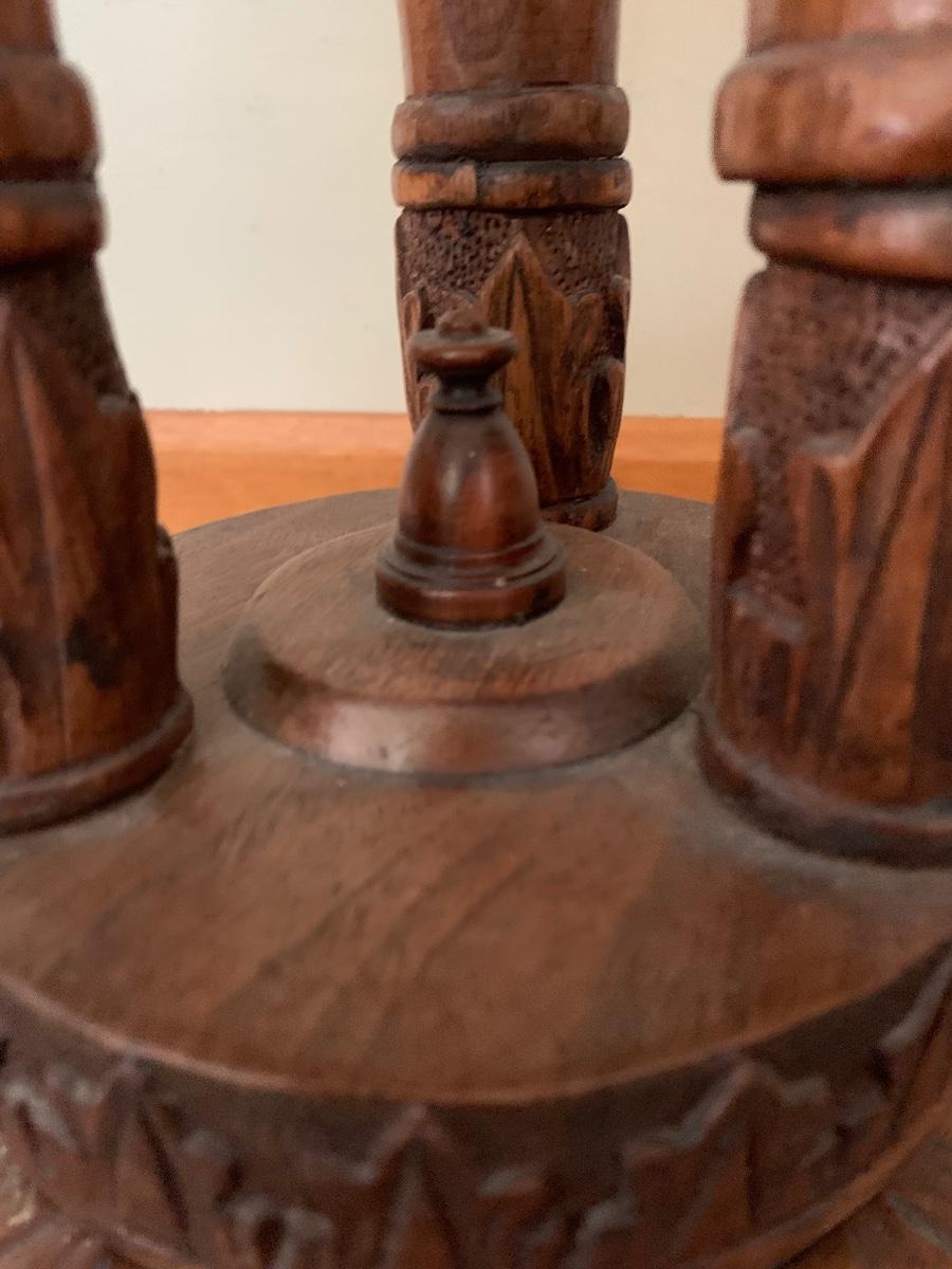 Hand Carved by Mrs. Christine Jenson. This is a beautiful piece of craftsmanship and art.. It is weighted at the bottom to ensure stability. Born in Denmark she came to this country when she was young. She opened a restaurant and lived above it in Chicago IL. It was there she pursued her hobby of wood carving using only crude tools. Mrs. Jenson did not sell her work and had pieces on display in museums. She was also pictured in the Chicago Tribune around 1928..