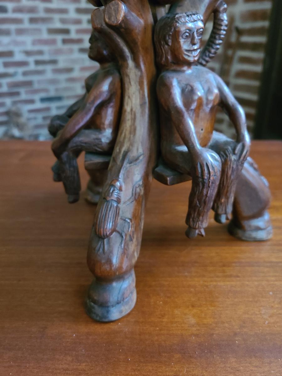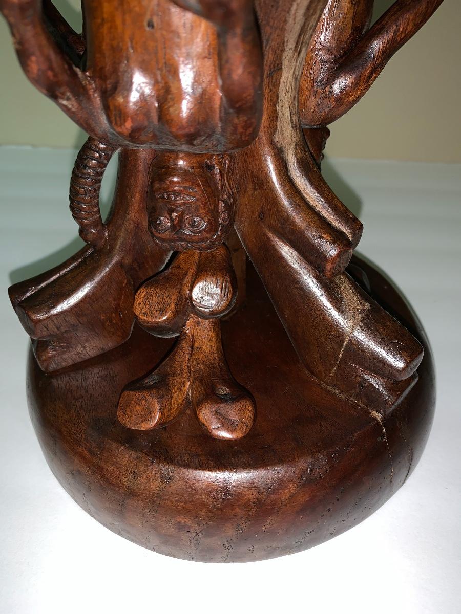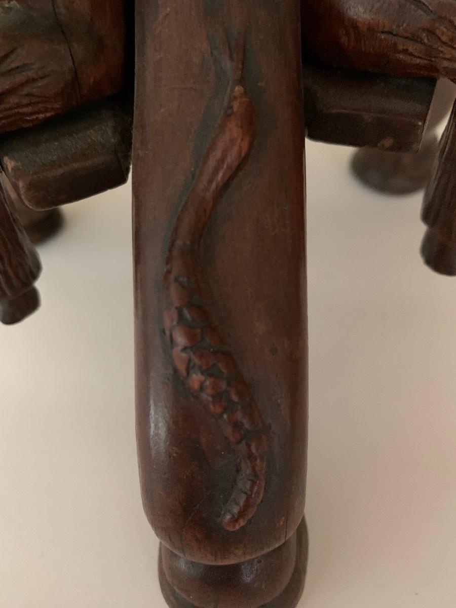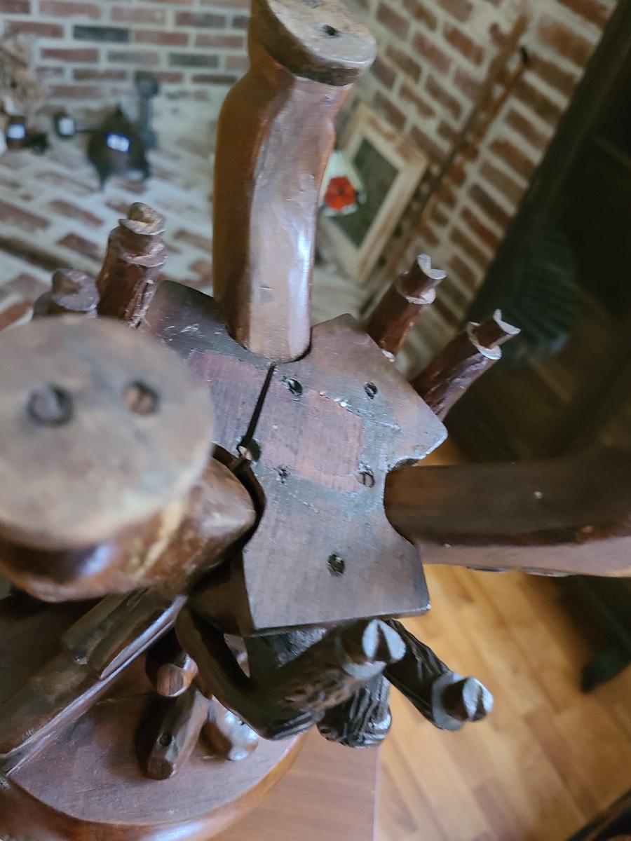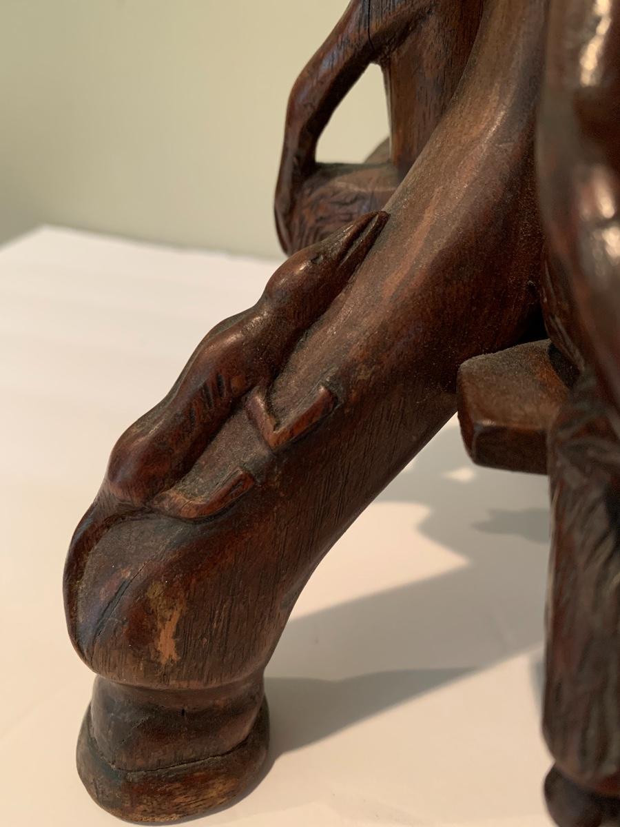 Hand Carved by Mrs. Christine Jenson. This is a beautiful piece of craftsmanship and art. Born in Denmark she came to this country when she was young. She opened a restaurant and lived above it in Chicago IL. It was there she pursued her hobby of wood carving using only crude tools. Mrs. Jenson did not sell her work and had pieces on display in museums. She was also pictured in the Chicago Tribune around 1928.