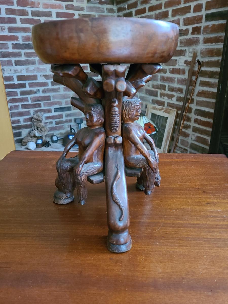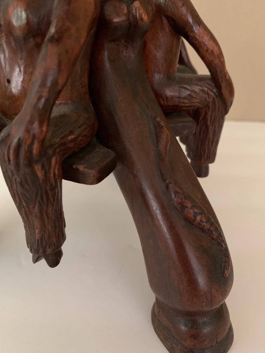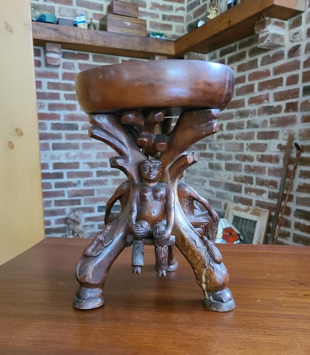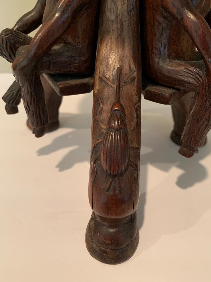 Hand Carved by Mrs. Christine Jenson. This is a beautiful piece of craftsmanship and art. Born in Denmark she came to this country when she was young. She opened a restaurant and lived above it in Chicago IL. It was there she pursued her hobby of wood carving using only crude tools. Mrs. Jenson did not sell her work and had pieces on display in museums. She was also pictured in the Chicago Tribune around 1928.