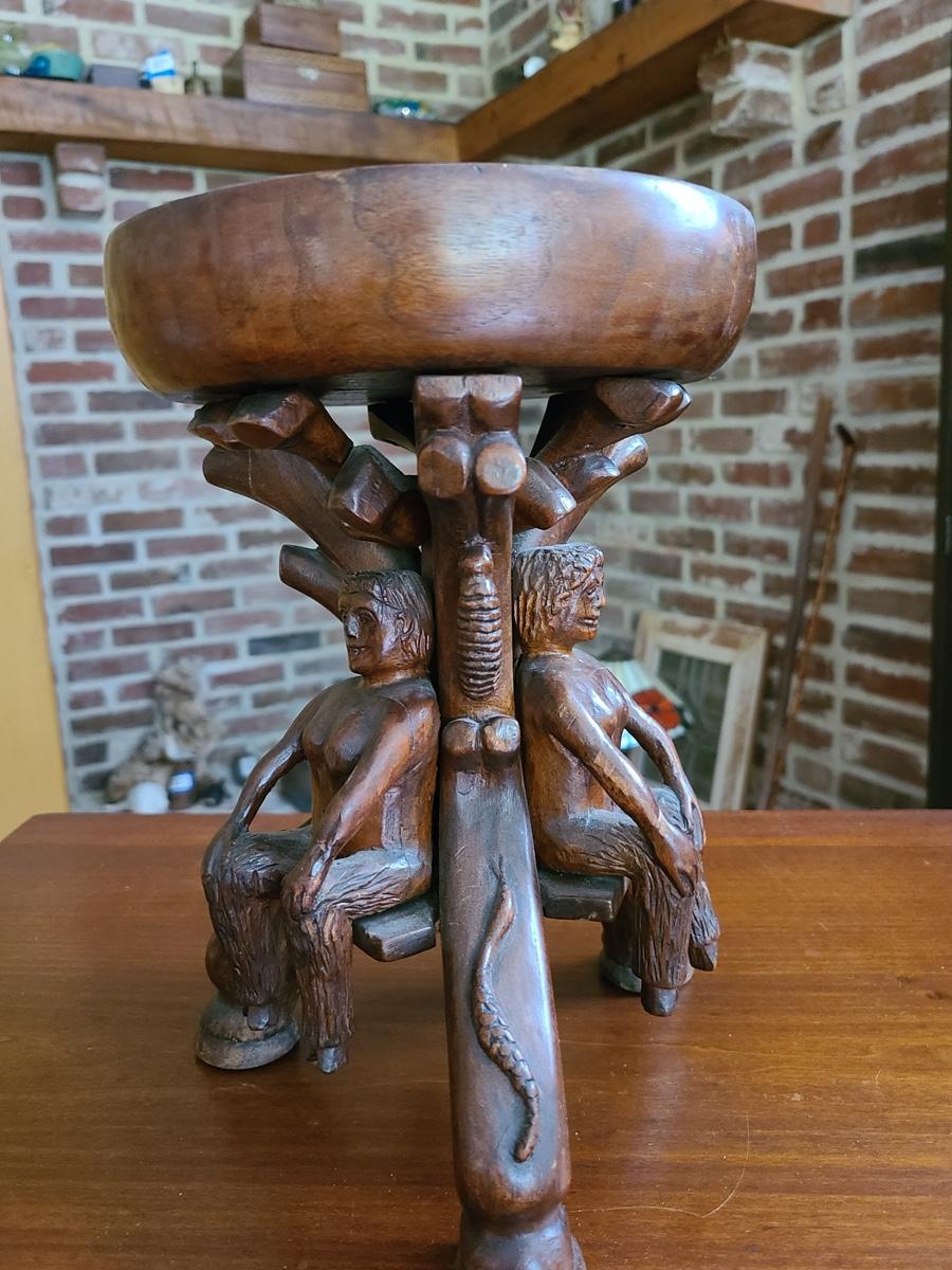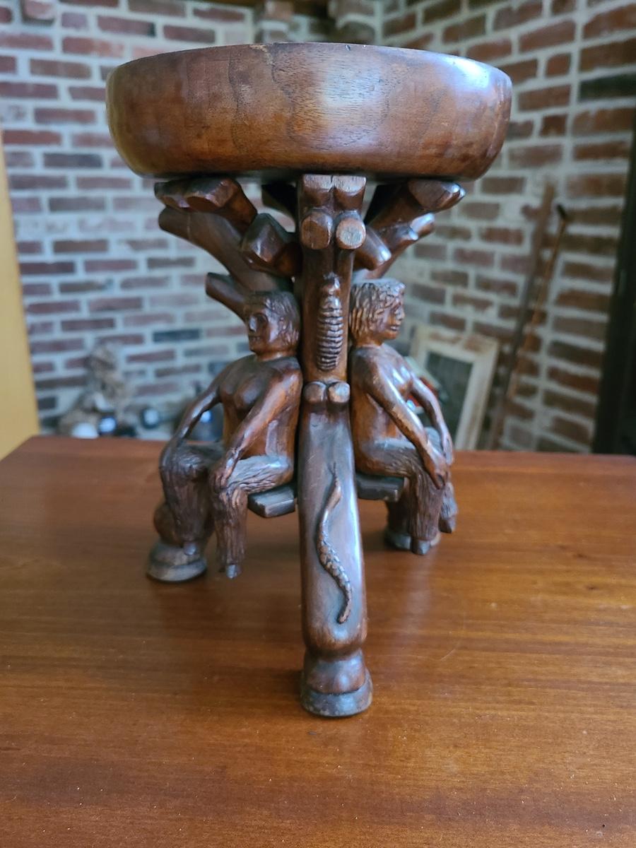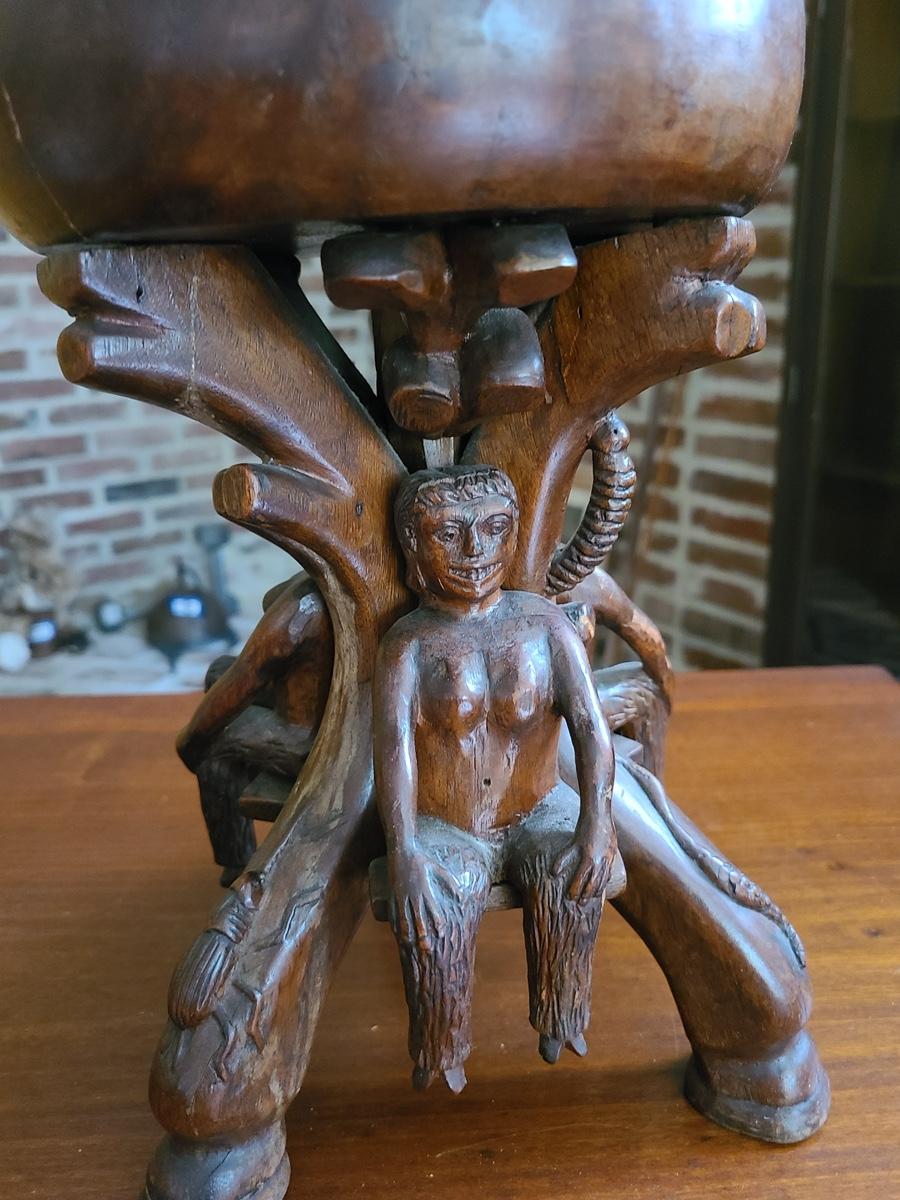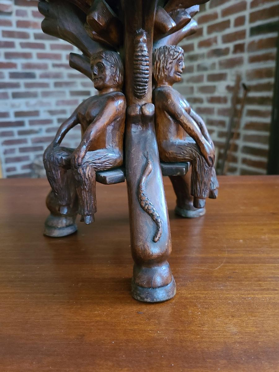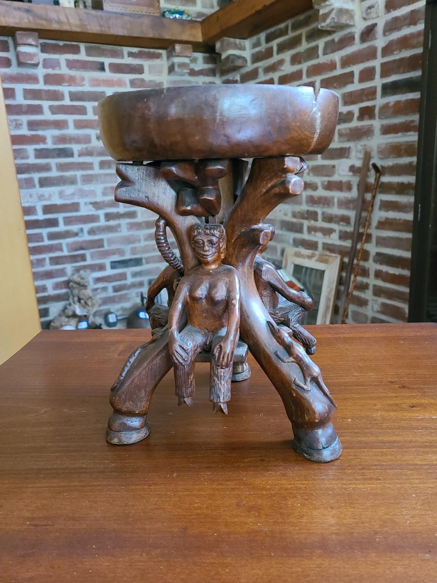 Hand Carved by Mrs. Christine Jenson. This is a beautiful piece of craftsmanship and art. Born in Denmark she came to this country when she was young. She opened a restaurant and lived above it in Chicago IL. It was there she pursued her hobby of wood carving using only crude tools. Mrs. Jenson did not sell her work and had pieces on display in museums. She was also pictured in the Chicago Tribune around 1928.