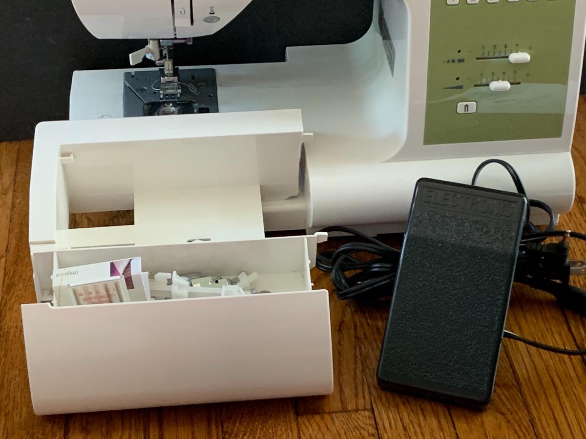The Confidence 7467 is a fully electronic sewing machine. Each stitch is electronically formed, optimally set, and sewn with exact precision. You can even do free motion work with the drop feed feature. Selecting a stitch is easy with Push Button Stitch Selection. Threading is quick and easy with the Six Second Threading System. A full range of stitches is available: utility stitches, decorative stitches, quilting stitches, heirloom stitches, stretch stitches. working Condition.