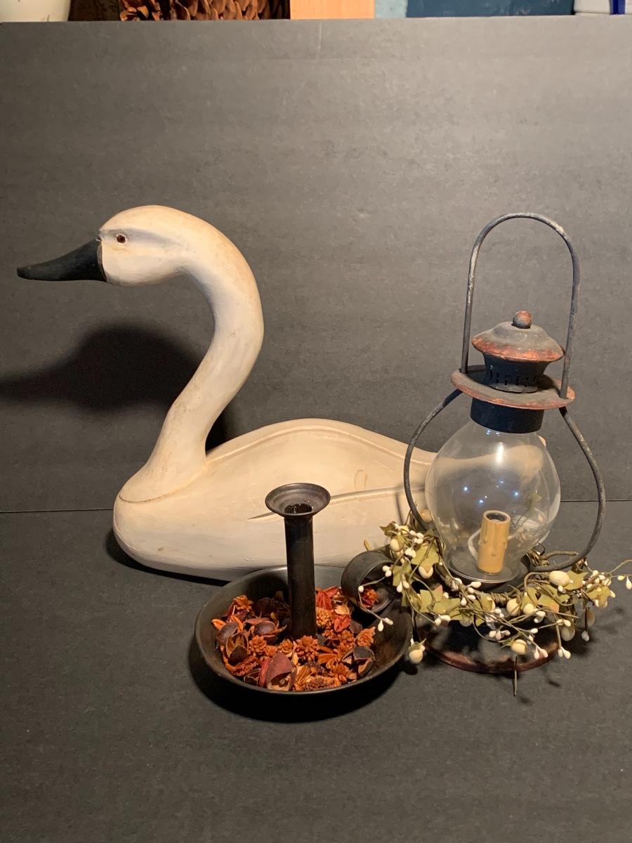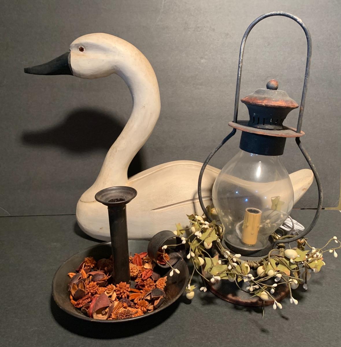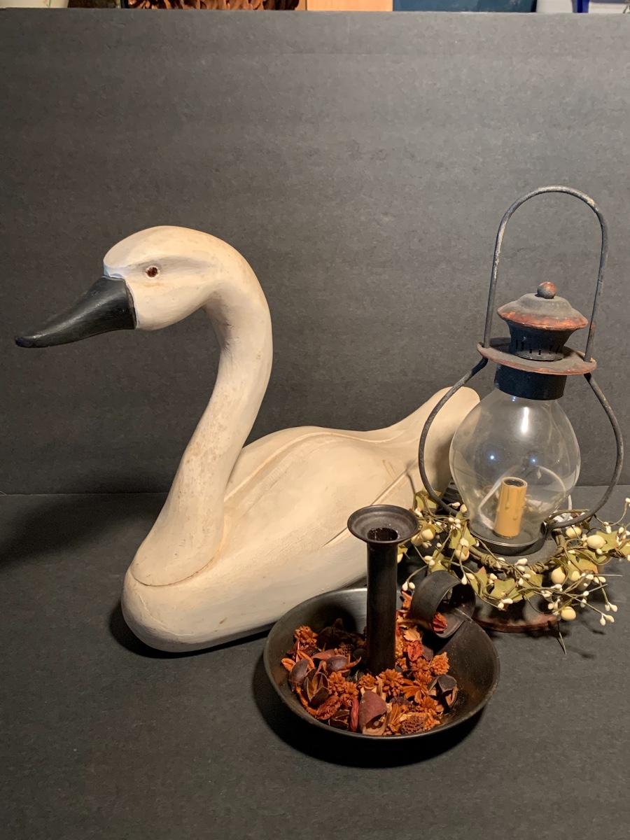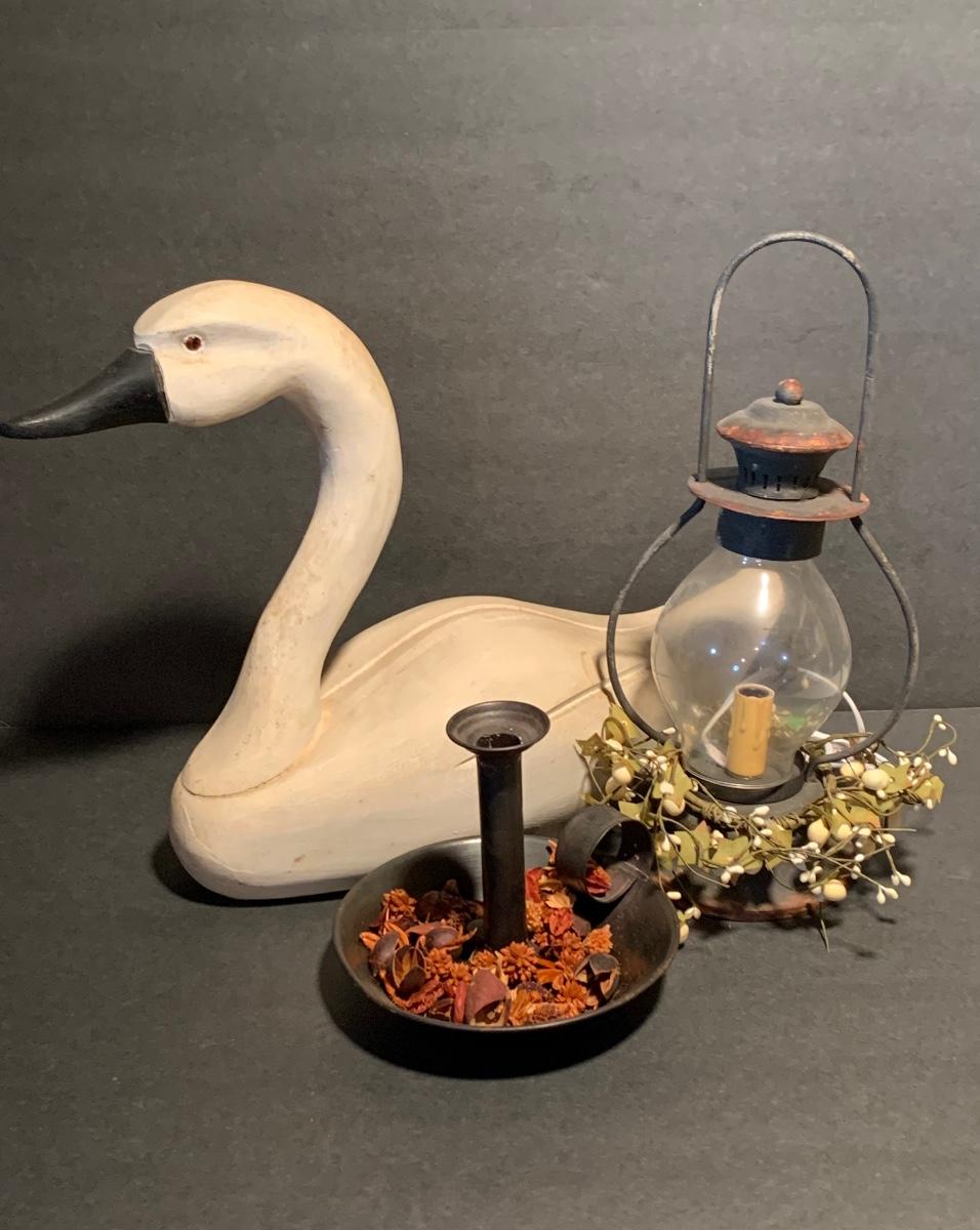 Lot 409B: Wood Swan Decoy , Primitive Light, Candle Holder