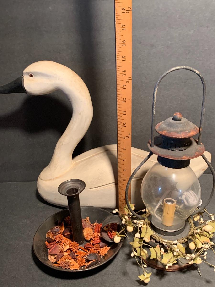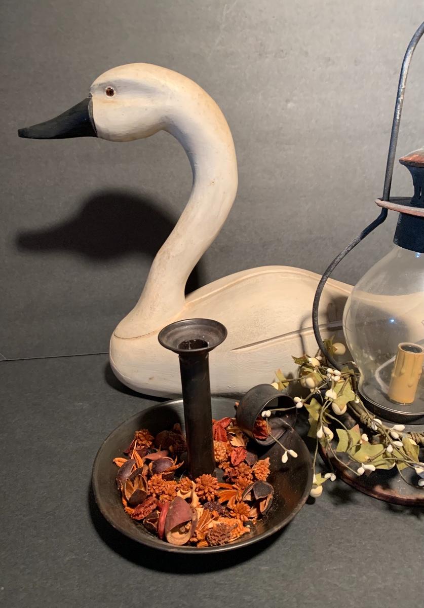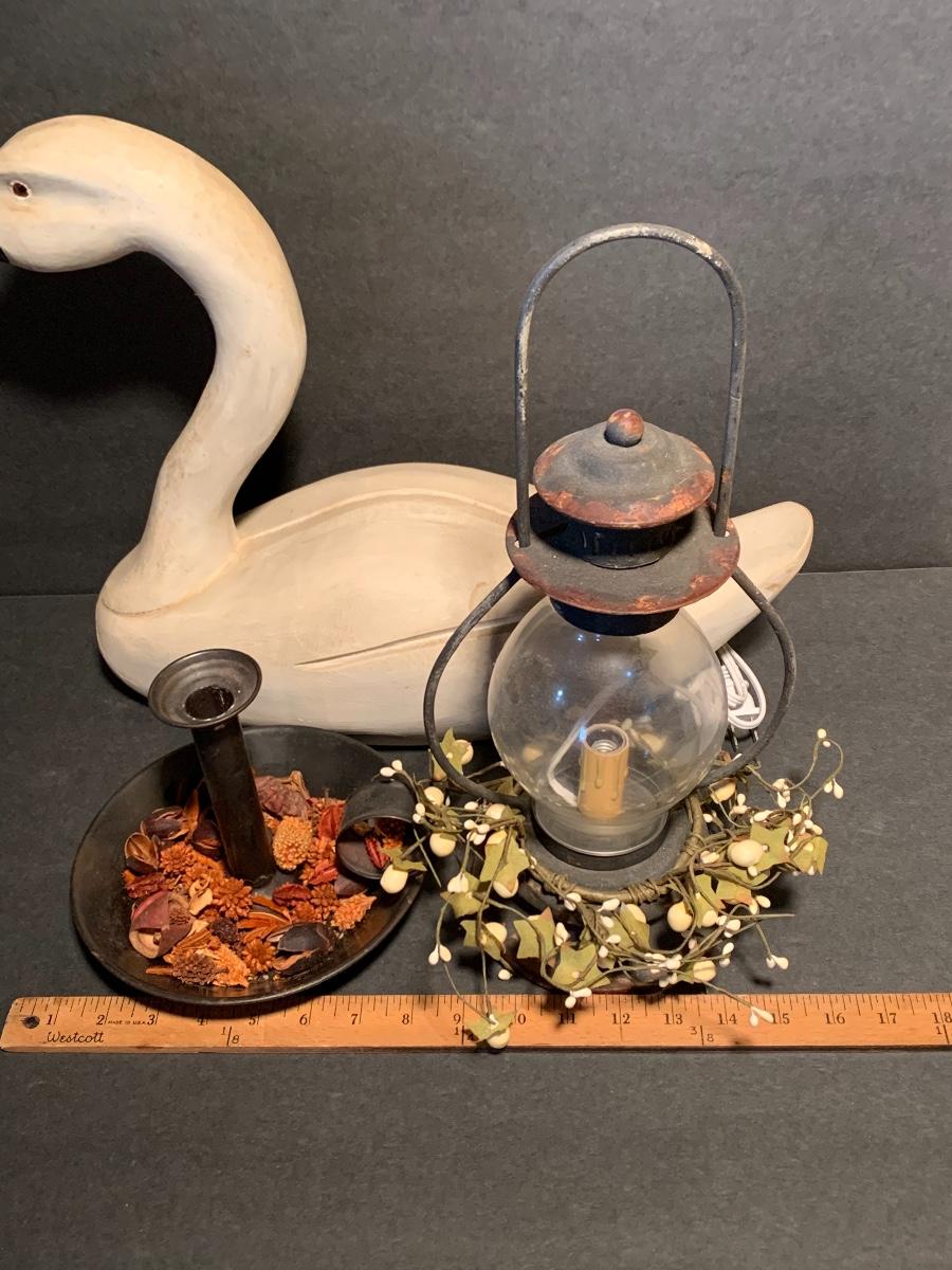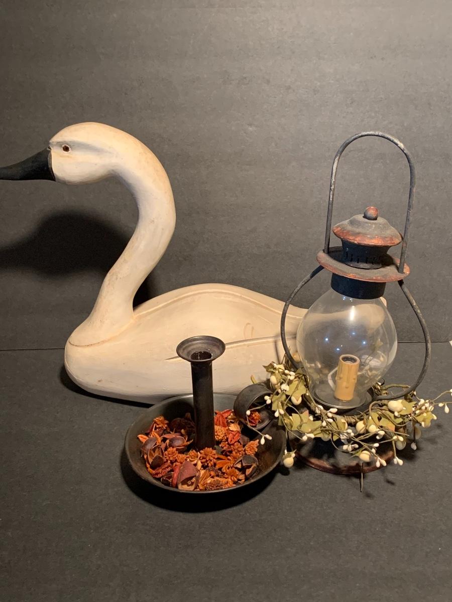 Lot 409B: Wood Swan Decoy , Primitive Light, Candle Holder