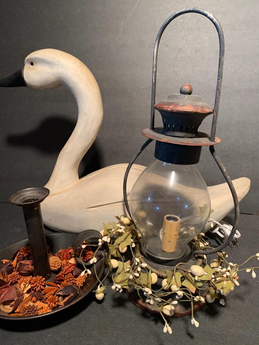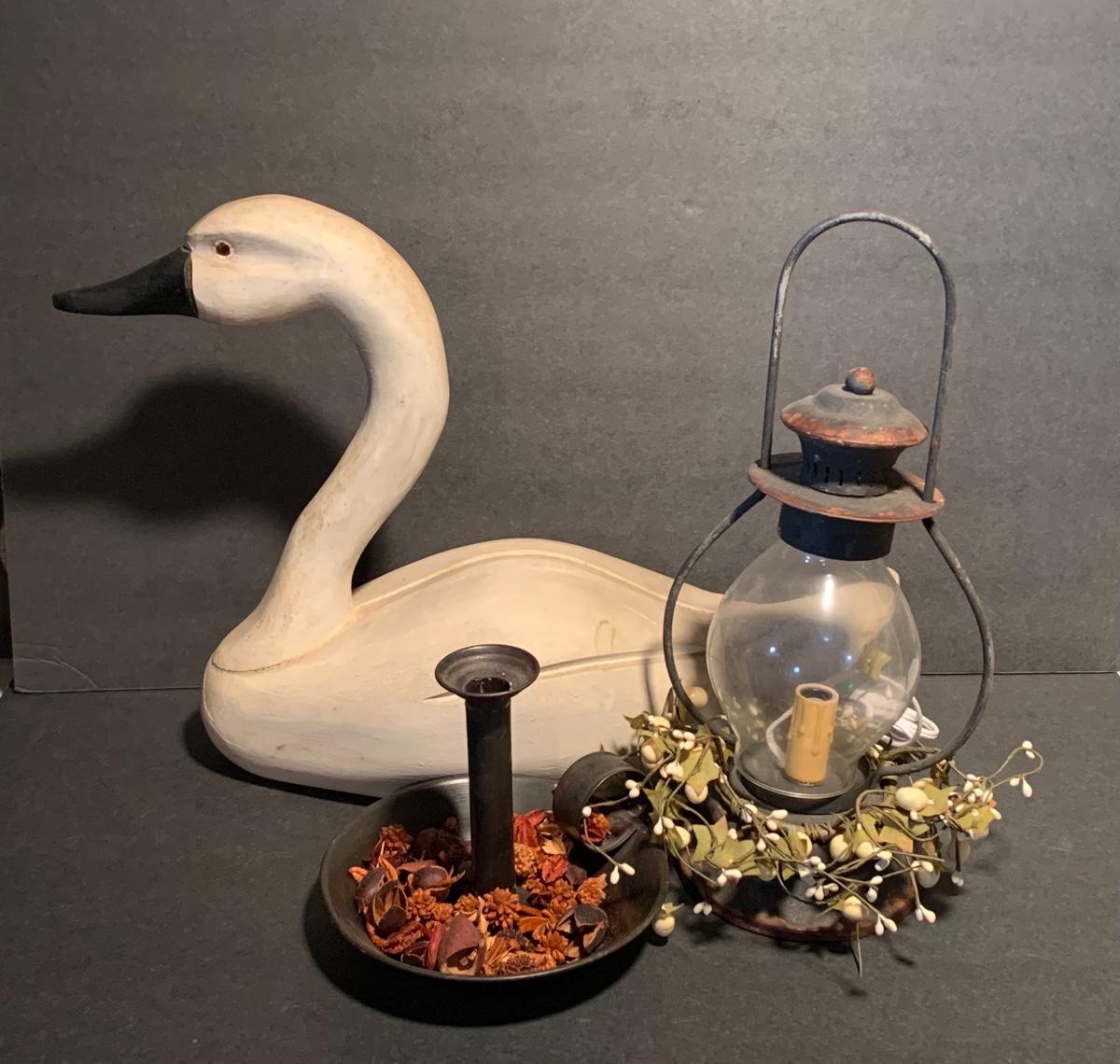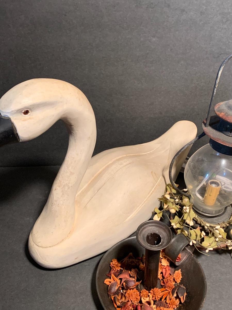 Large swan decoy to compliment the primitive accents. Lamp is untested.