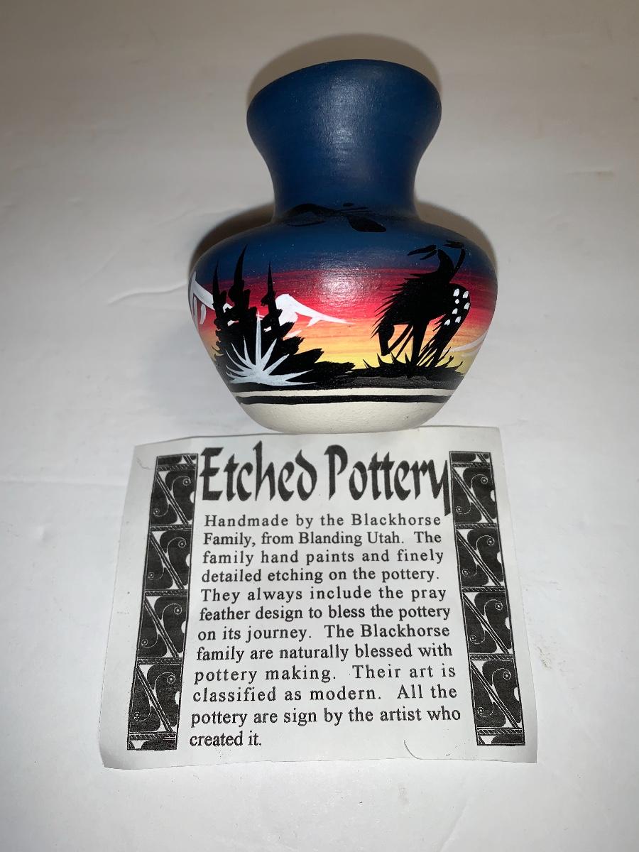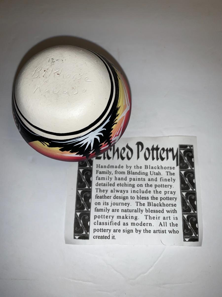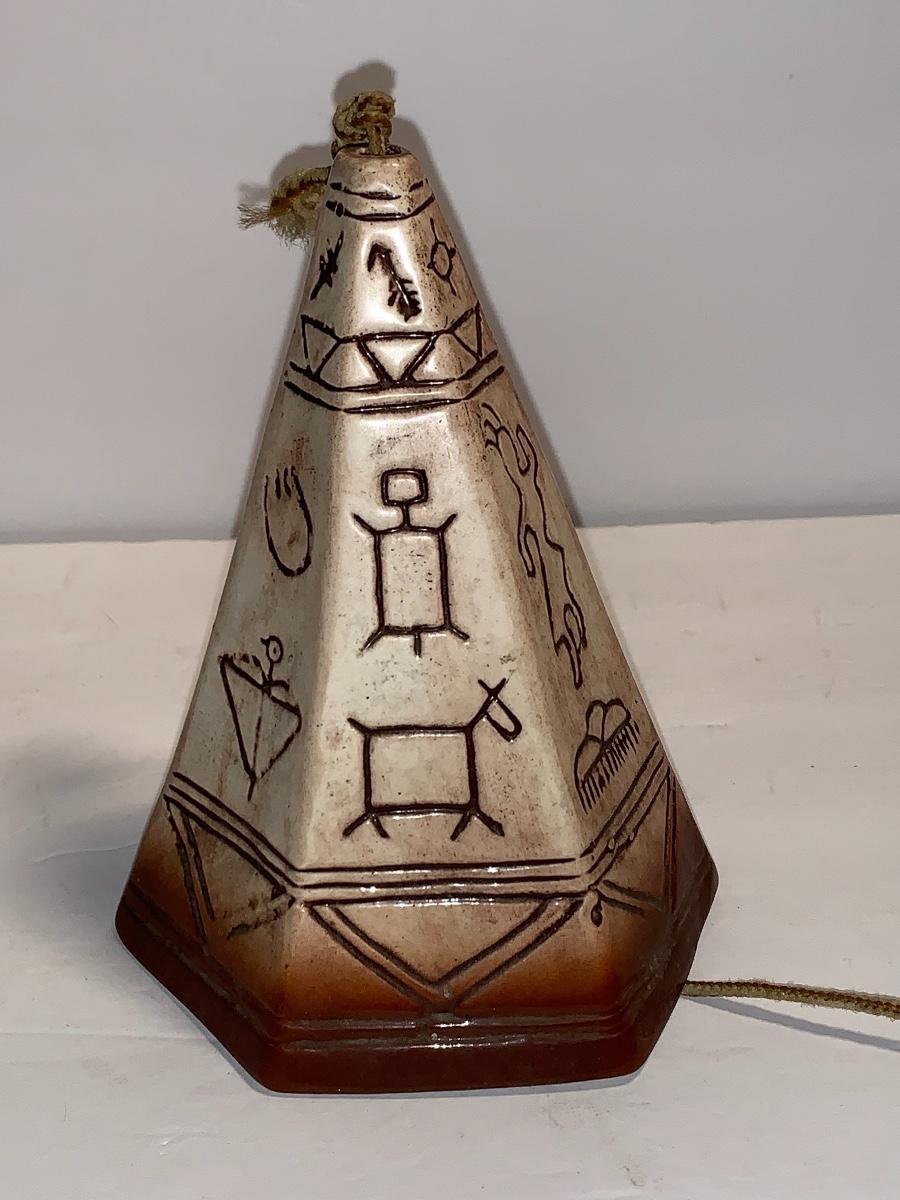 Hexagon Teepee Style Wind-chime, Etched Pottery handmade by the Blackhorse family, Blanding Utah,, signed piece from Cherokee, NC.