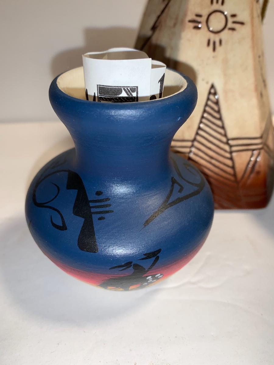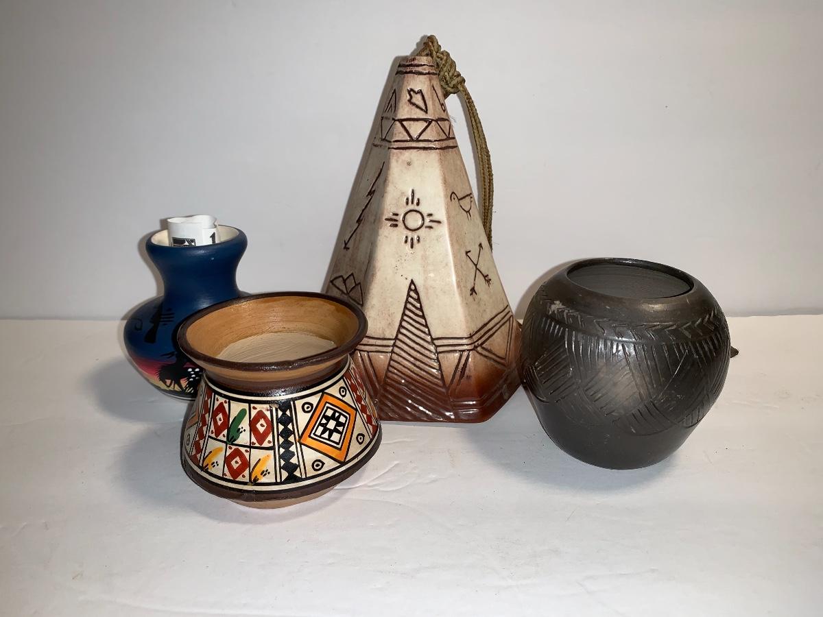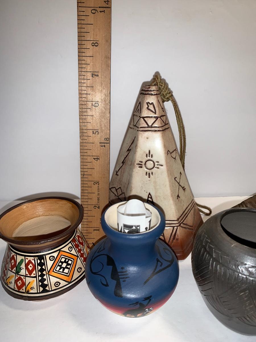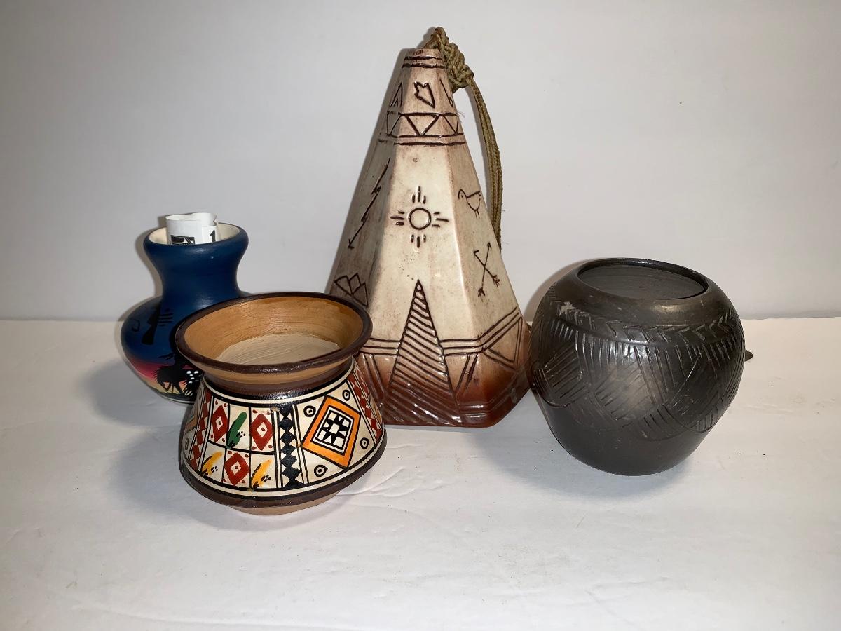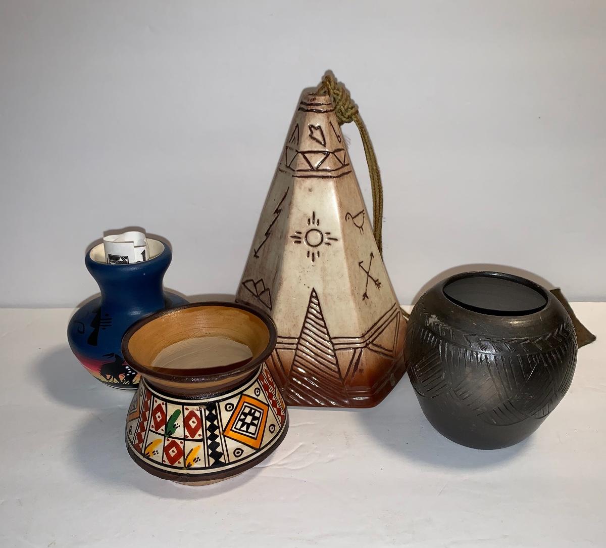 Lot 417B: Signed Southwest Pottery & Wind chime