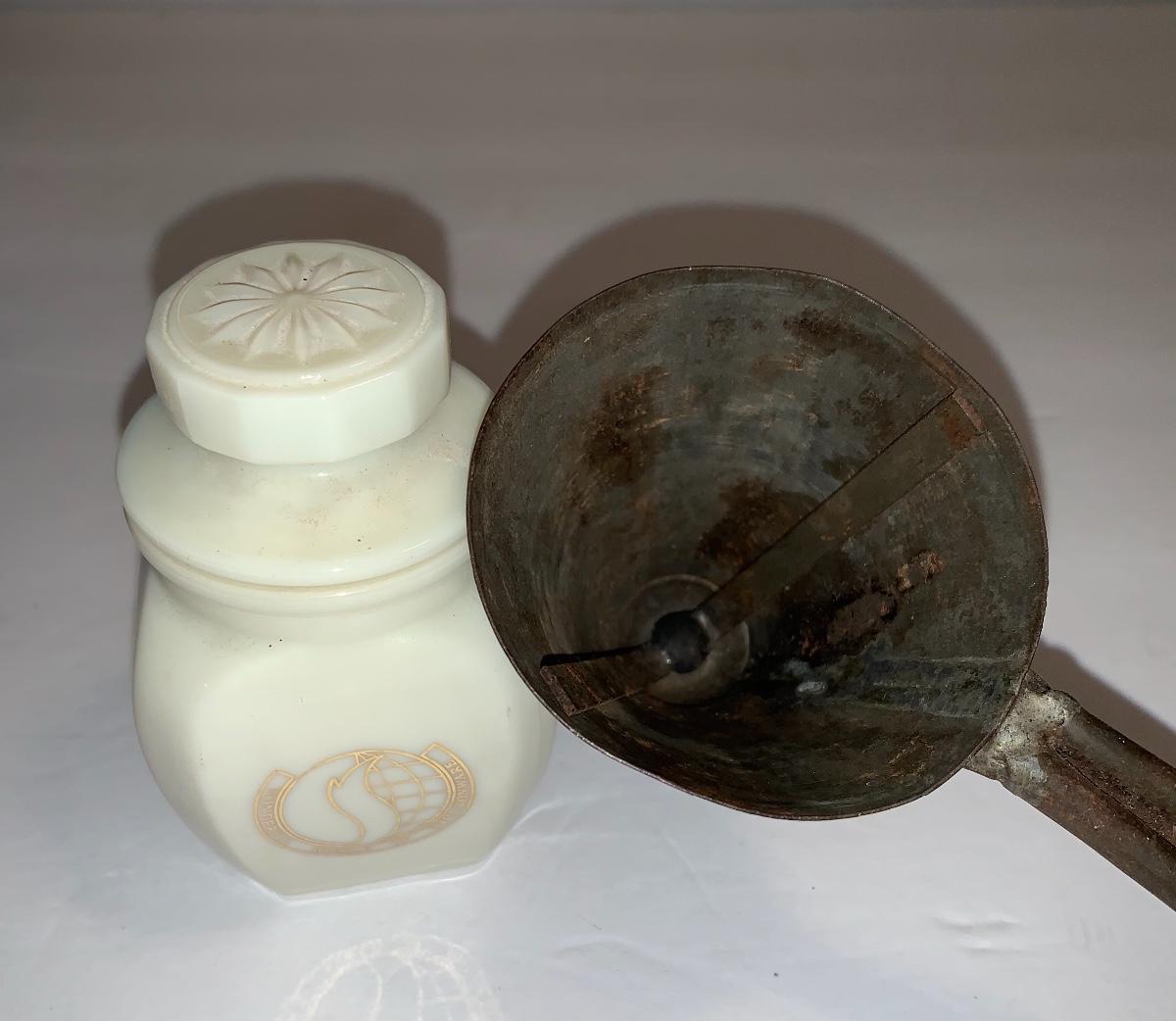 Lot 419: Antique Ice cream Scoop, Vintage Pyrex & Coke a Cola