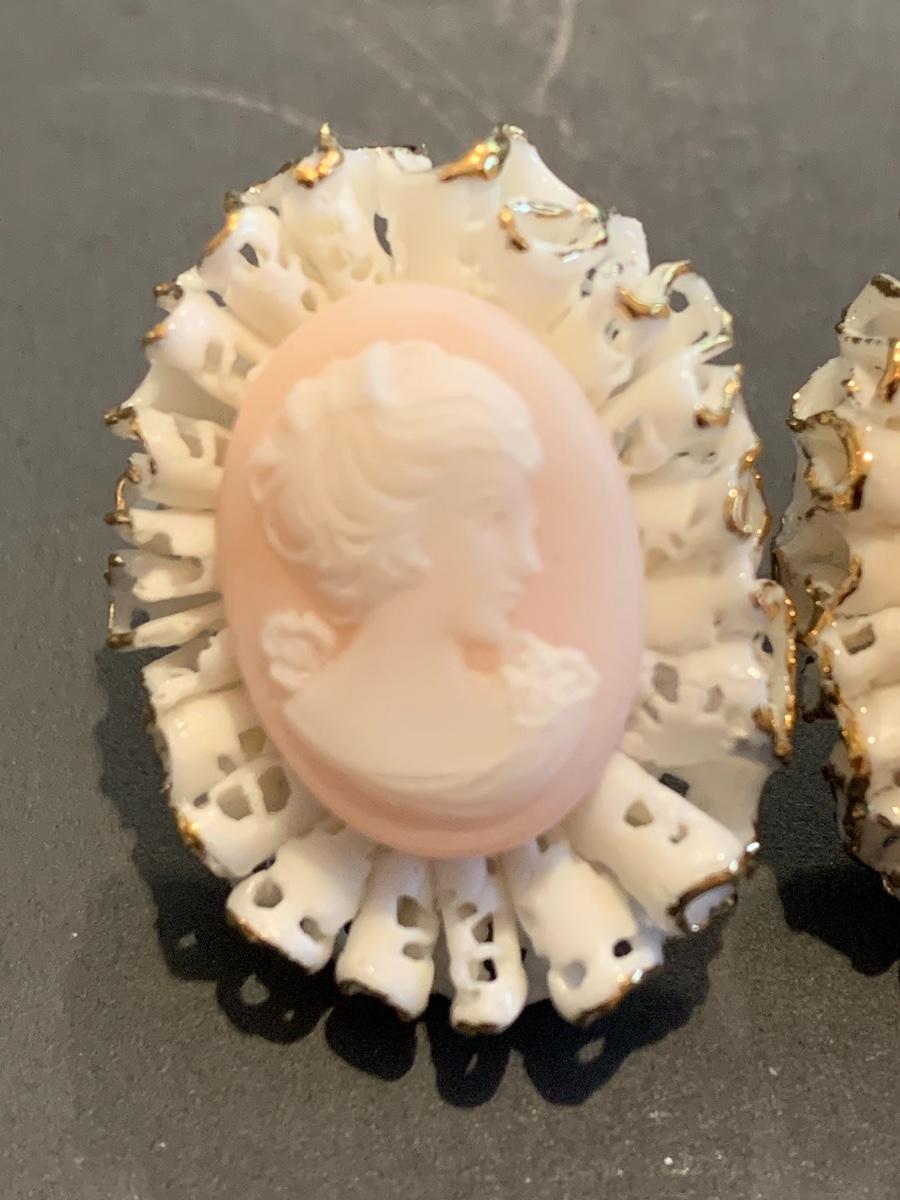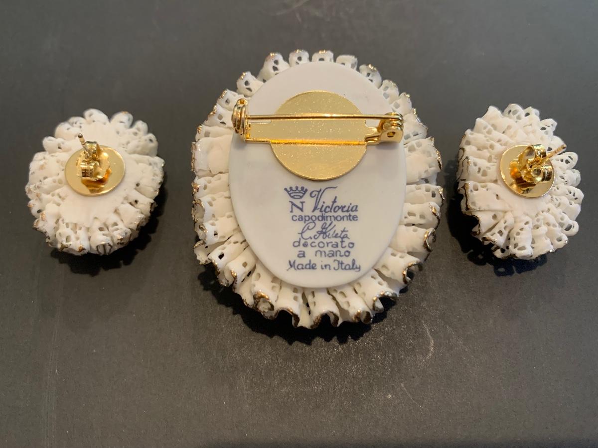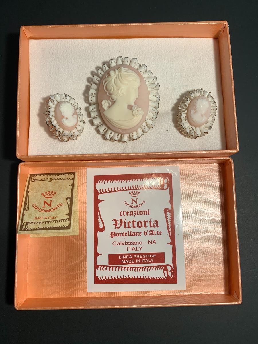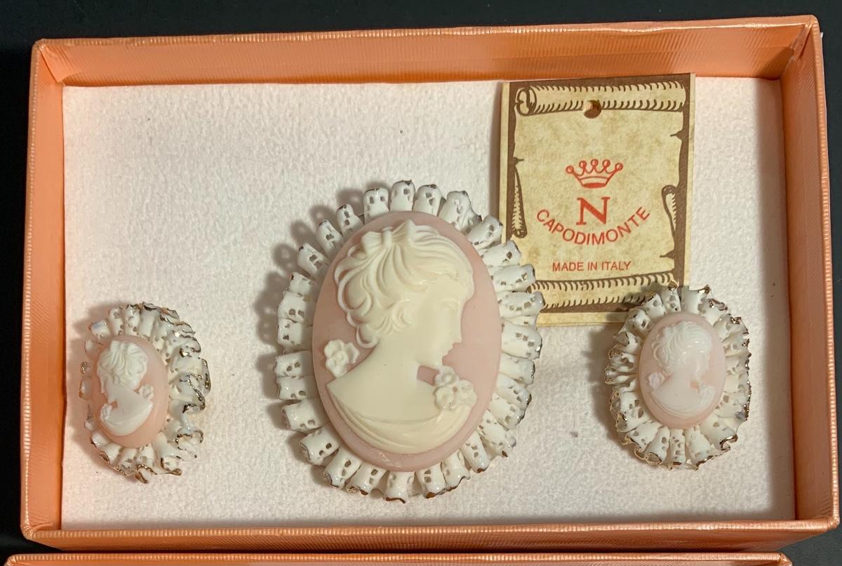 Capodimonte, Made in Italy - Beautiful Cameo Set: Brooch & Pierced Earrings