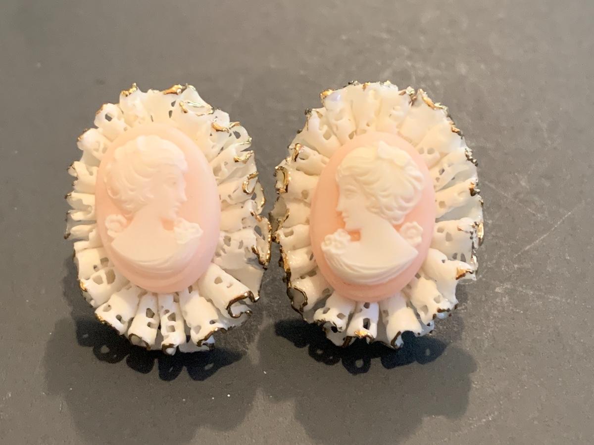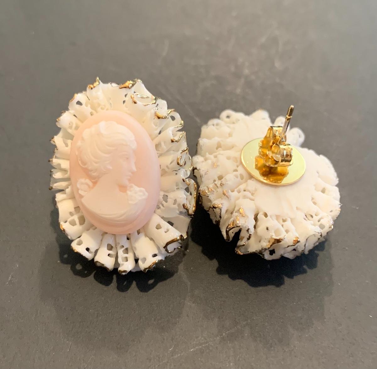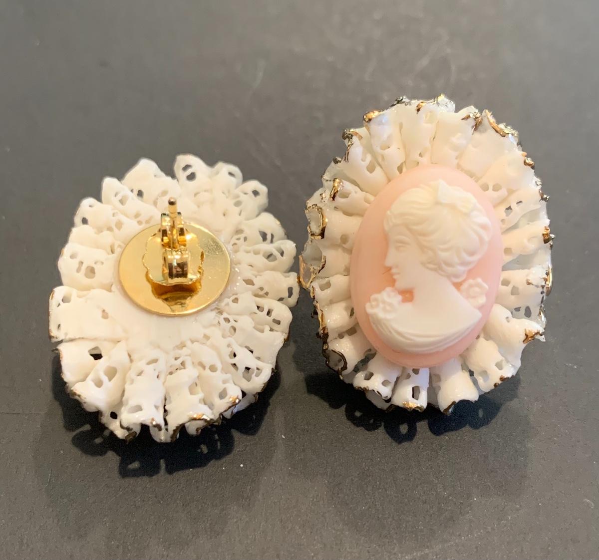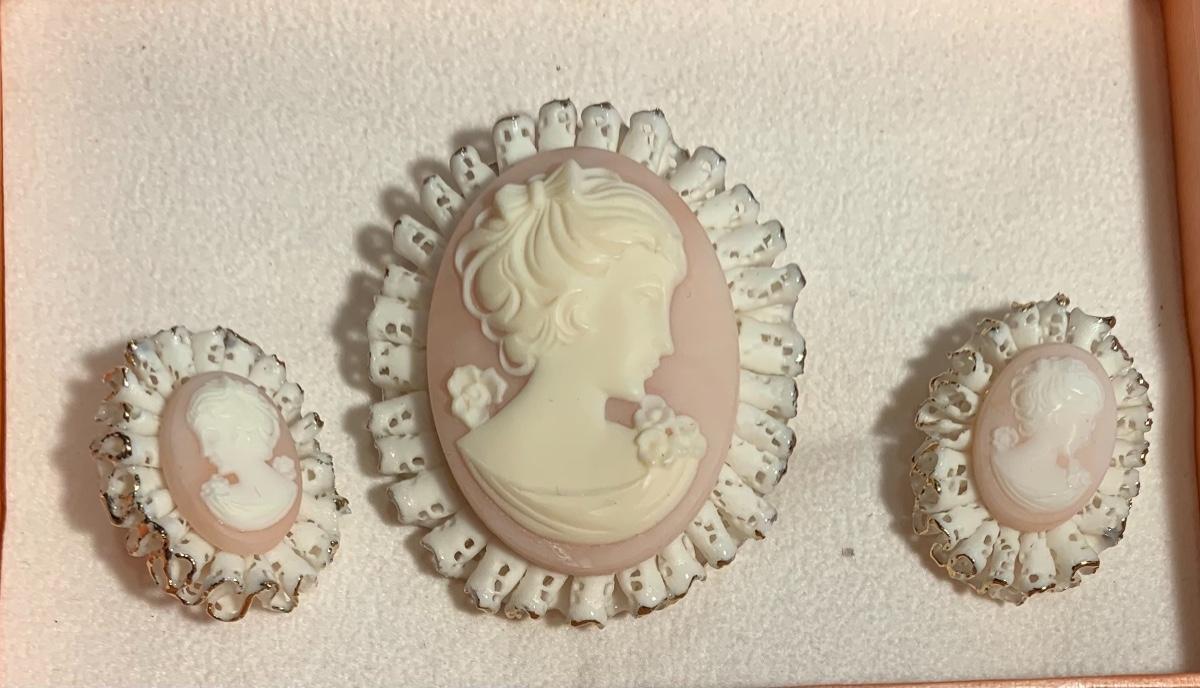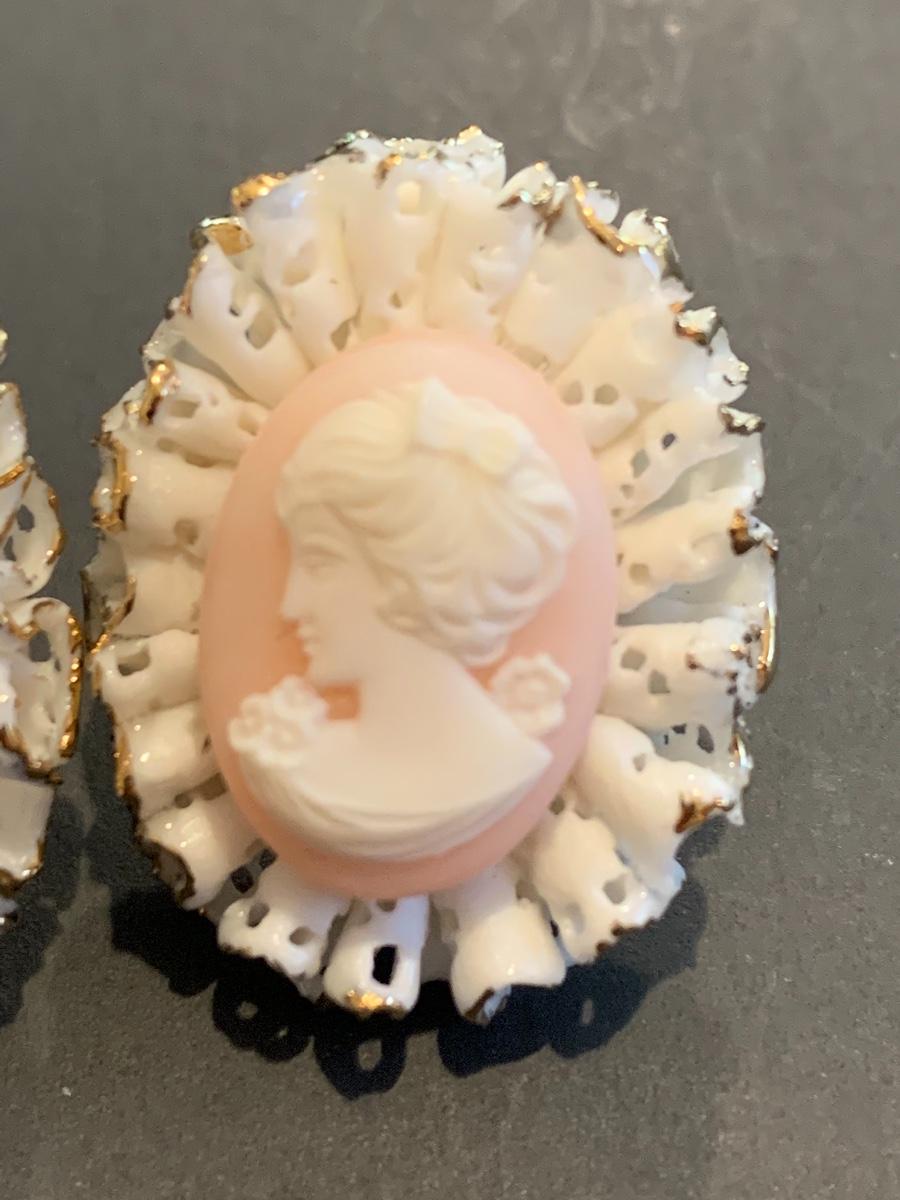 Capodimonte, Made in Italy - Beautiful Cameo Set: Brooch & Pierced Earrings
