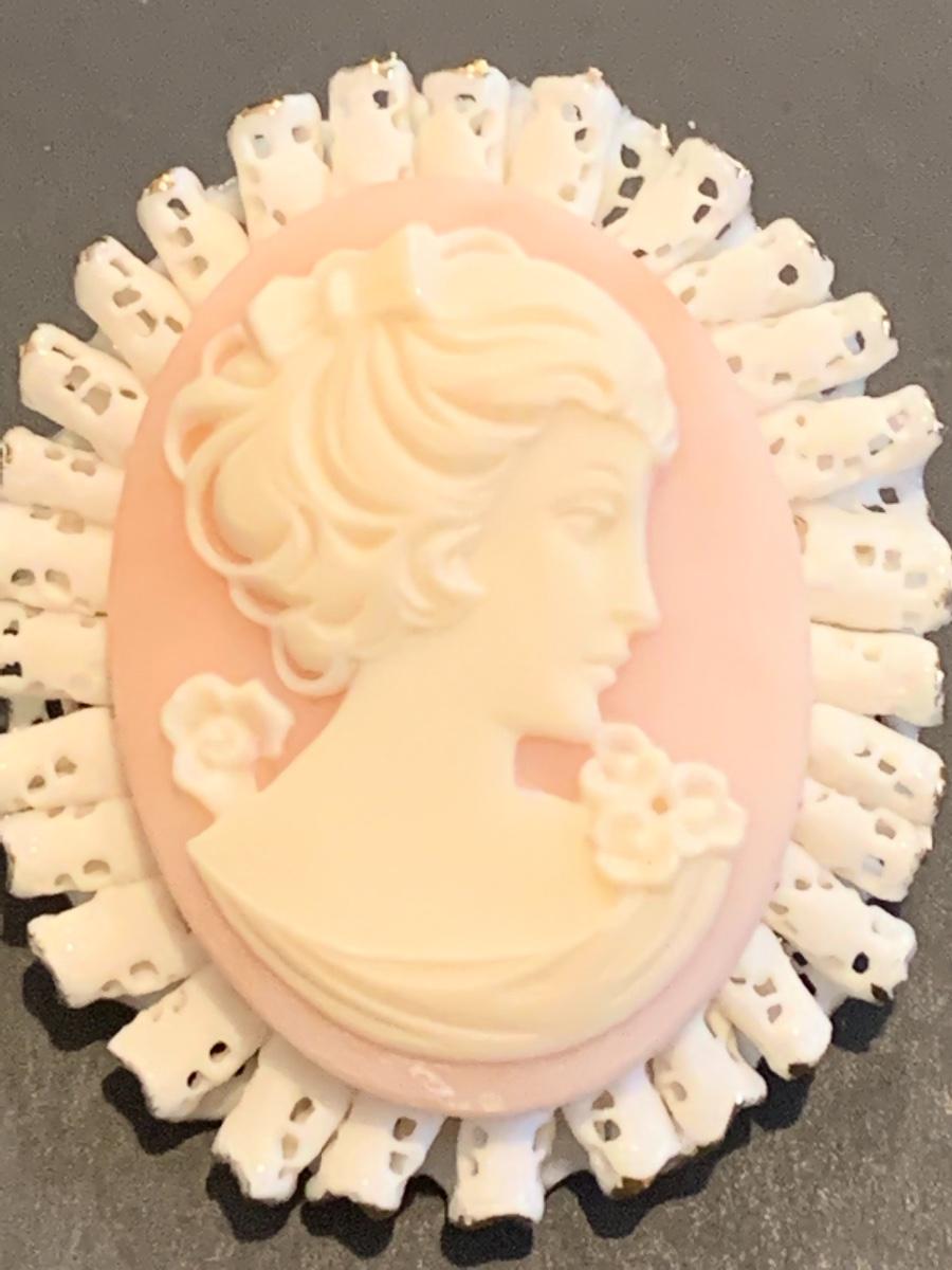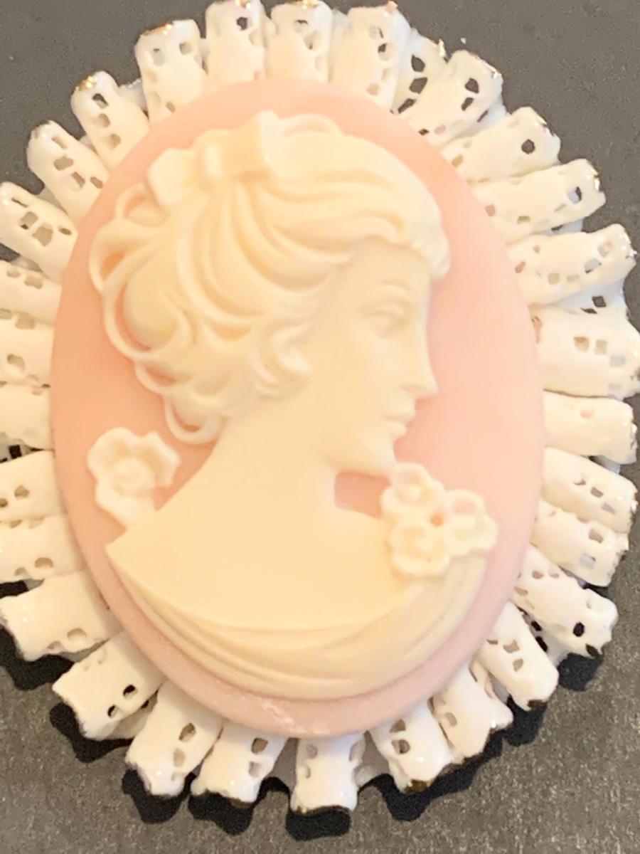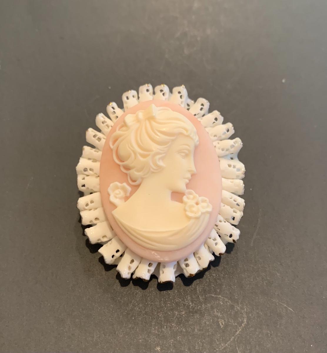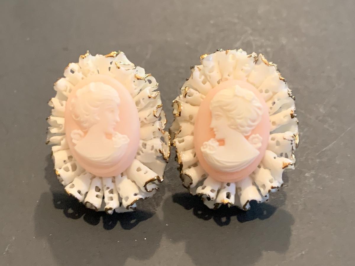 Capodimonte, Made in Italy - Beautiful Cameo Set: Brooch & Pierced Earrings