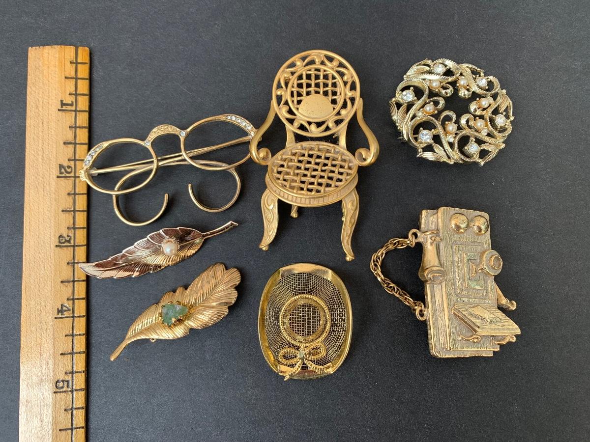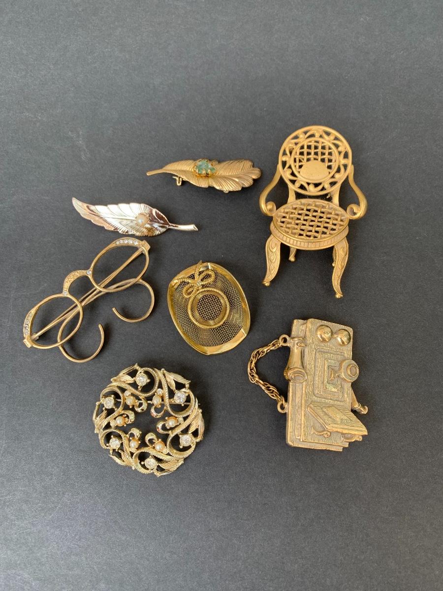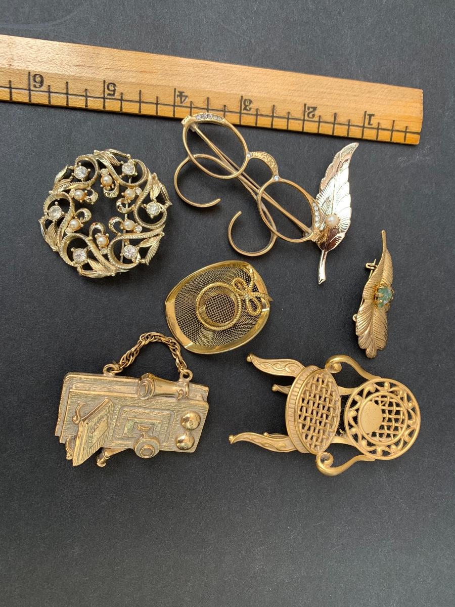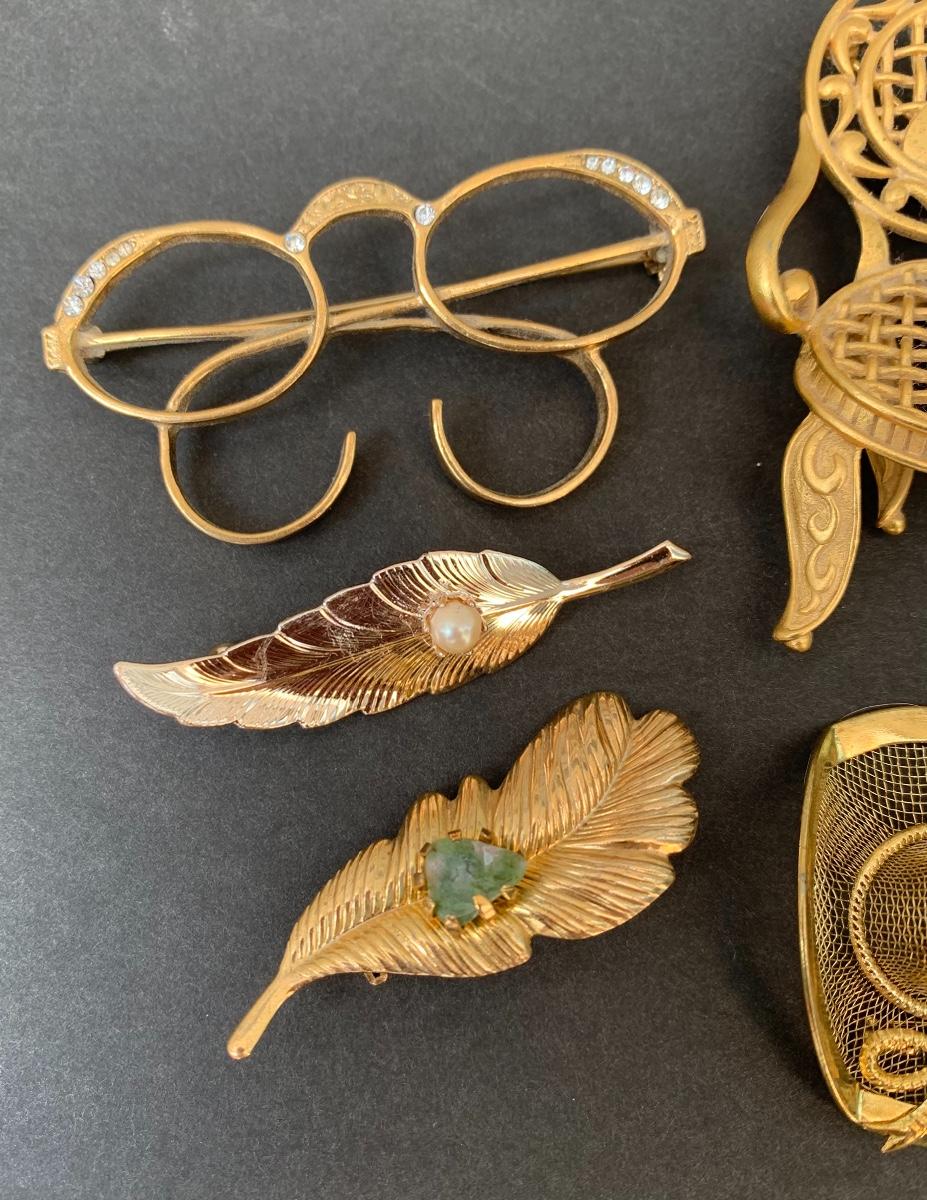 Lot J5: Vintage Gold Tone Brooch/Pins