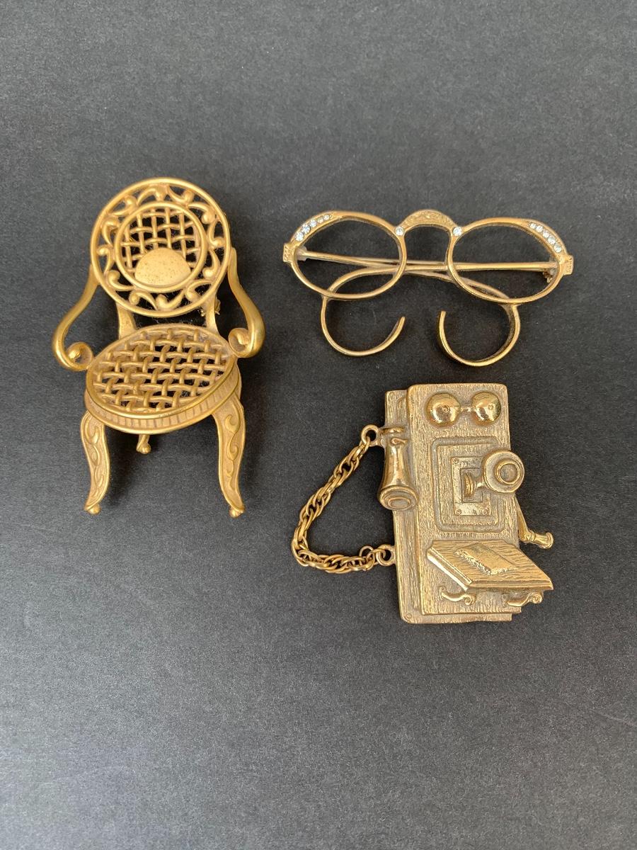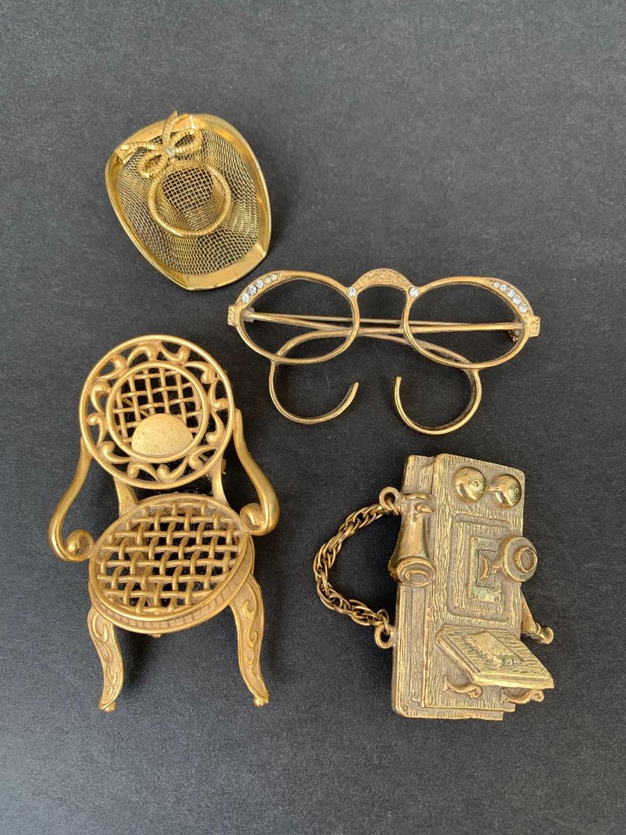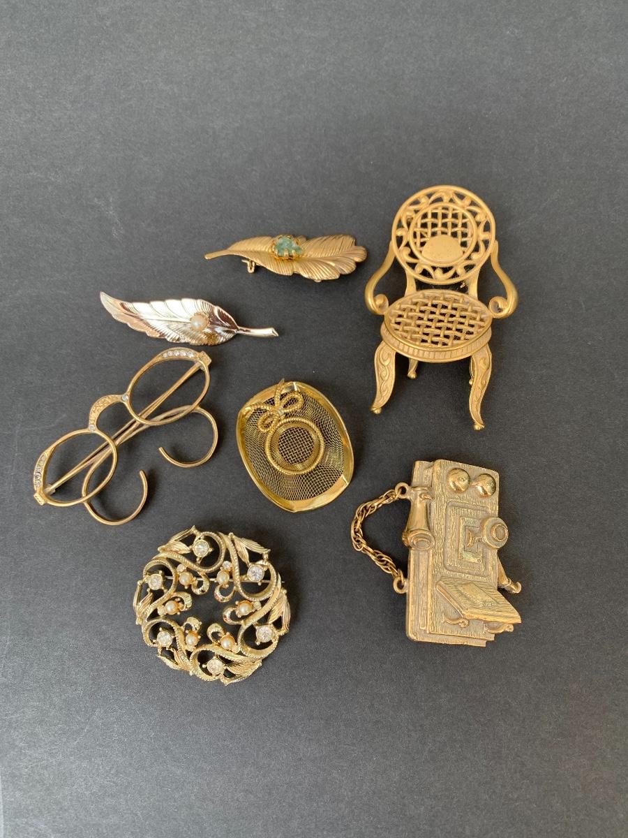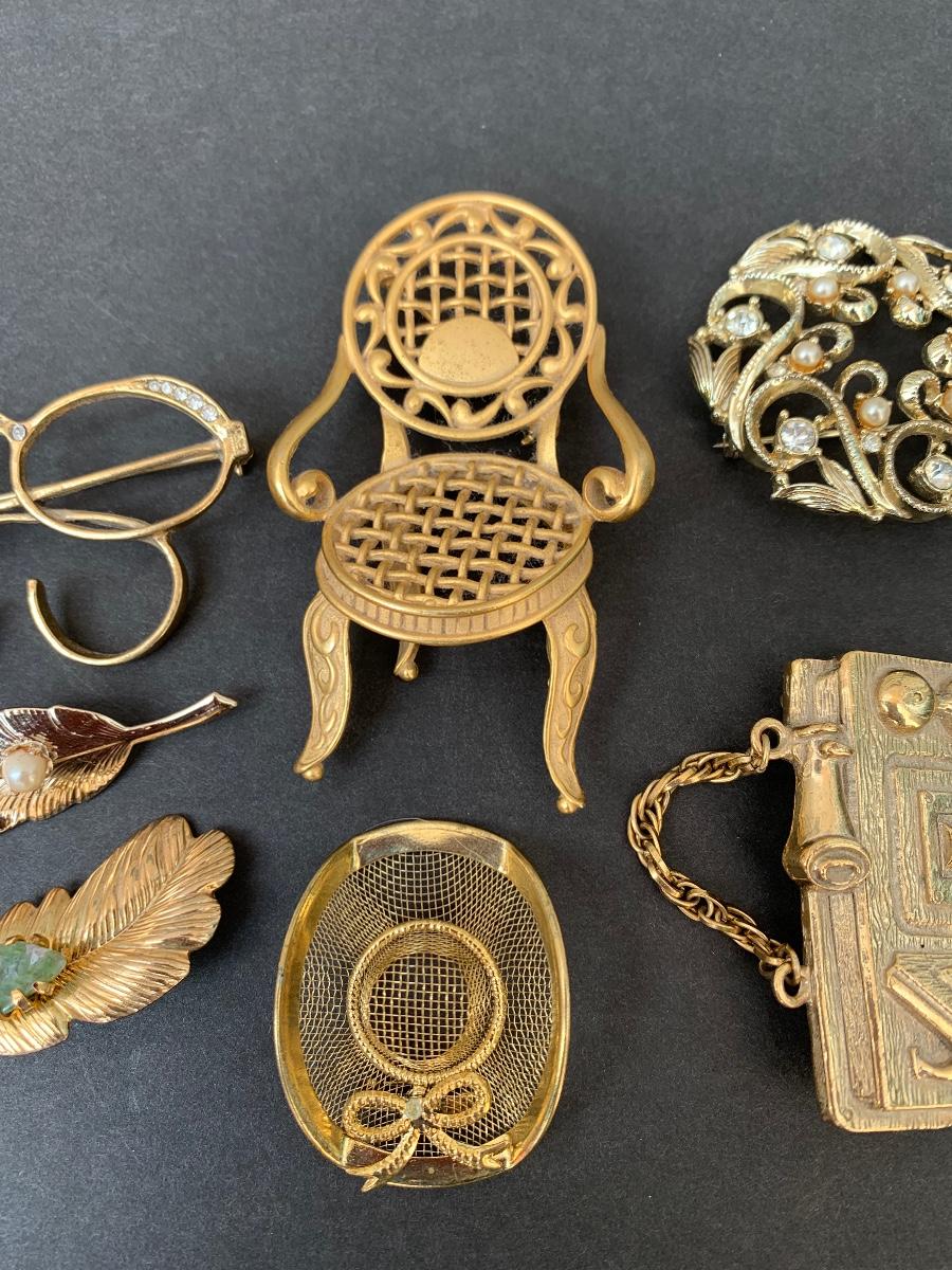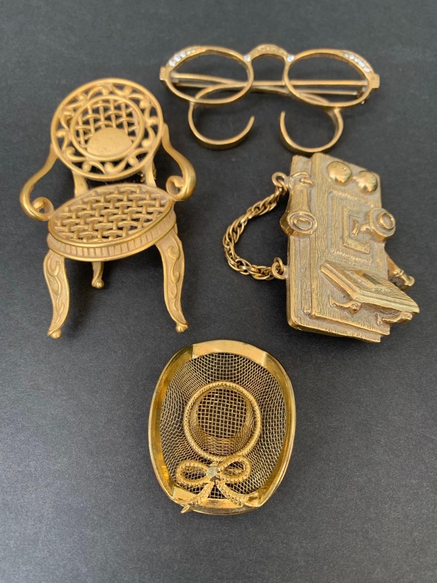Lot J5: Vintage Gold Tone Brooch/Pins