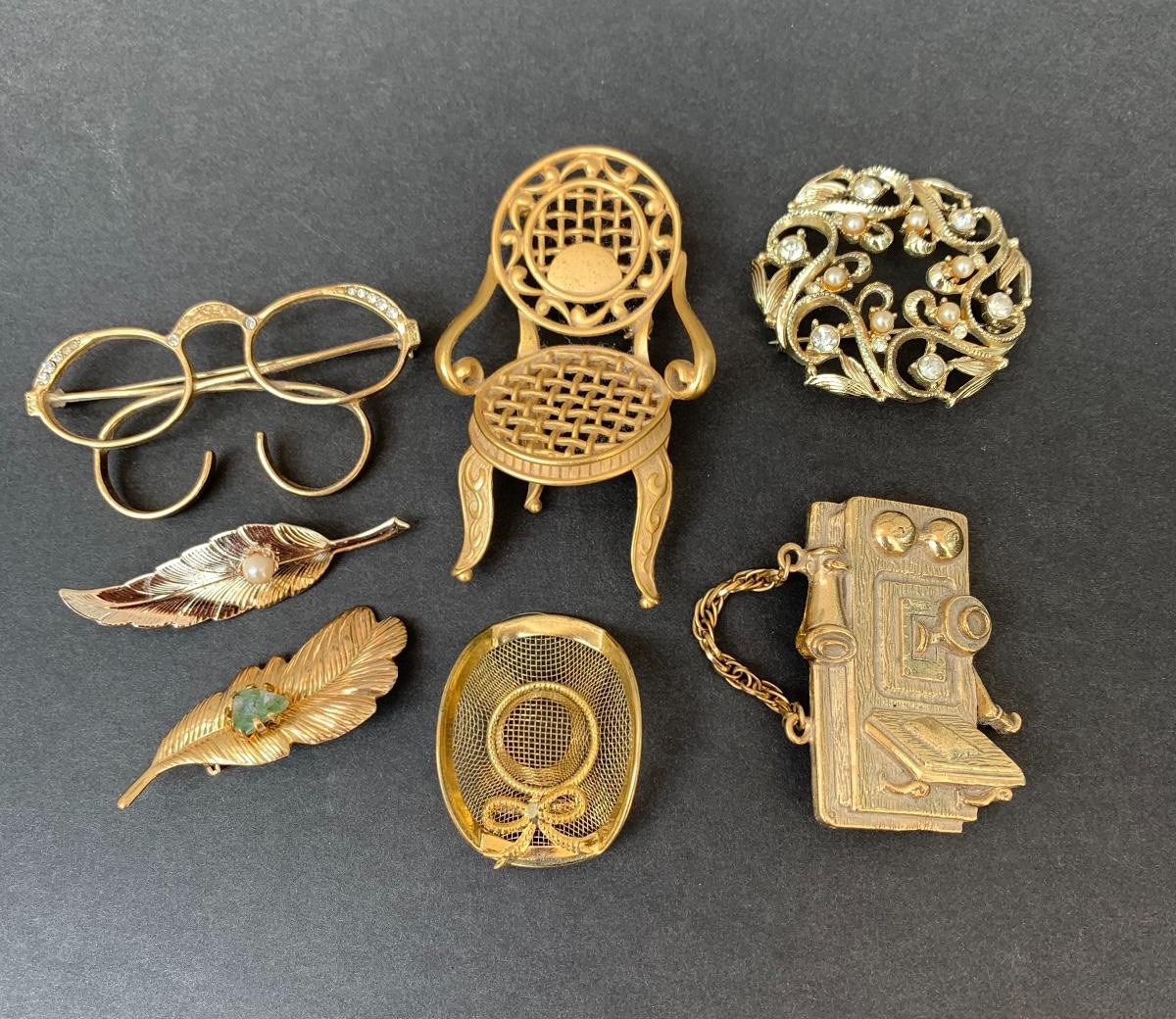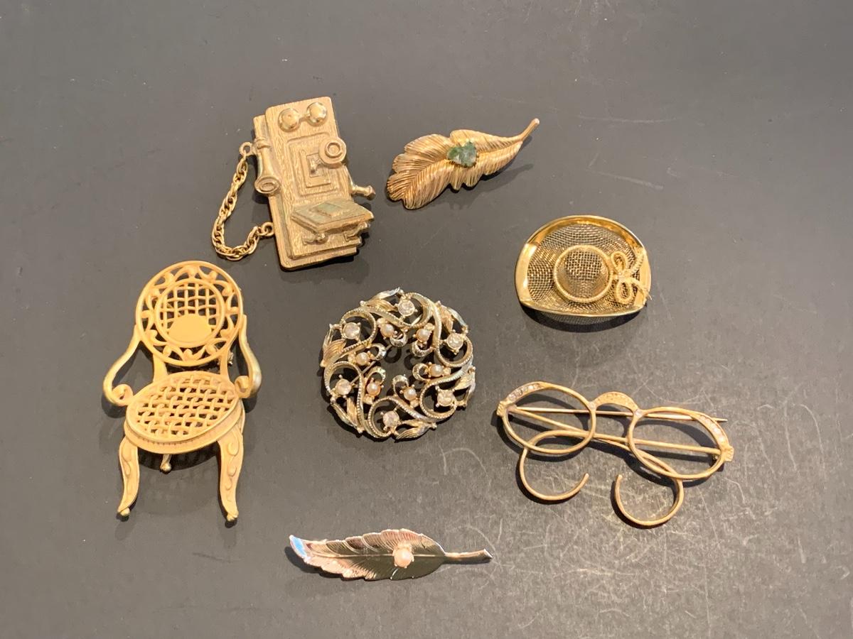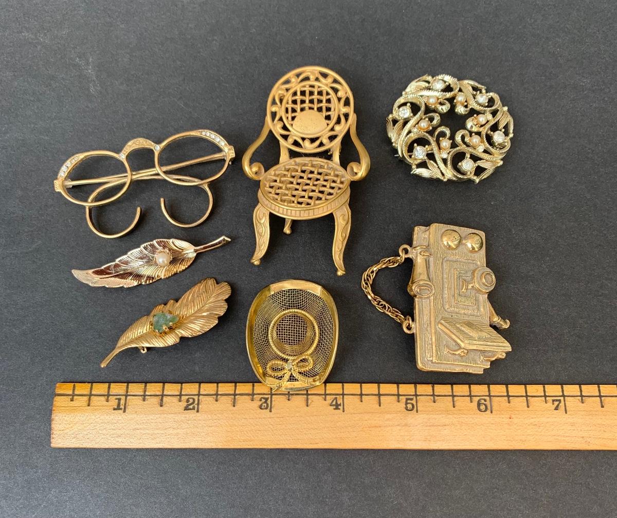Unmarked, gold tone brooches. Vintage to Modern. Please see all pictures as they are the best representation of the items. The pictures show condition, measurements if taken, and what is included in the lot. Due to the large amount that we photograph and the time frame, we are not always able to take measurements. All items unless noted, are pre-owned and have been used. If you purchased furniture, you must bring help. We do not allow one person to carry large furniture out on their own. Bring help, tools and a truck for the safety of our client’s homes, and your personal safety. Company policy. Thank you.