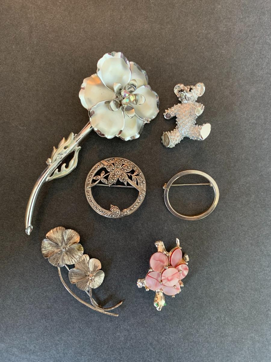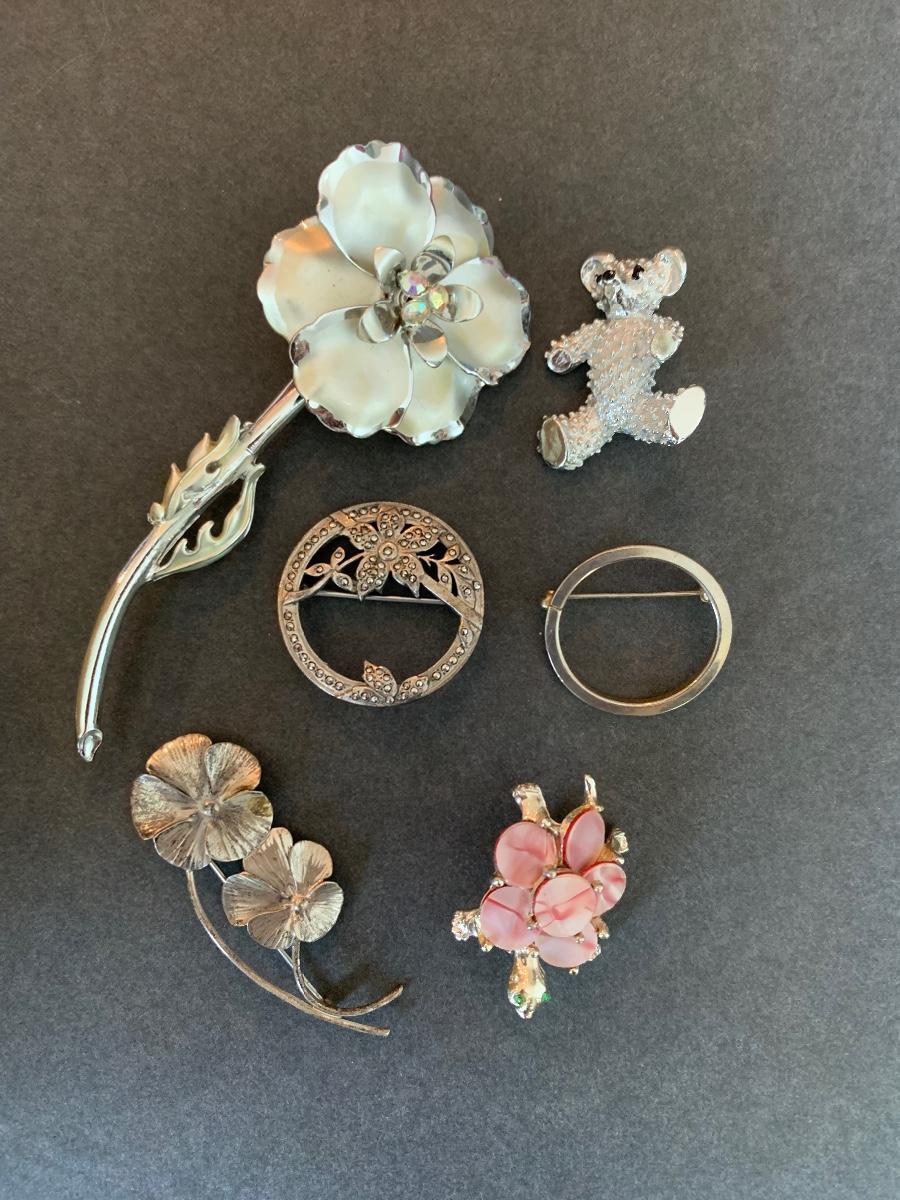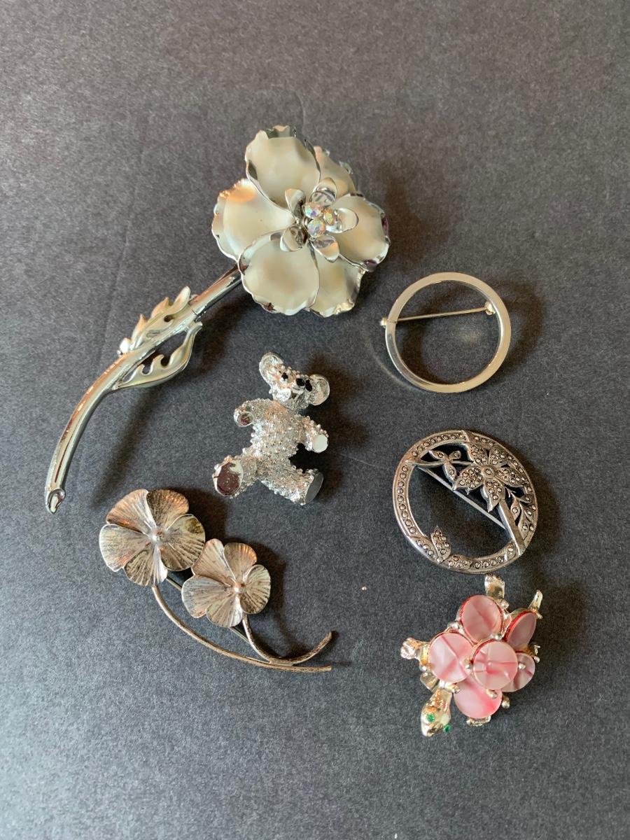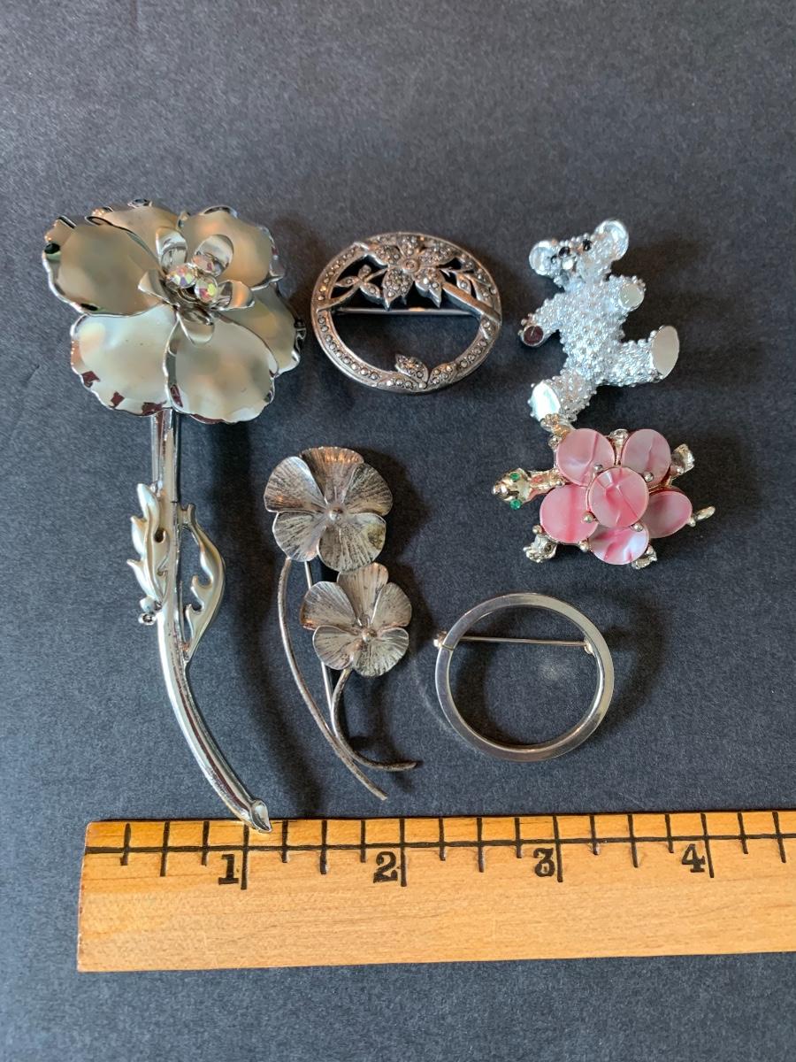 Lot J9: Vintage to Modern Floral Brooches & More