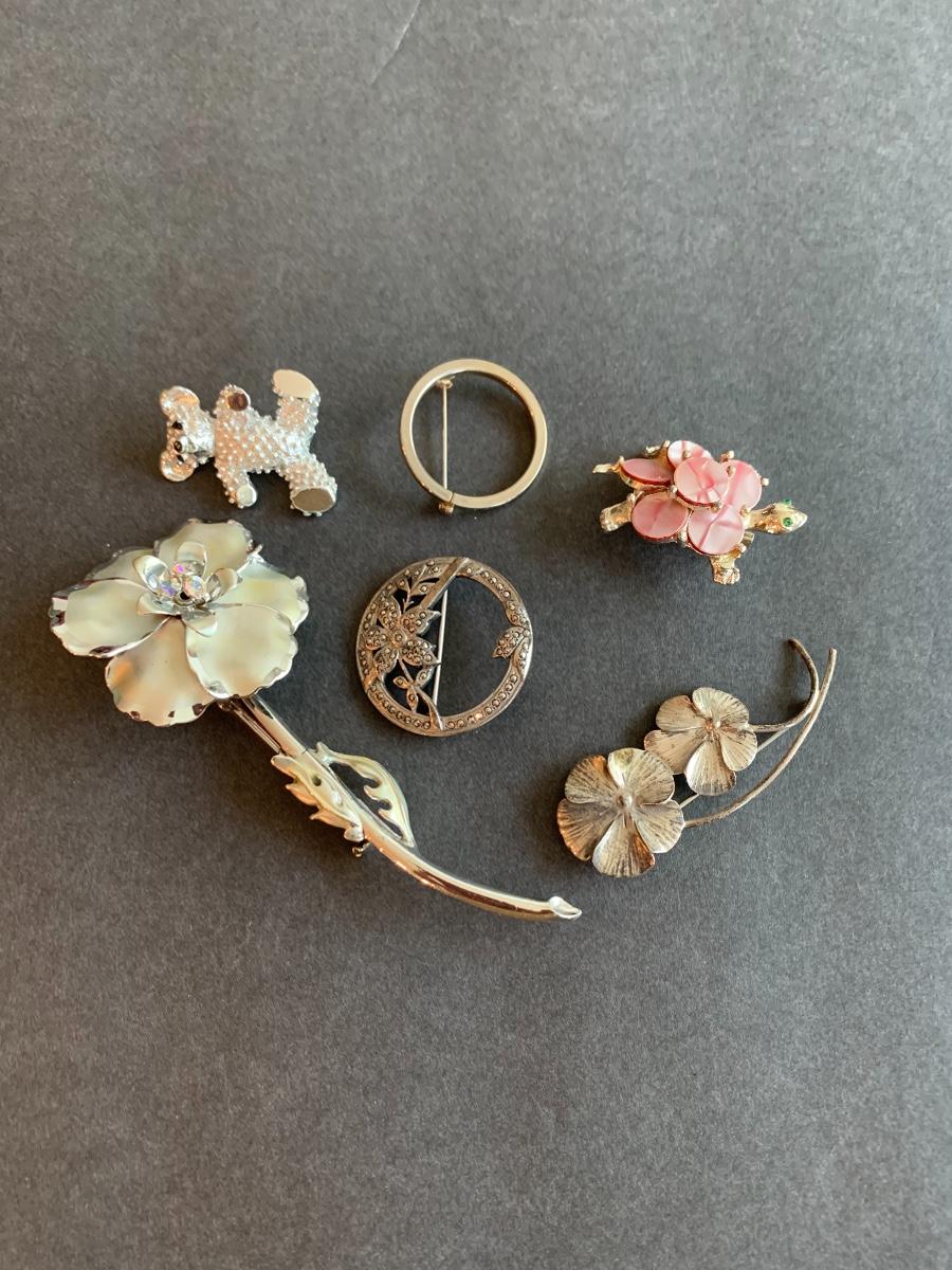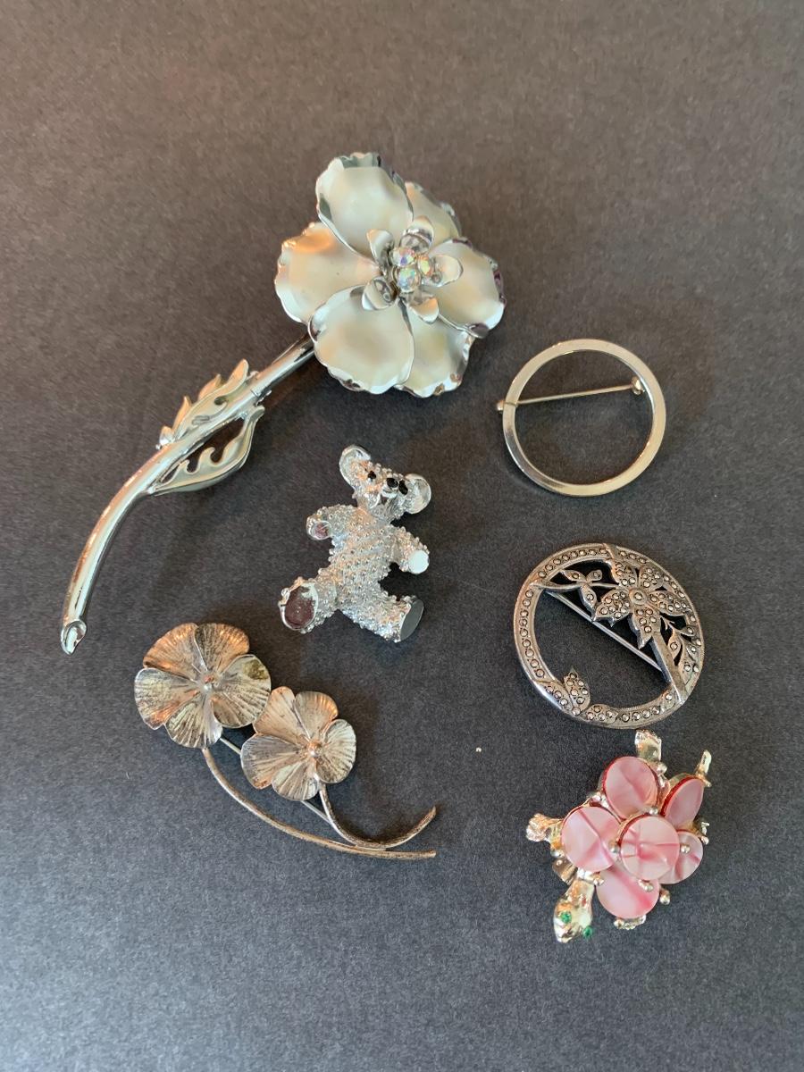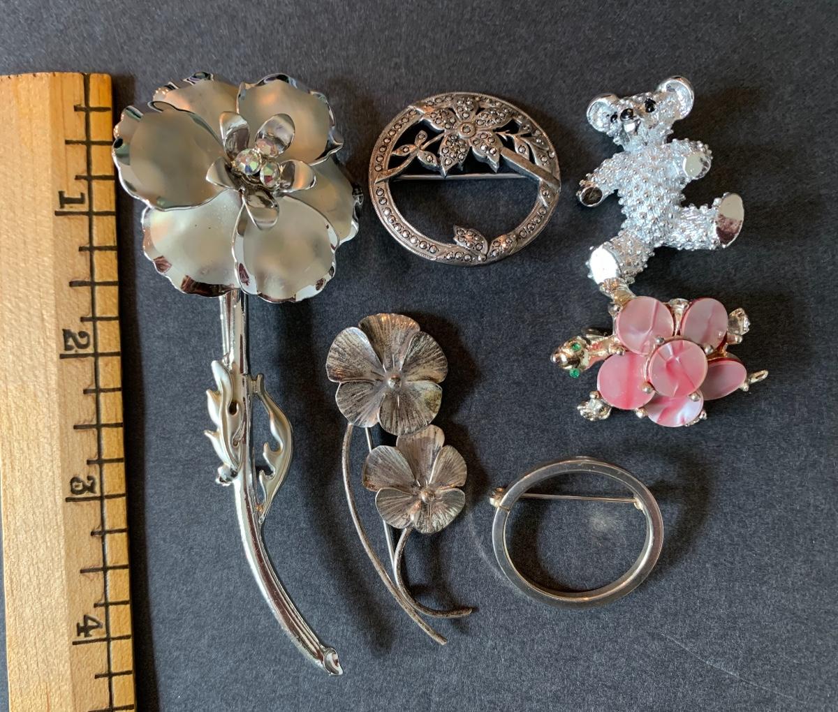 Lot J9: Vintage to Modern Floral Brooches & More