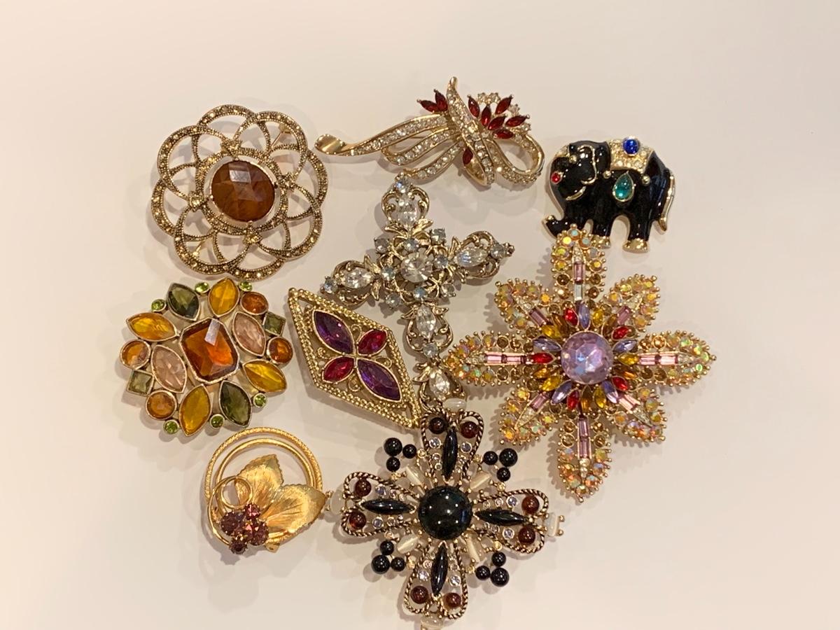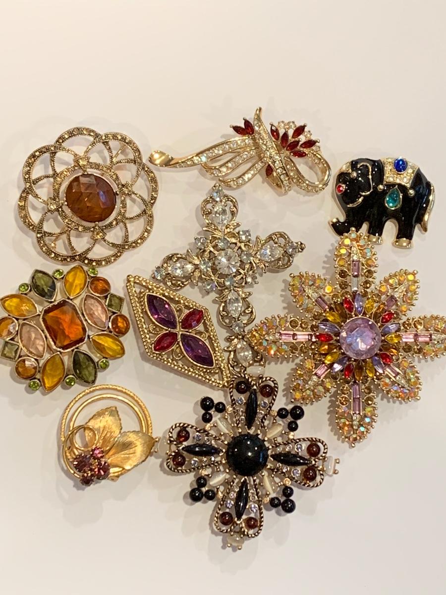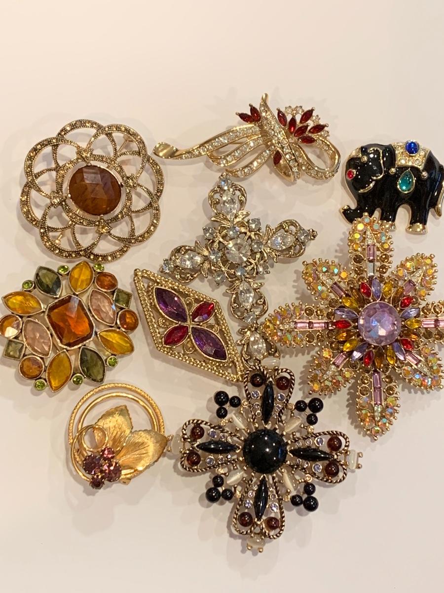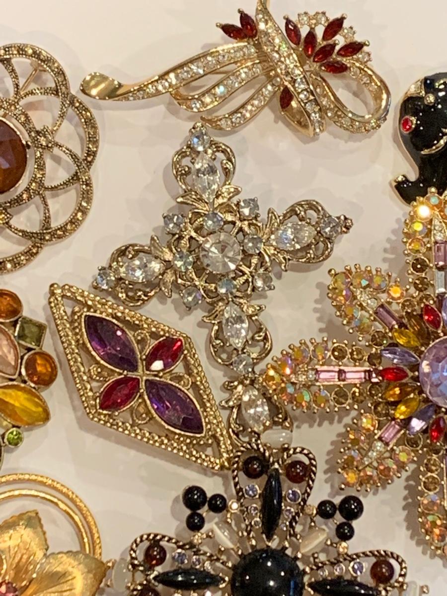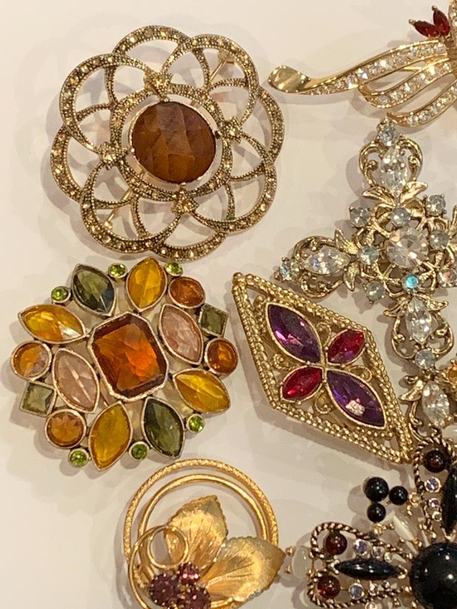 Beautiful jeweled brooches. No missing stones. Great condition. wearable-unmarked