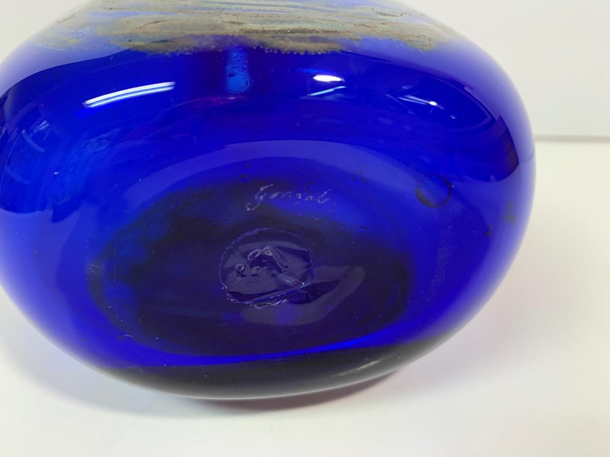Beautiful piece of work by Don Gonzalez, an artist from Stockton, NJ. This pieces is signed on the bottom and is a deep Cobalt color with front embellishment. Gorgeous! Please see all pictures as they are the best representation of the items. The pictures show condition, measurements if taken, and what is included in the lot. Due to the large amount that we photograph and the time frame, we are not always able to take measurements. All items unless noted, are pre-owned and have been used. If you purchased furniture, you must bring help. We do not allow one person to carry large furniture out on their own. Bring help, tools and a truck for the safety of our client’s homes, and your personal safety. Company policy. Thank you.