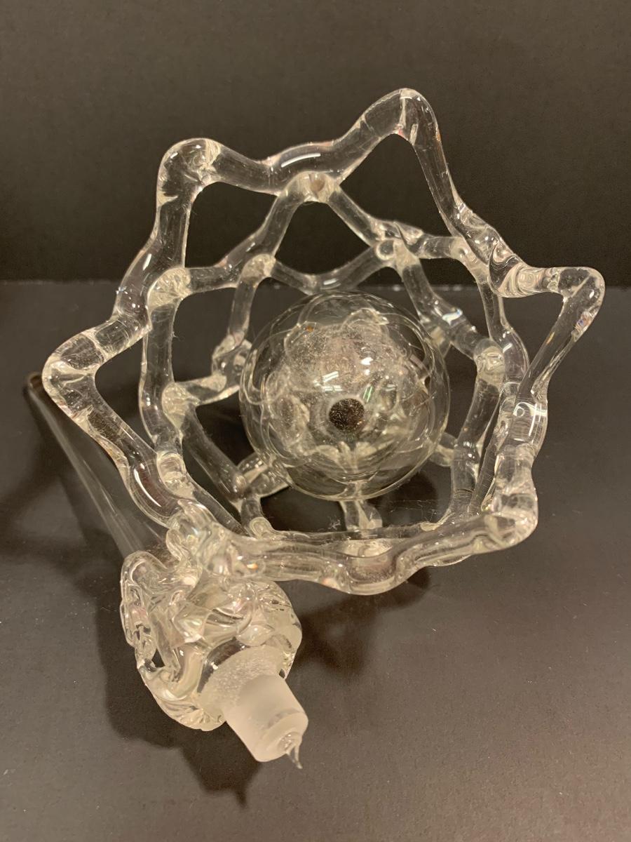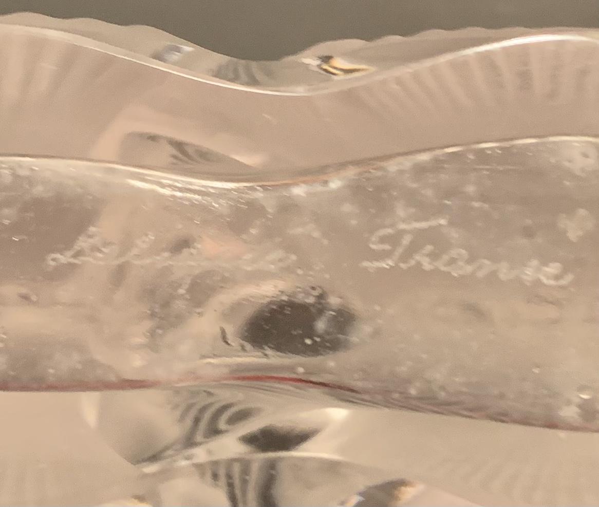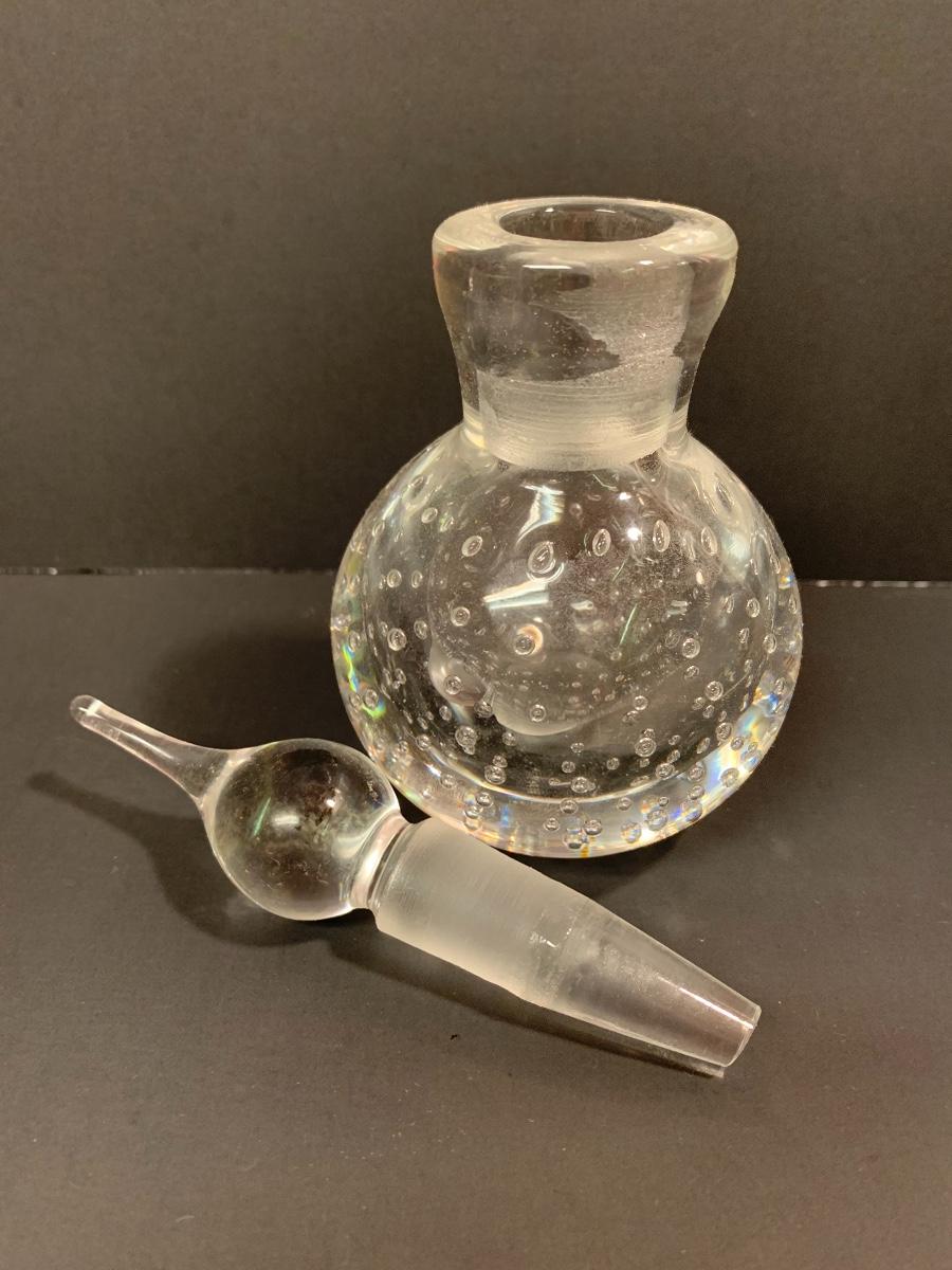Lovely double flower Lalique crystal perfume bottle. This does include the stopper and the only noted imperfection is that there are small nicks around the glass lip of the bottle. Also included is a thick-walled bubbled, perfume bottle with glass stopper, and an intricate perfume bottle with lace work around the exterior with a round hanging bulbous bottle on the interior with long glass stopper. These are like works of art and perfect to add to your collection. Please see all pictures as they are the best representation of the items. The pictures show condition, measurements if taken, and what is included in the lot. Due to the large amount that we photograph and the time frame, we are not always able to take measurements. All items unless noted, are pre-owned and have been used. If you purchased furniture, you must bring help. We do not allow one person to carry large furniture out on their own. Bring help, tools and a truck for the safety of our client’s homes, and your personal safety. Company policy. Thank you.