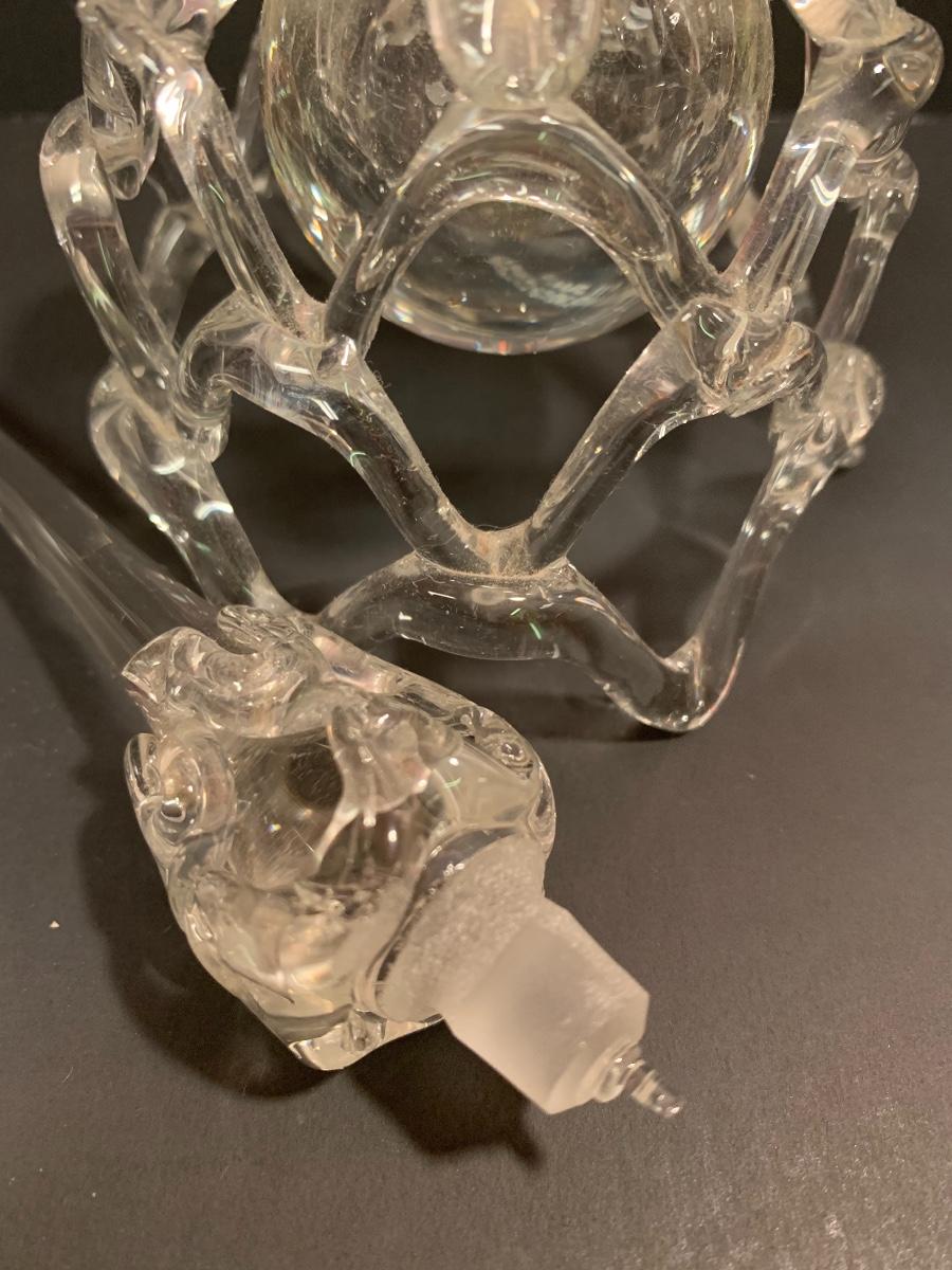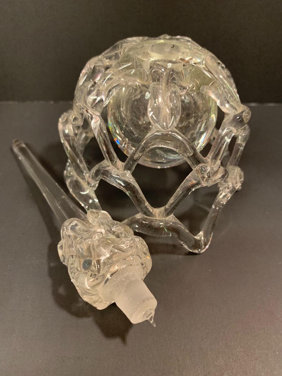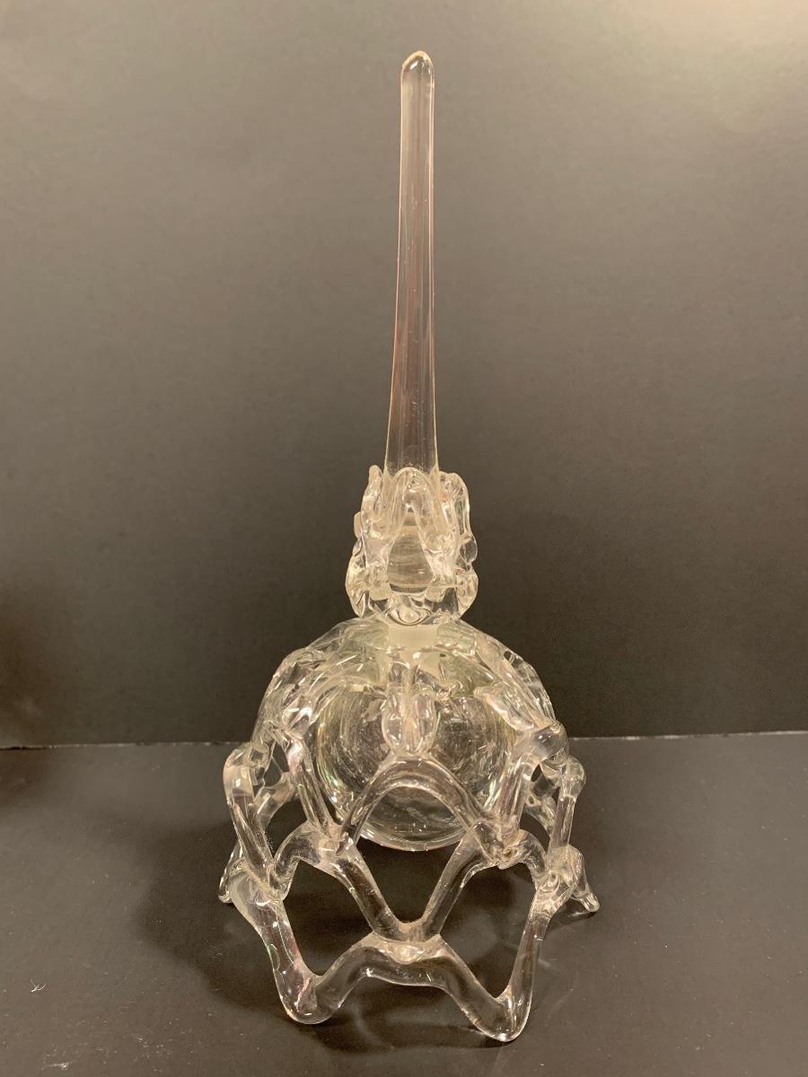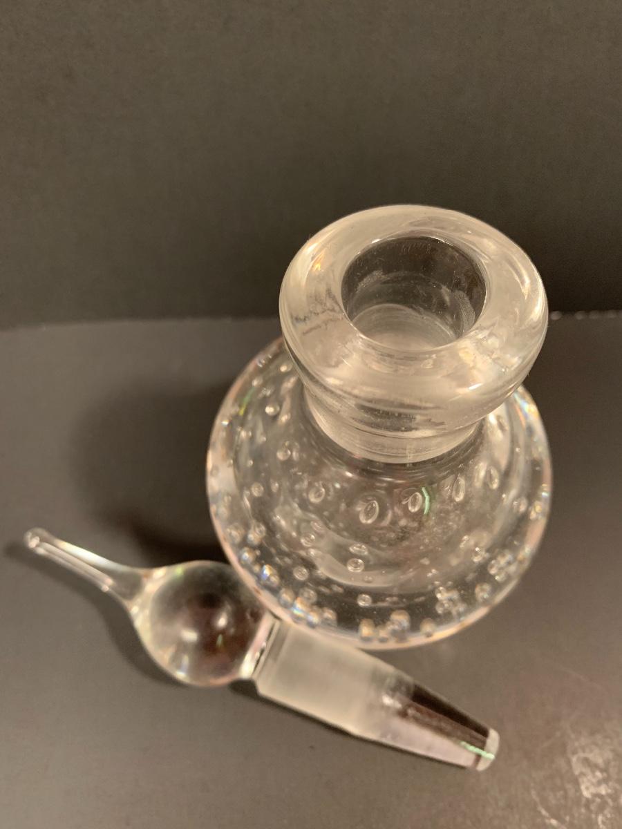 Lovely double flower Lalique crystal perfume bottle. This does include the stopper and the only noted imperfection is that there are small nicks around the glass lip of the bottle. Also included is a thick-walled bubbled, perfume bottle with glass stopper, and an intricate perfume bottle with lace work around the exterior with a round hanging bulbous bottle on the interior with long glass stopper. These are like works of art and perfect to add to your collection. Please see all pictures as they are the best representation of the items. The pictures show condition, measurements if taken, and what is included in the lot. Due to the large amount that we photograph and the time frame, we are not always able to take measurements. All items unless noted, are pre-owned and have been used. If you purchased furniture, you must bring help. We do not allow one person to carry large furniture out on their own. Bring help, tools and a truck for the safety of our client’s homes, and your personal safety. Company policy. Thank you.