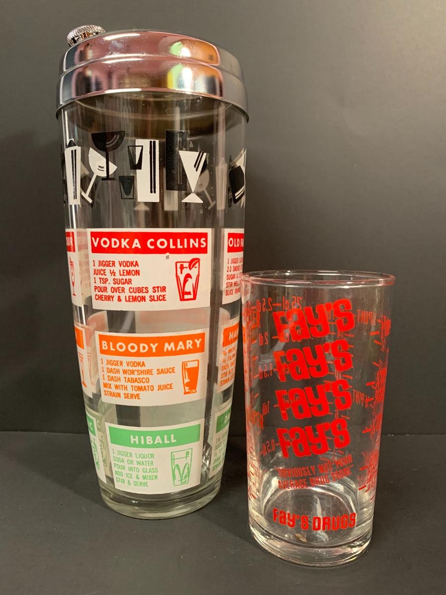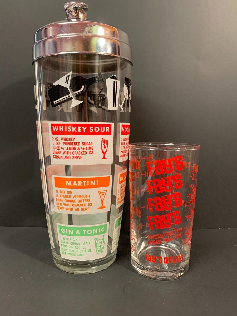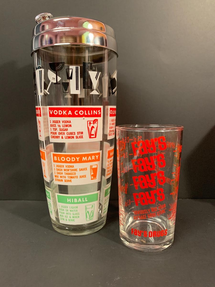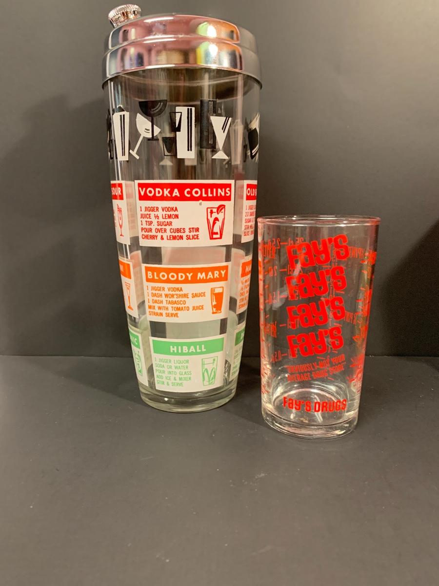 Vintage drink shaker and an advertising measuring glass. A Pyrex refrigerator dish (no lid) ,small Pyrex floral bowl along with vintage juice glasses. Please see all pictures as they are the best representation of the items. The pictures show condition, measurements if taken, and what is included in the lot. Due to the large amount that we photograph and the time frame, we are not always able to take measurements. All items unless noted, are pre-owned and have been used. If you purchased furniture, you must bring help. We do not allow one person to carry large furniture out on their own. Bring help, tools and a truck for the safety of our client’s homes, and your personal safety. Company policy. Thank you.