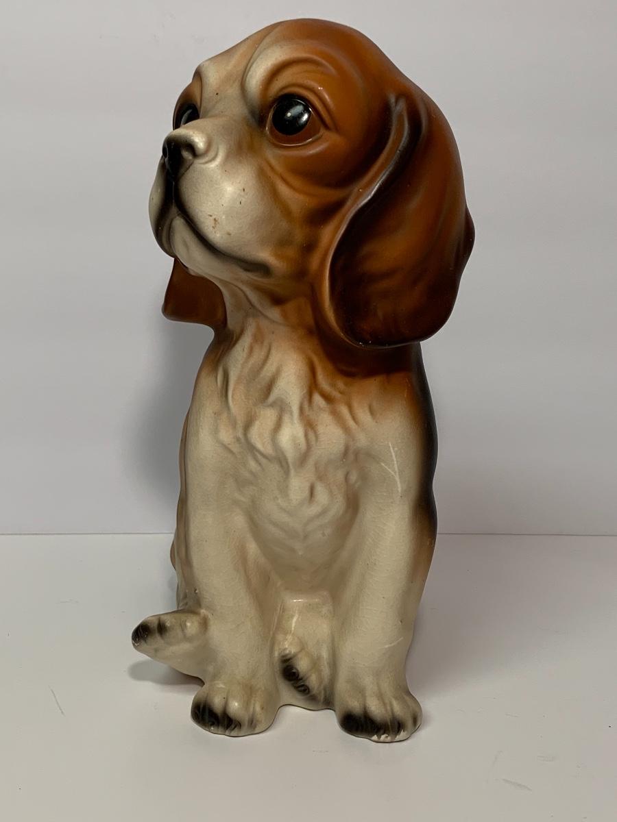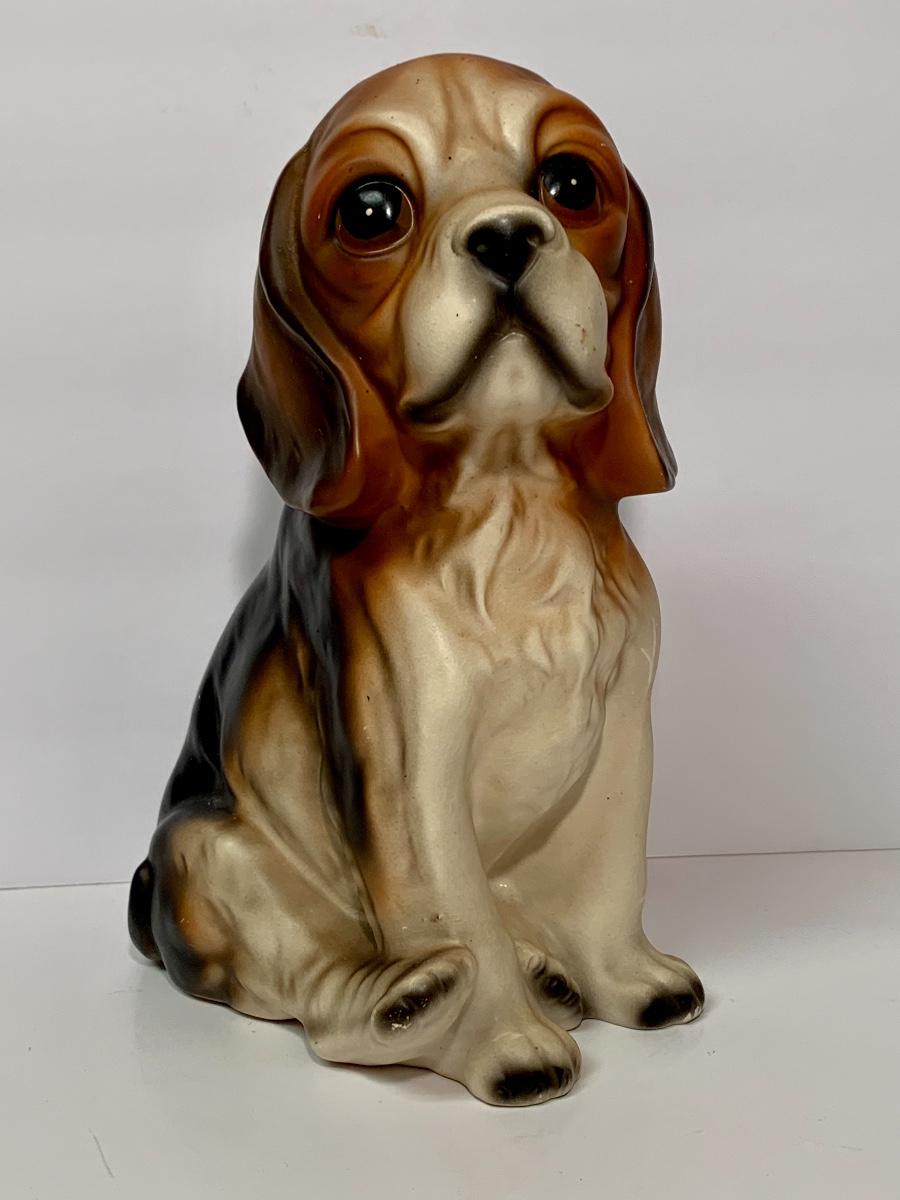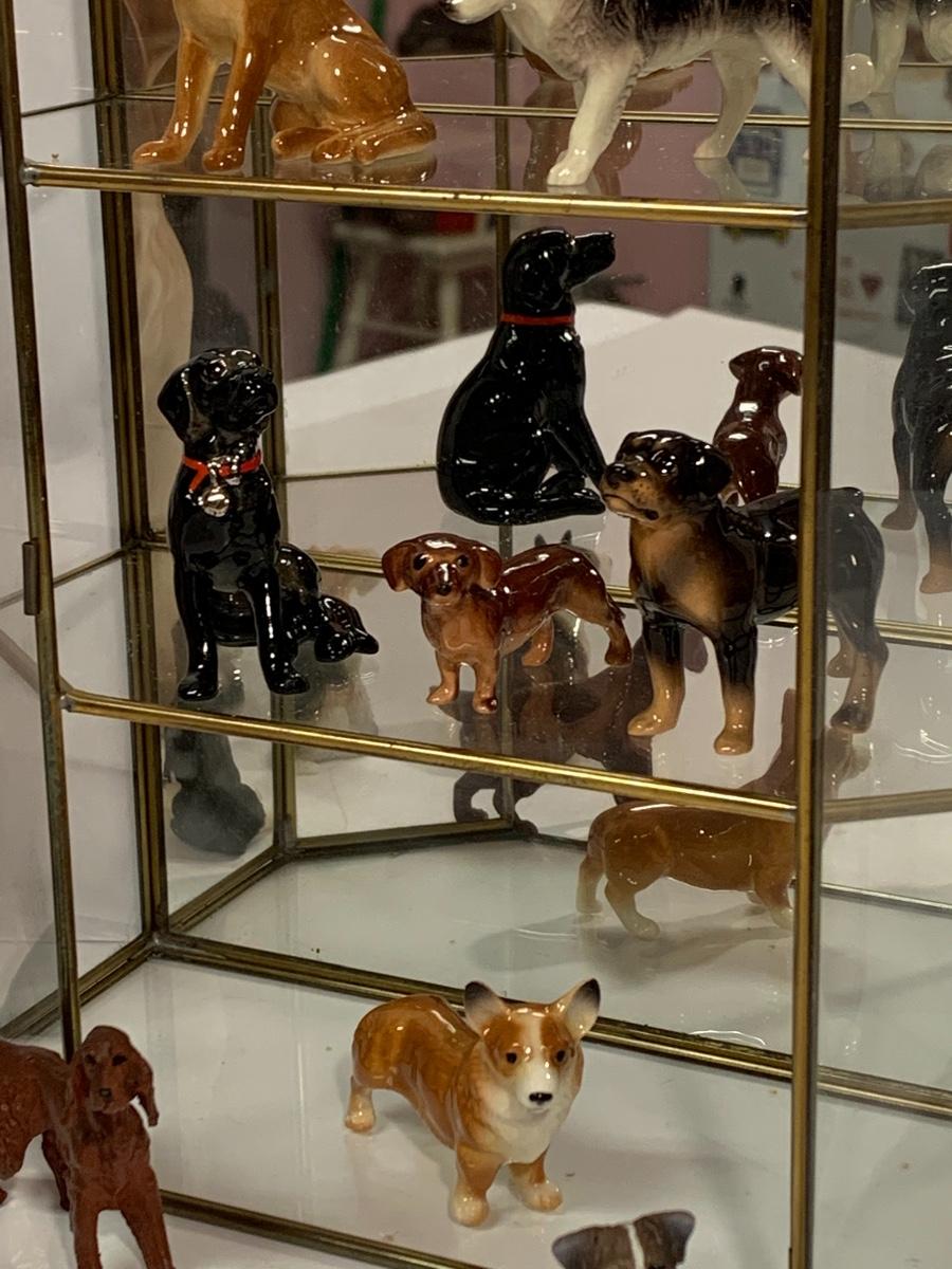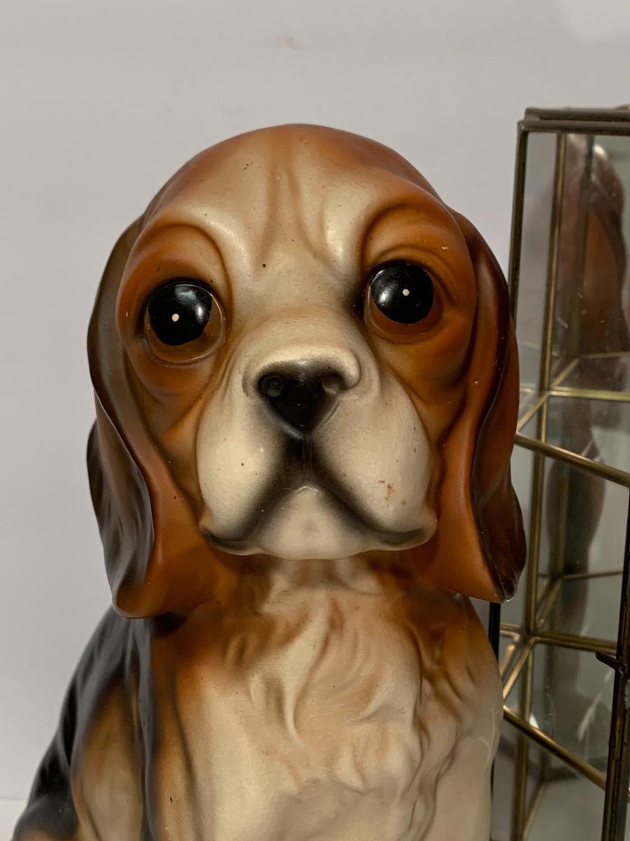 Lot 463: Mirrored Curio Cabinet, Figurines, & Vintage Ceramic Dog