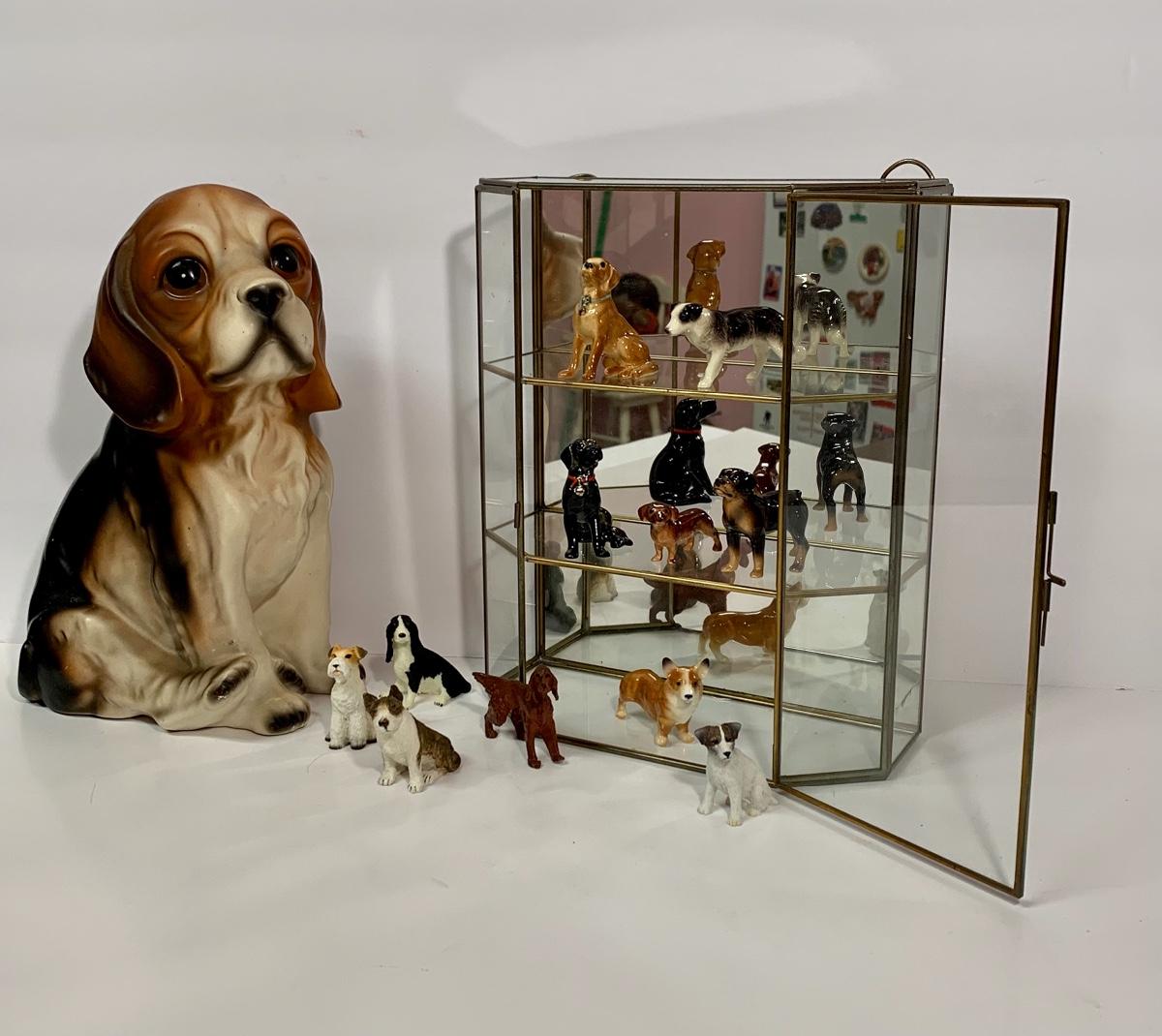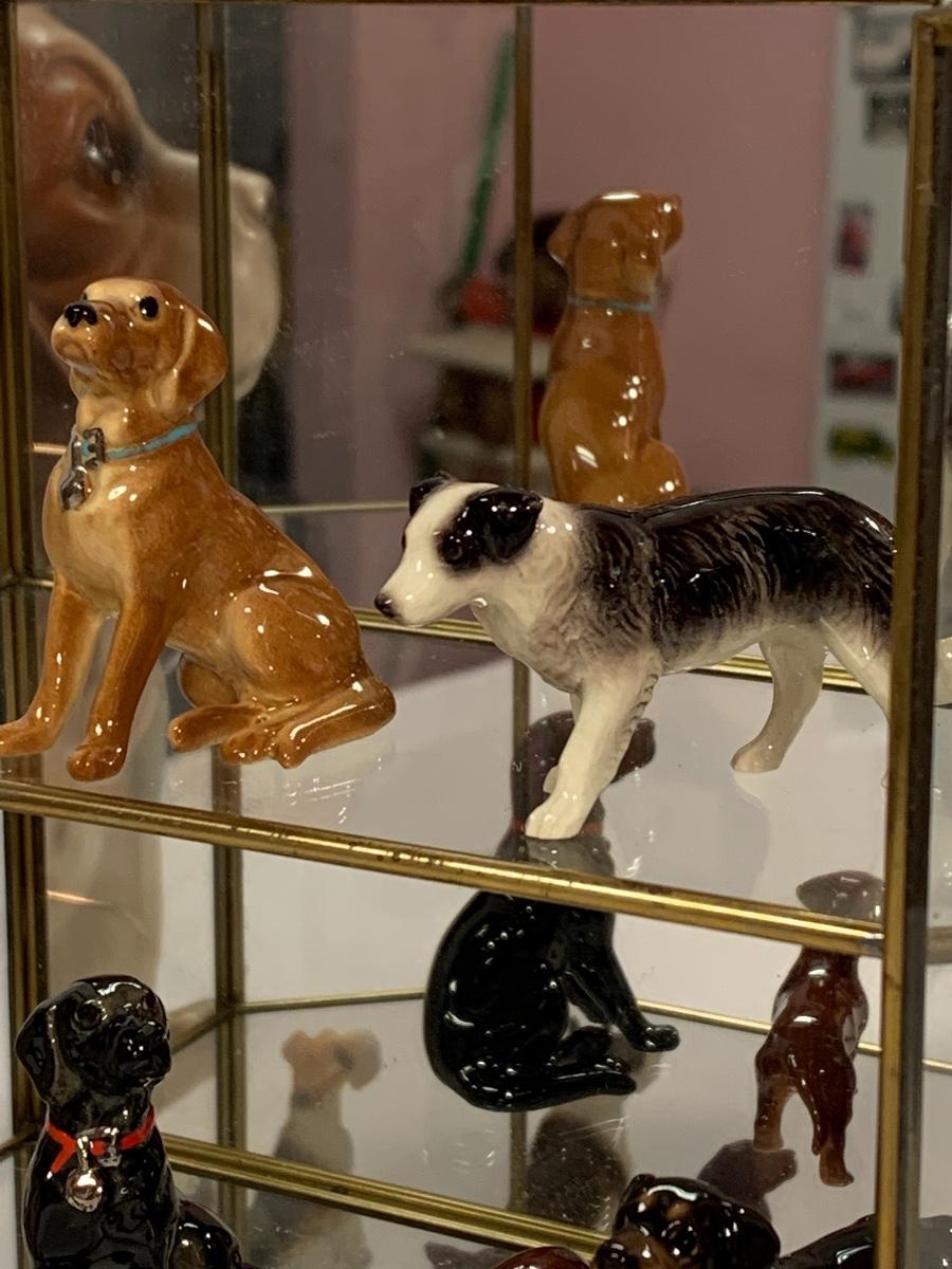 Vintage collection of dog figurines and mirrored/glass curio shelf that can hang or sit on dresser. Dogs might be porcelain, ceramic or resin. Please see all pictures as they are the best representation of the items. The pictures show condition, measurements if taken, and what is included in the lot. Due to the large amount that we photograph and the time frame, we are not always able to take measurements. All items unless noted, are pre-owned and have been used. If you purchased furniture, you must bring help. We do not allow one person to carry large furniture out on their own. Bring help, tools and a truck for the safety of our client’s homes, and your personal safety. Company policy. Thank you.