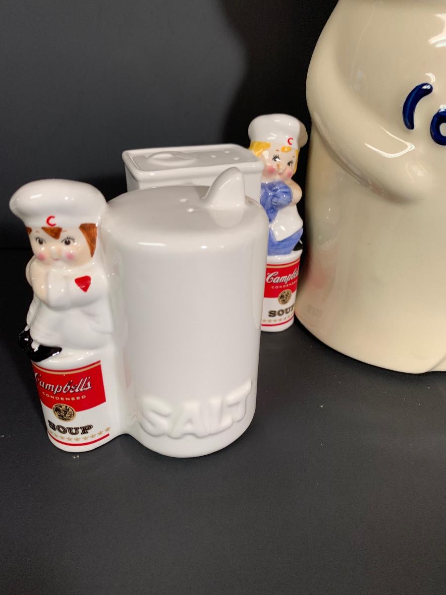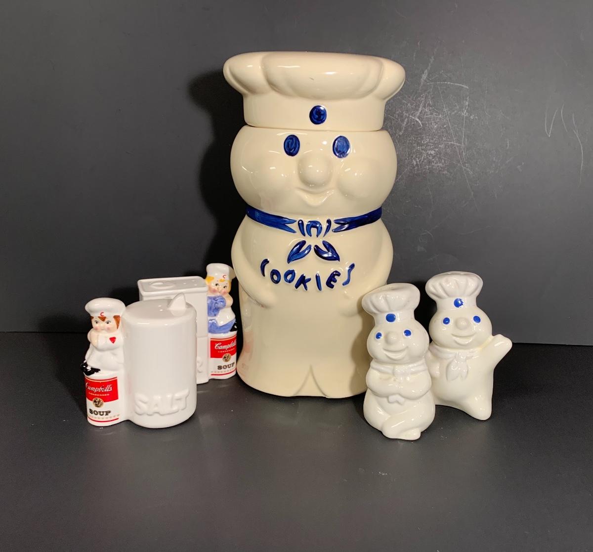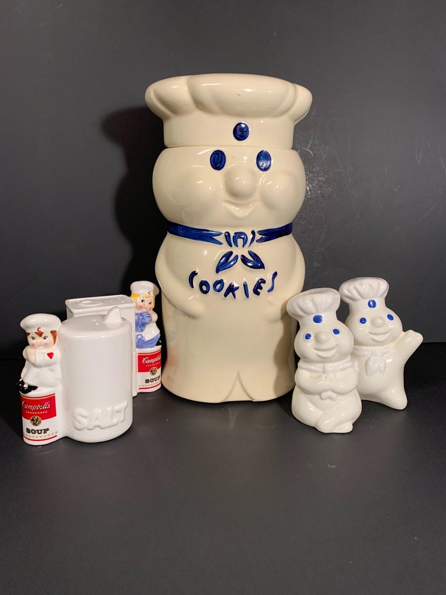 Pillsbury cookies jar, Doughboy salt & pepper shakers along with the Campbell's Kids salt & pepper shakers.