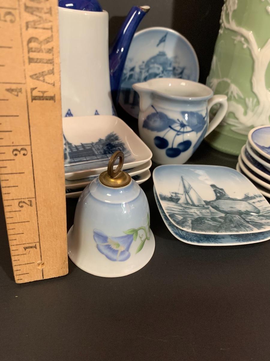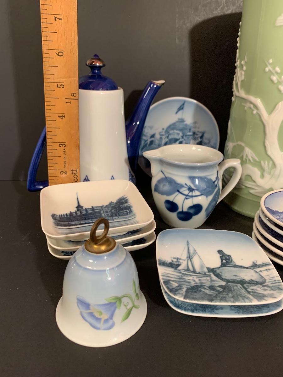 Nice lot of Royal Copenhagen including a bell, pitcher and small decorative trinket dishes. Also include in the lot is a rare and beautiful Lenox vase with a base green color and a raised forest, flowers, and birds landscape scene all around the outside. It measures 8" tall x 3 3/4" in diameter. It has the early green back stamp on the bottom. This type of Lenox vases is very scarce. Please see all pictures as they are the best representation of the items. The pictures show condition, measurements if taken, and what is included in the lot. Due to the large amount that we photograph and the time frame, we are not always able to take measurements. All items unless noted, are pre-owned and have been used. If you purchased furniture, you must bring help. We do not allow one person to carry large furniture out on their own. Bring help, tools and a truck for the safety of our client’s homes, and your personal safety. Company policy. Thank you.