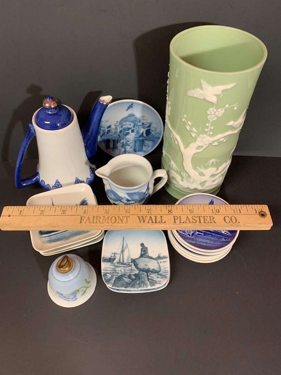 Lot 467: Lenox Green White Relief Vase ,Royal Copenhagen, & More