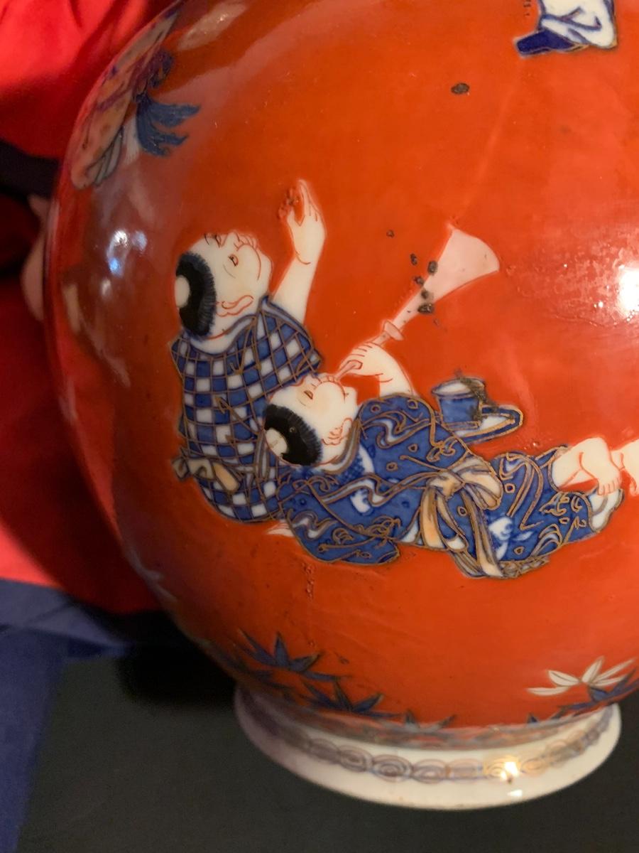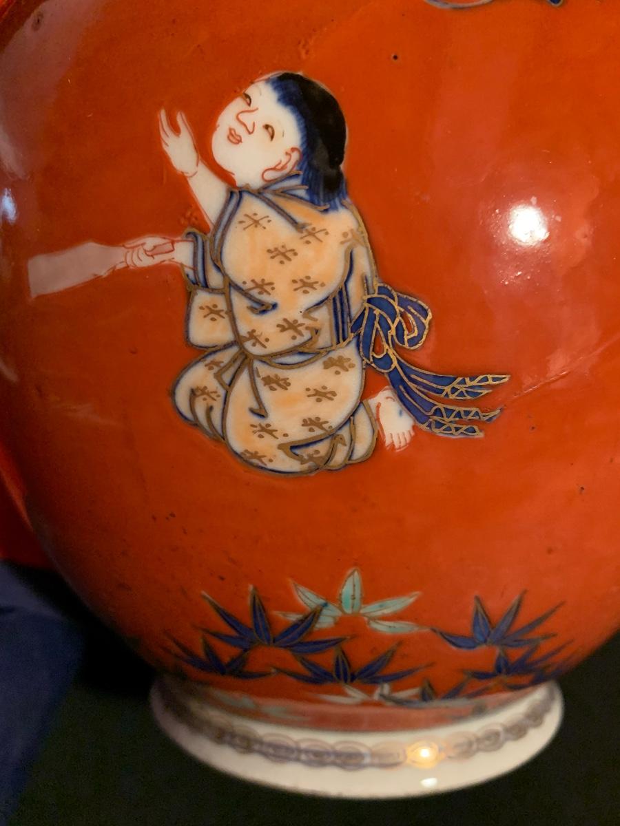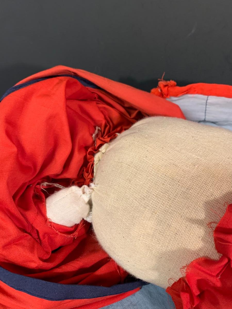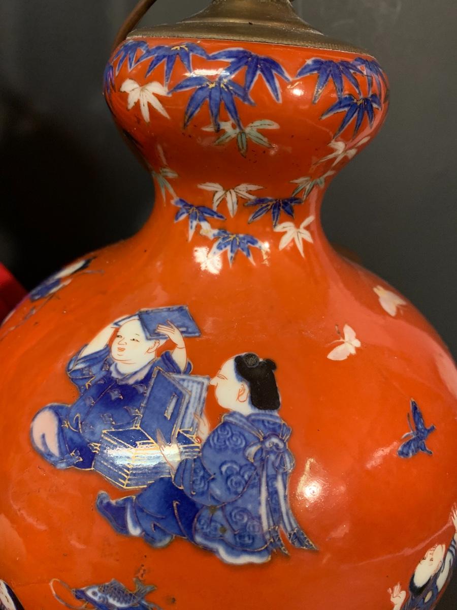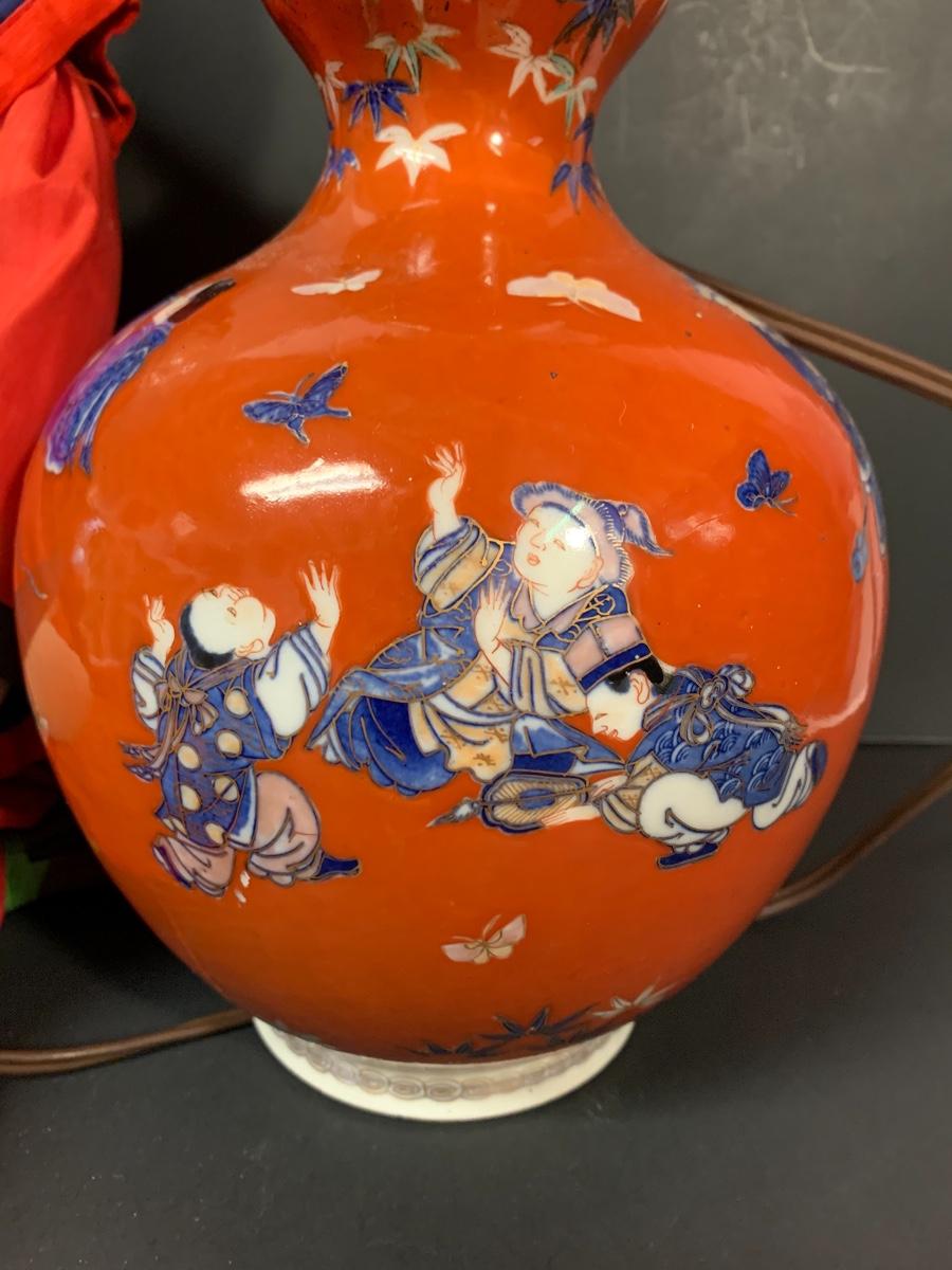 Lot 497: Antique Porcelain Asian Inspired Lamp & Blue/White Face Ceremonial Cloth Body Doll