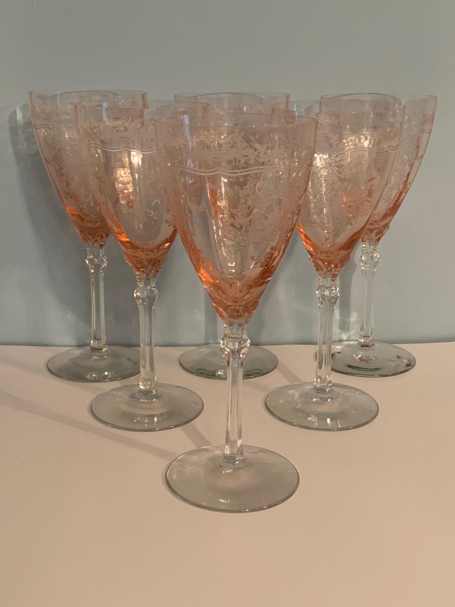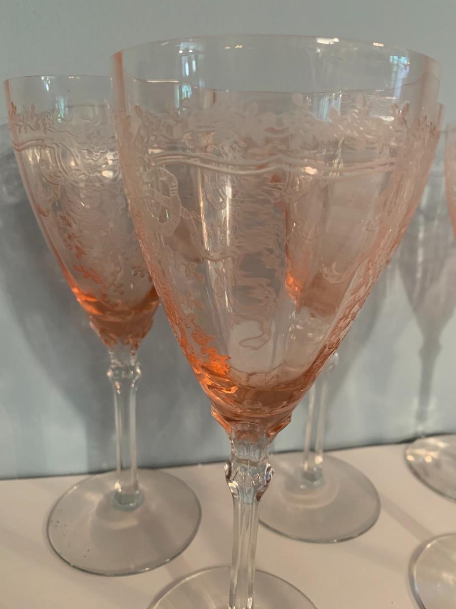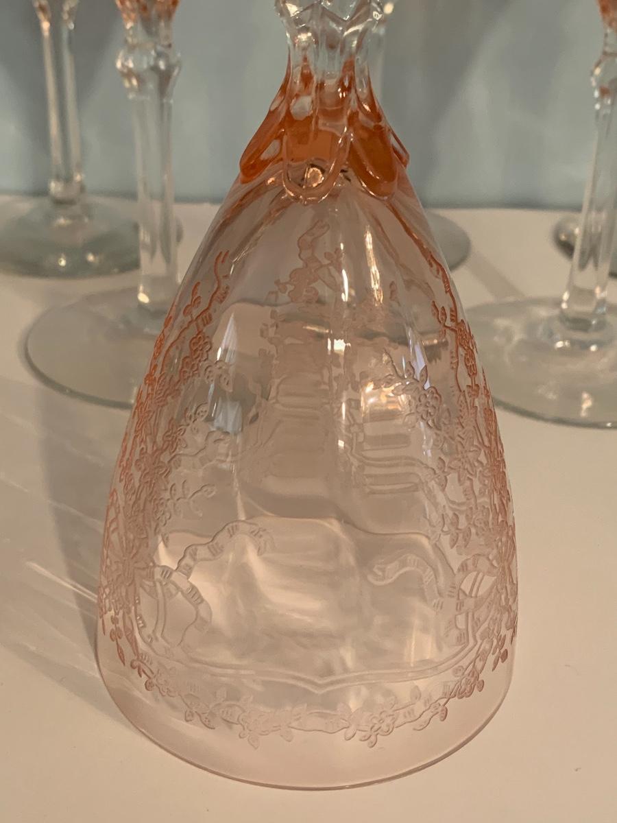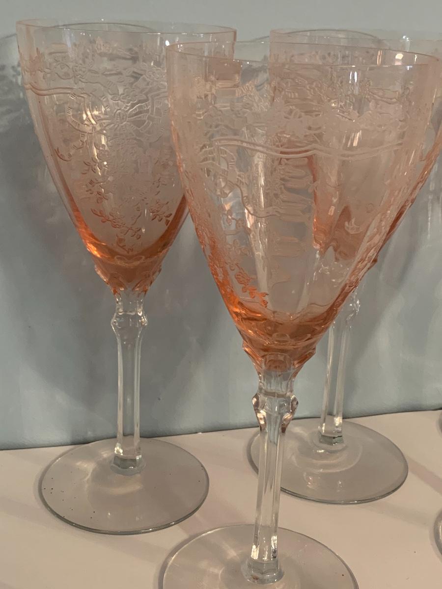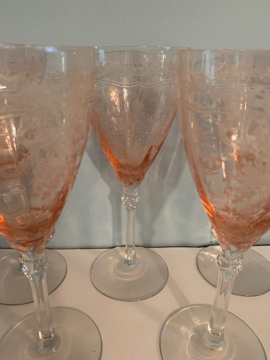 Lot 499: Etched Pink Depression Glasses