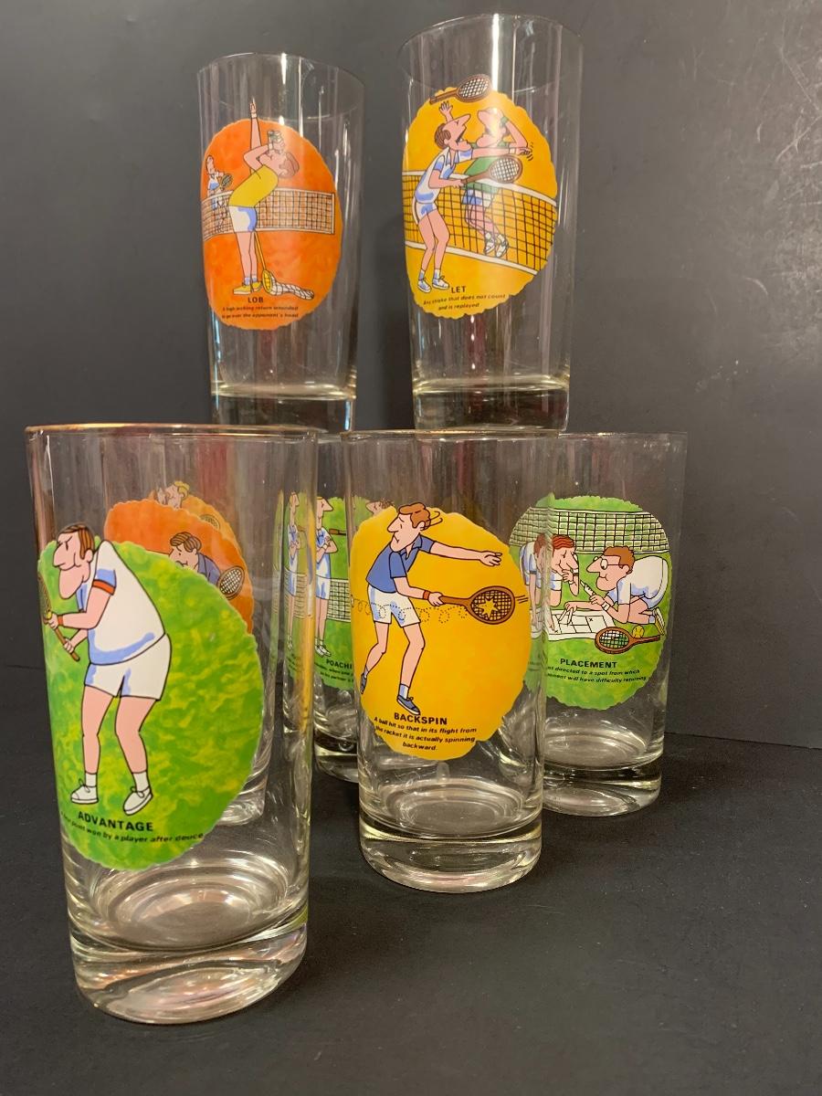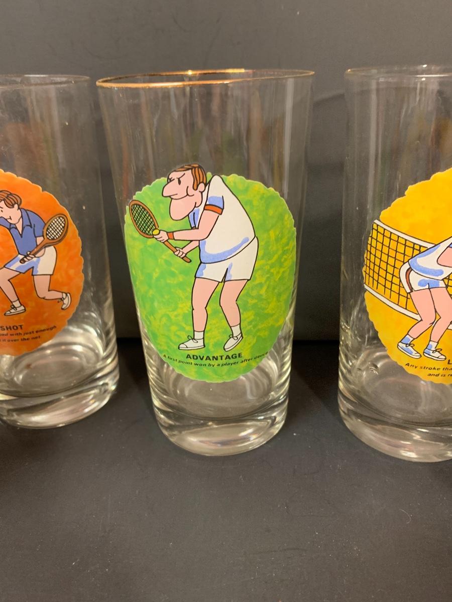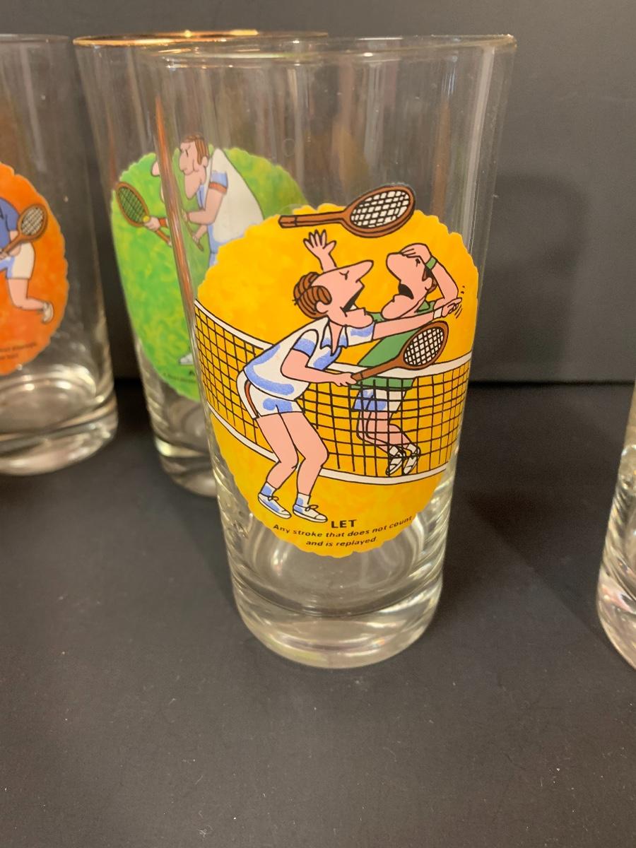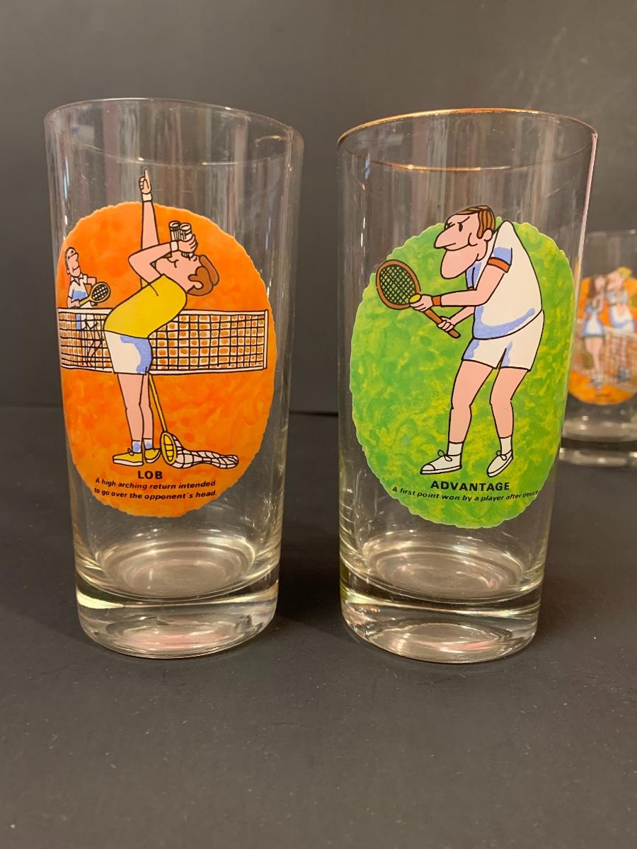 Lot 62: Vintage 1970's Novelty Tennis Drinking Glasses