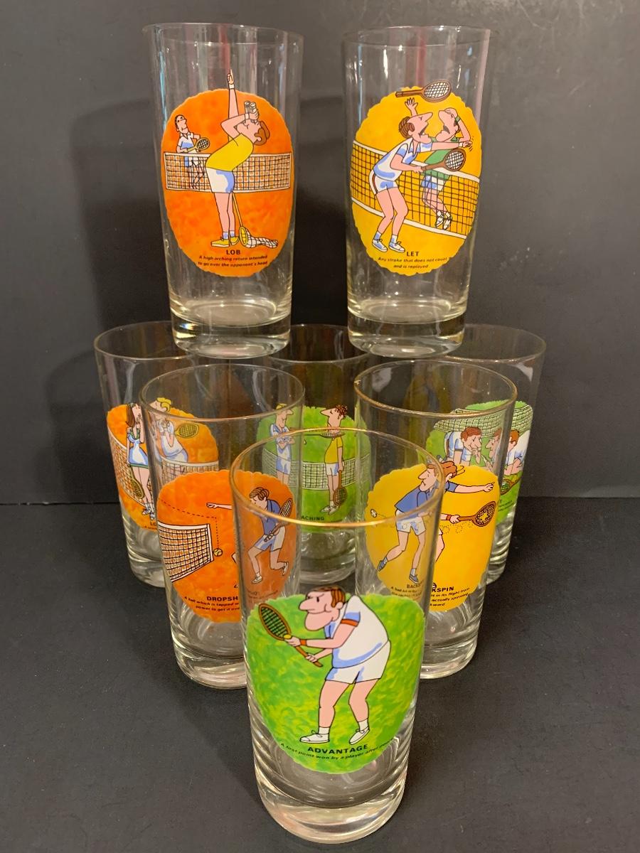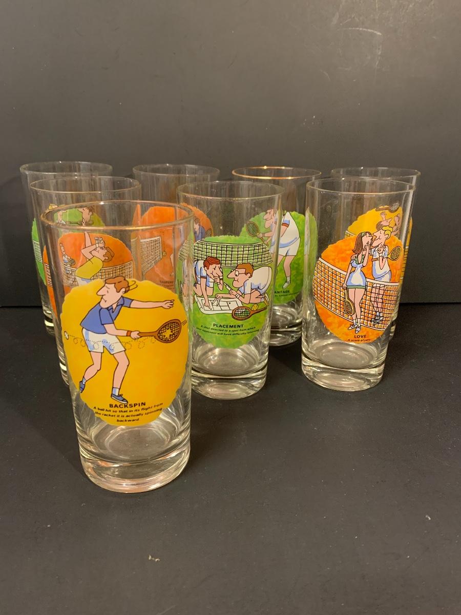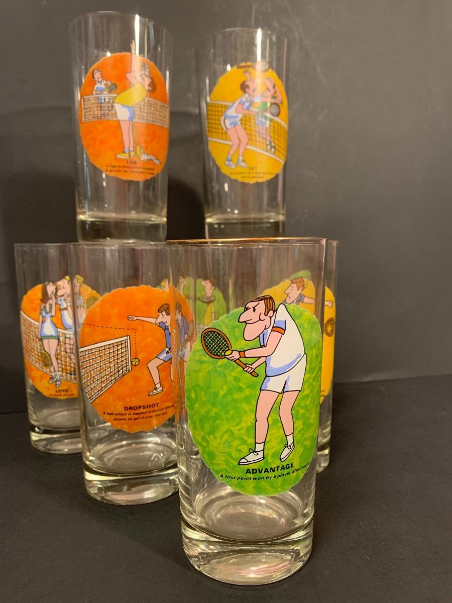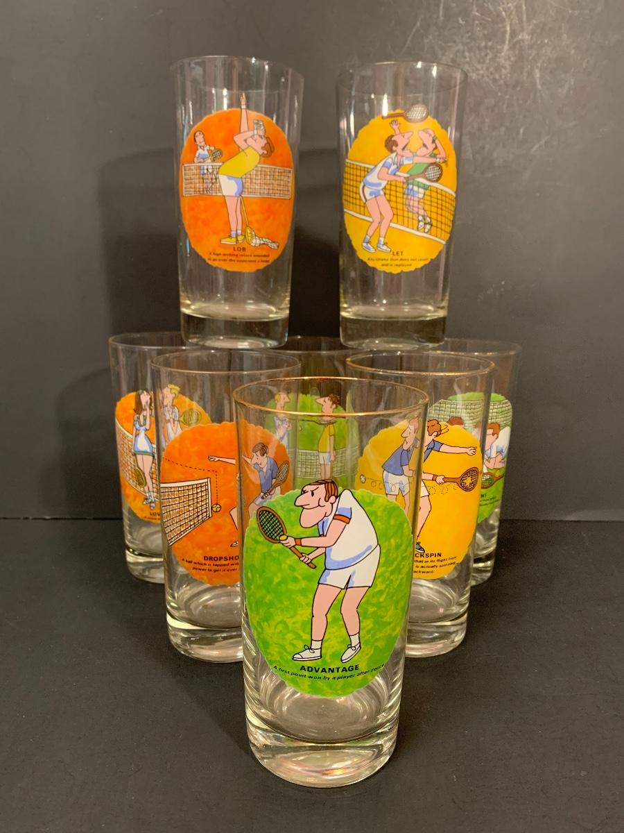 Lot 62: Vintage 1970's Novelty Tennis Drinking Glasses