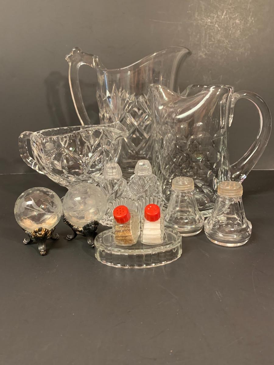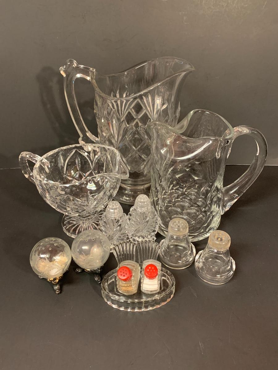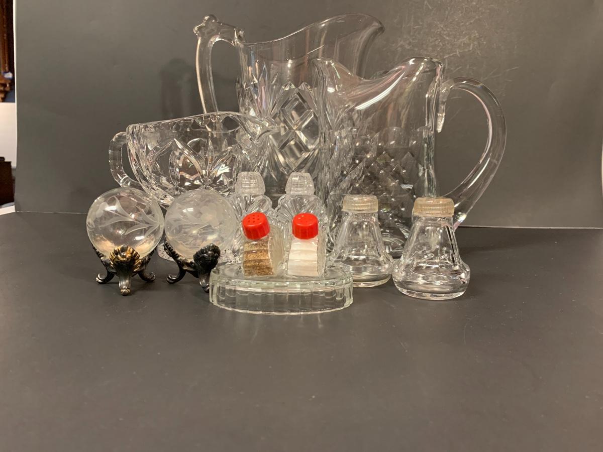 Lot 67: Brierley Crystal Pitcher, Salt & Pepper Shakers & More