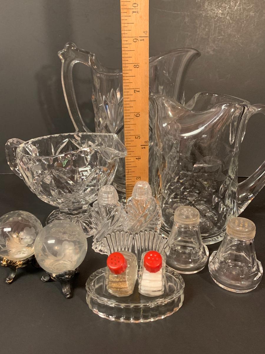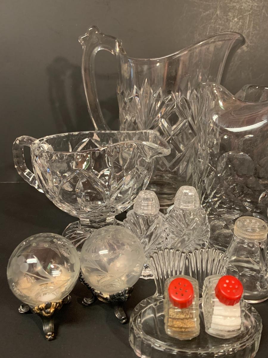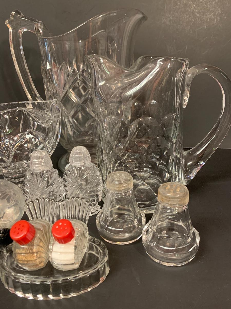 Lot 67: Brierley Crystal Pitcher, Salt & Pepper Shakers & More