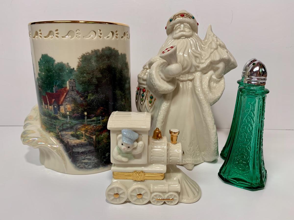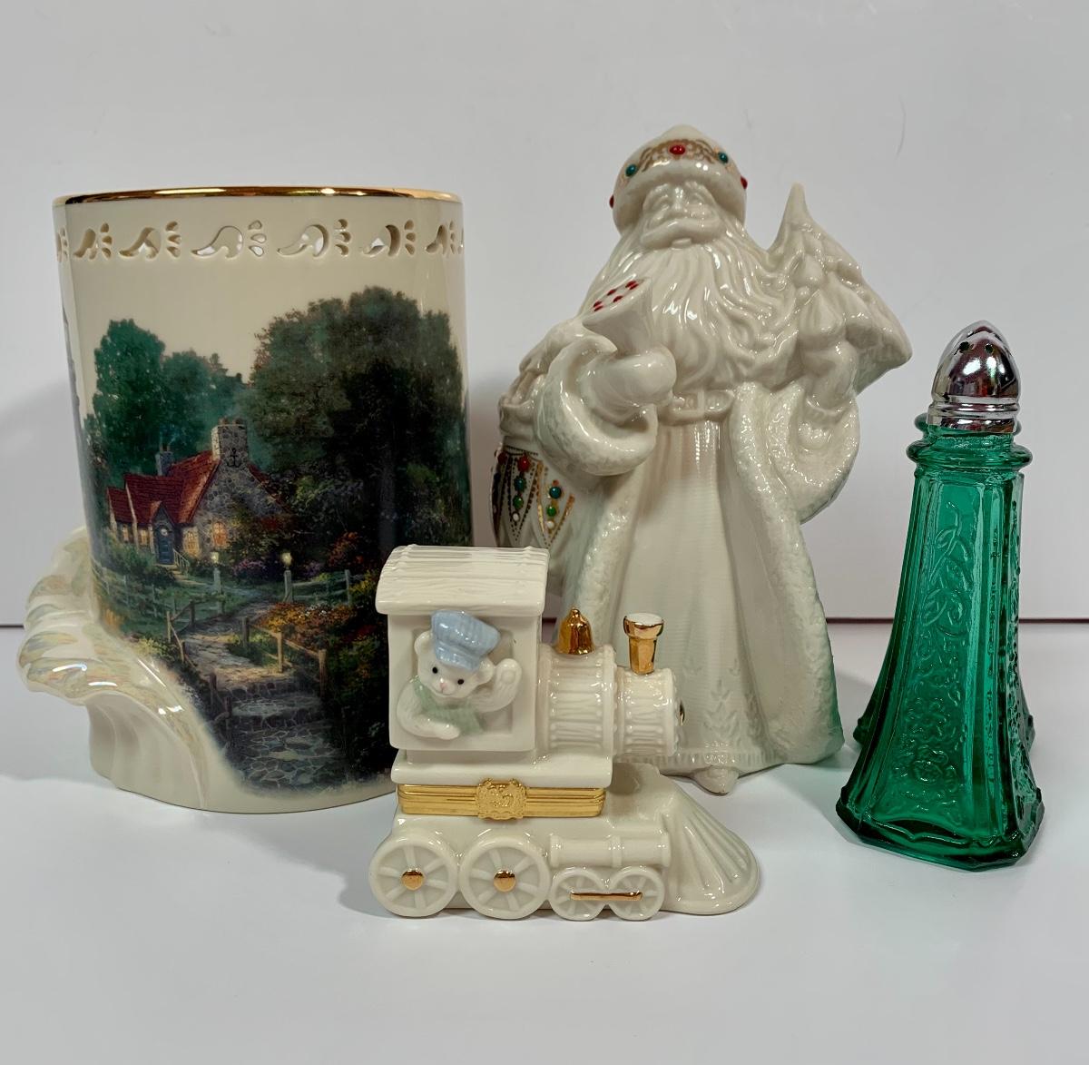 the Light of Peace Votive, Thomas Kinkaid by Lenox votive candle holder, Jeweled Lenox Santa, Train trinket box. with green glass salt n pepper shakers. Please see all pictures as they are the best representation of the items. The pictures show condition, measurements if taken, and what is included in the lot. Due to the large amount that we photograph and the time frame, we are not always able to take measurements. All items unless noted, are pre-owned and have been used. If you purchased furniture, you must bring help. We do not allow one person to carry large furniture out on their own. Bring help, tools and a truck for the safety of our client’s homes, and your personal safety. Company policy. Thank you.