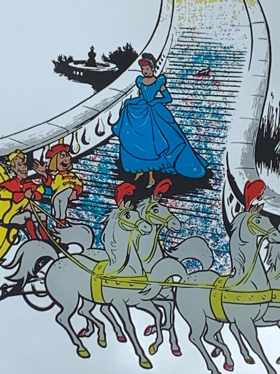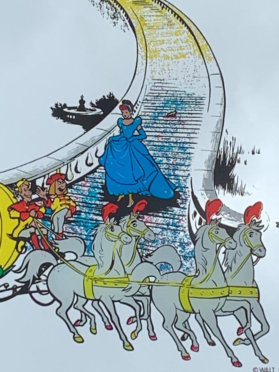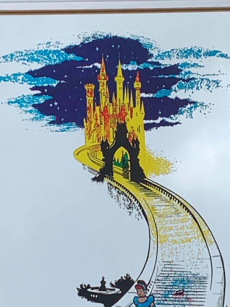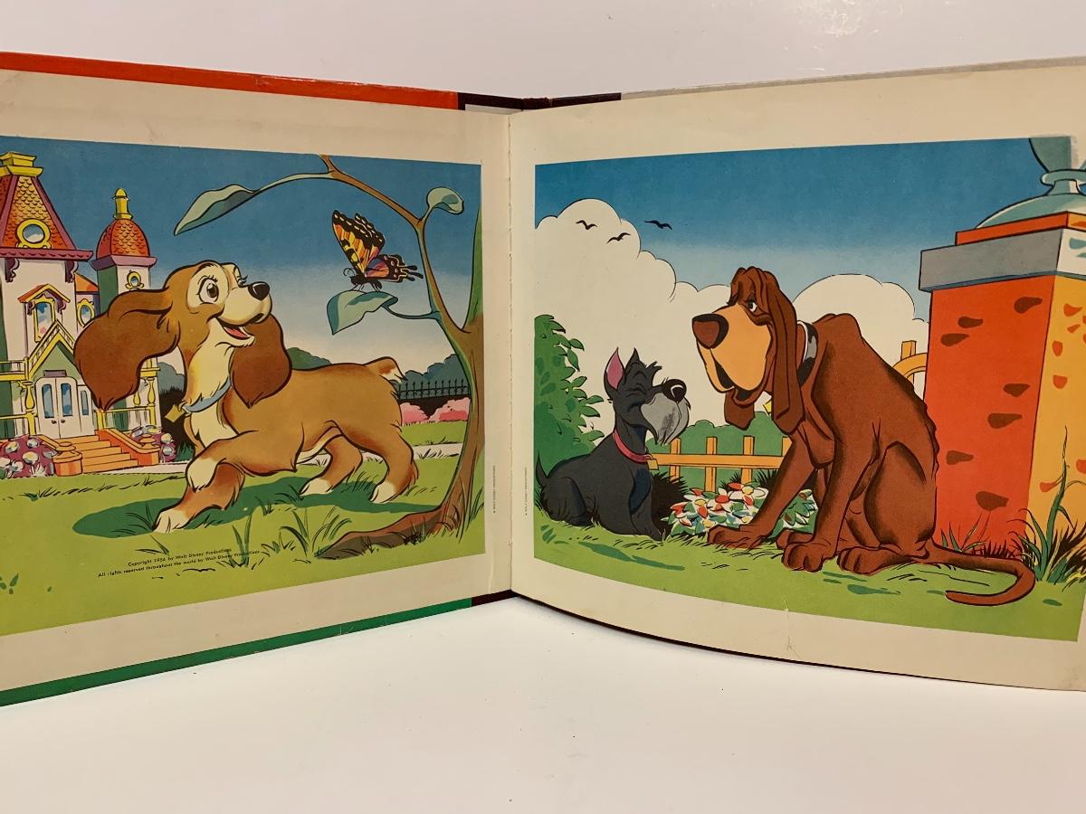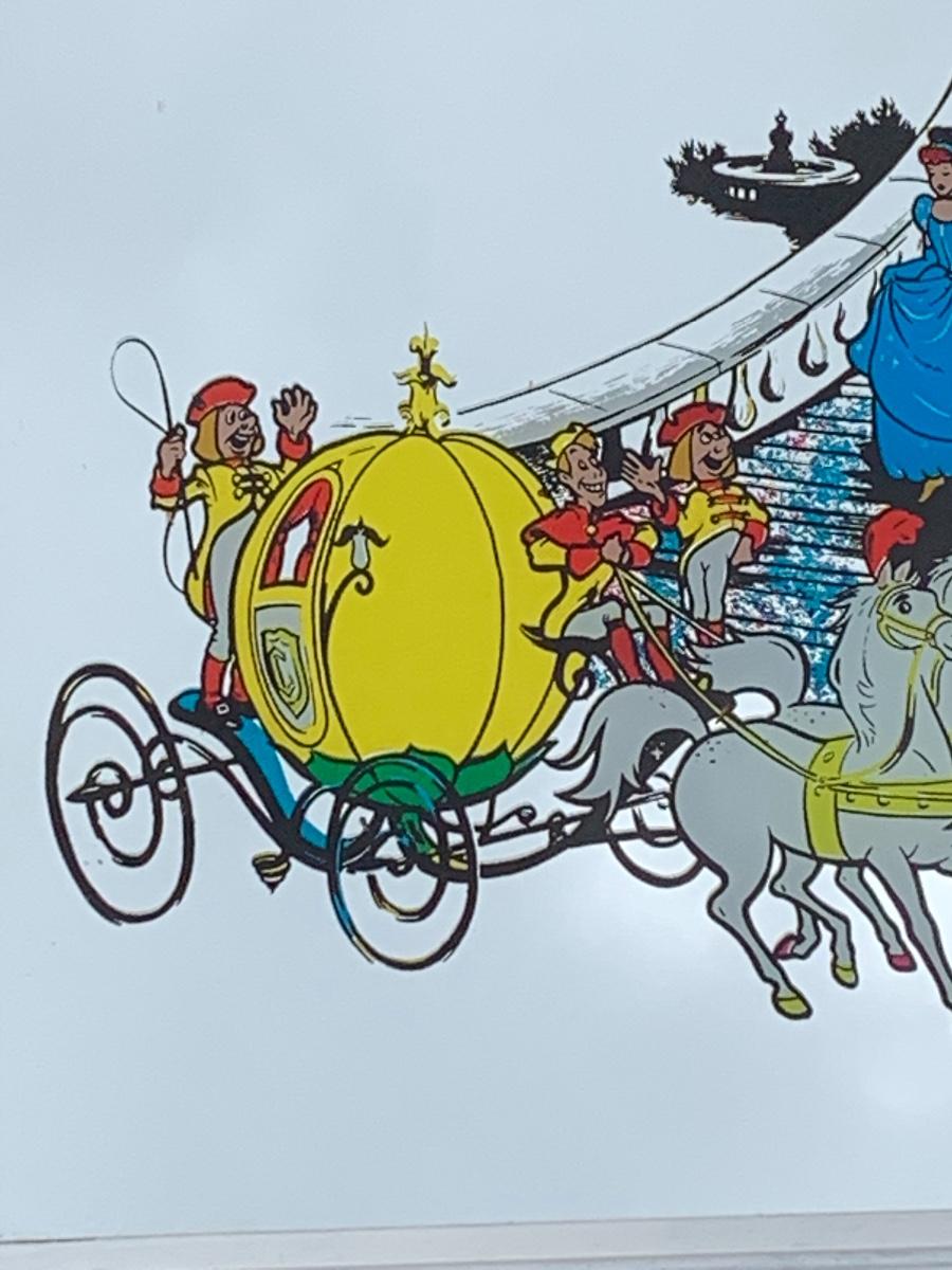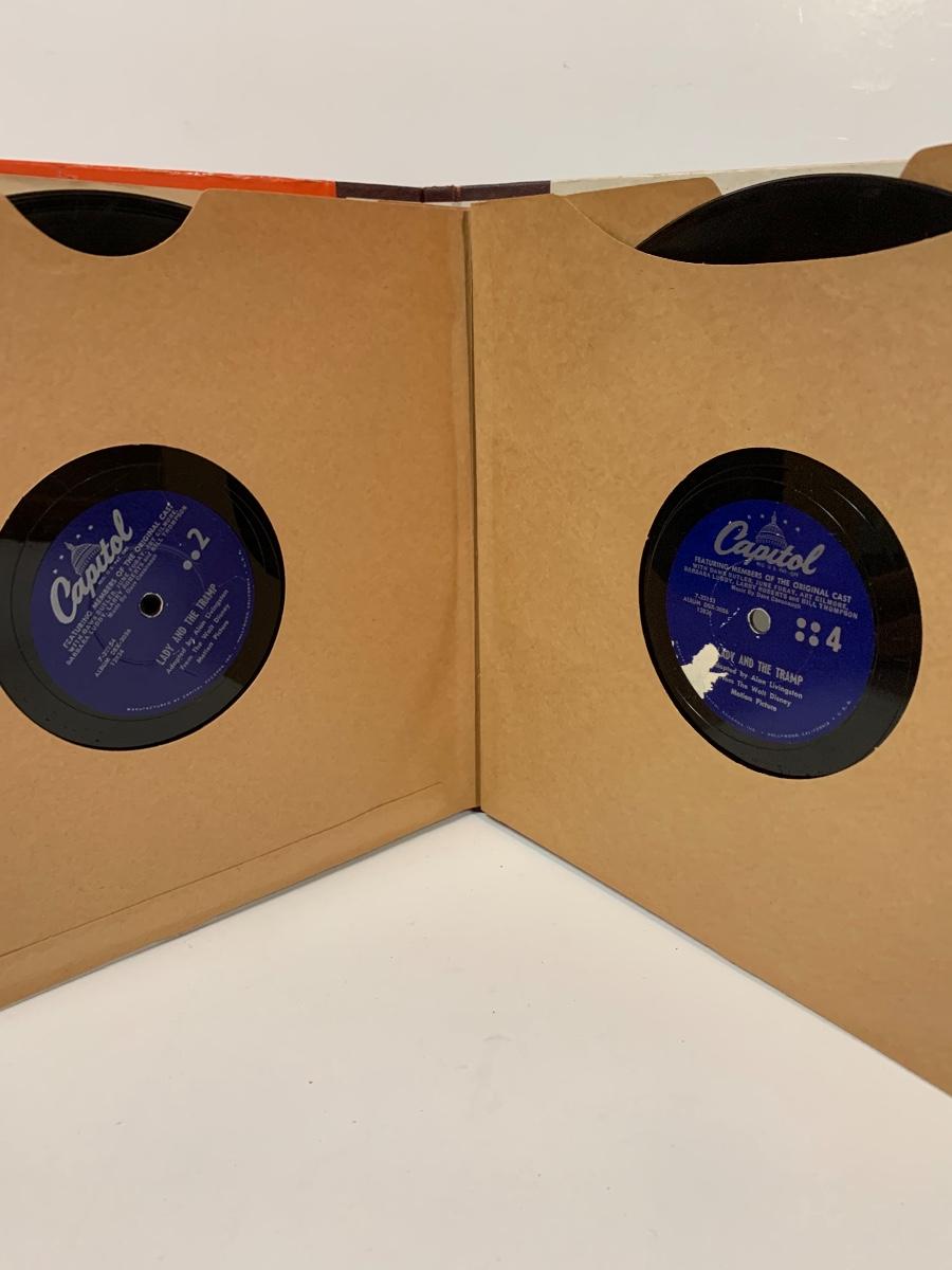 This Disney lot includes 2 vintage LP's: Alice in Wonderland and The Lady & The Tramp. The Lady & The Tramp is a read along book & record. 100th anniversary Disney glasses, Framed Cinderella mirror (16 x 20).