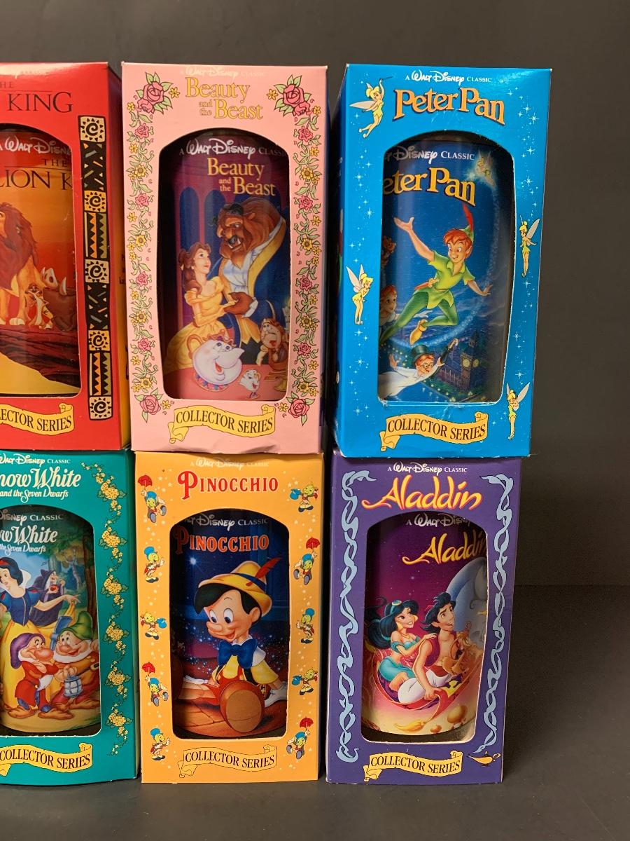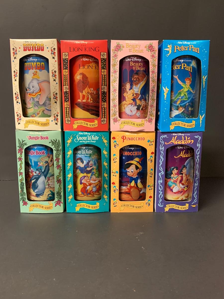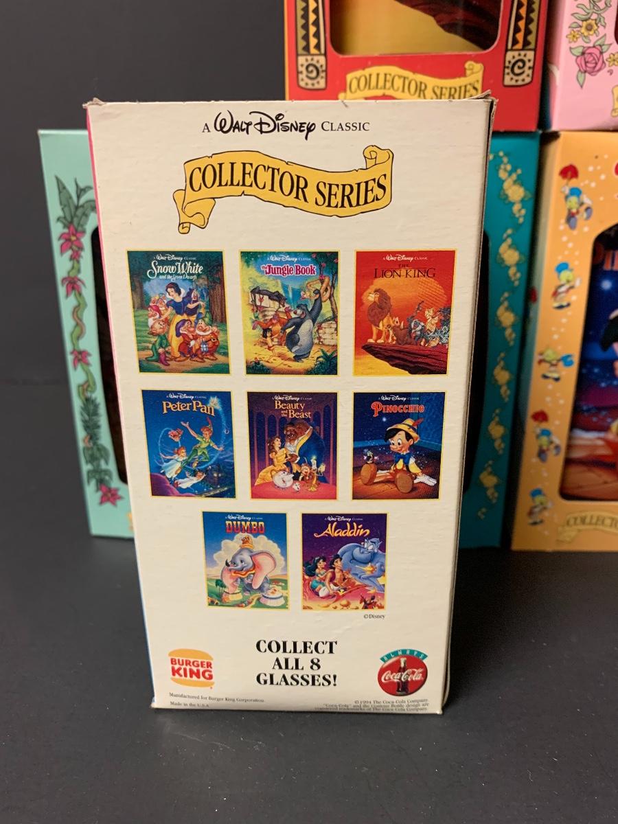 Plastic collector cups/glasses from Burger King sponsored by Coke a Cola. Complete set of 4 Pocahontas & Complete set of 8 Disney Series.